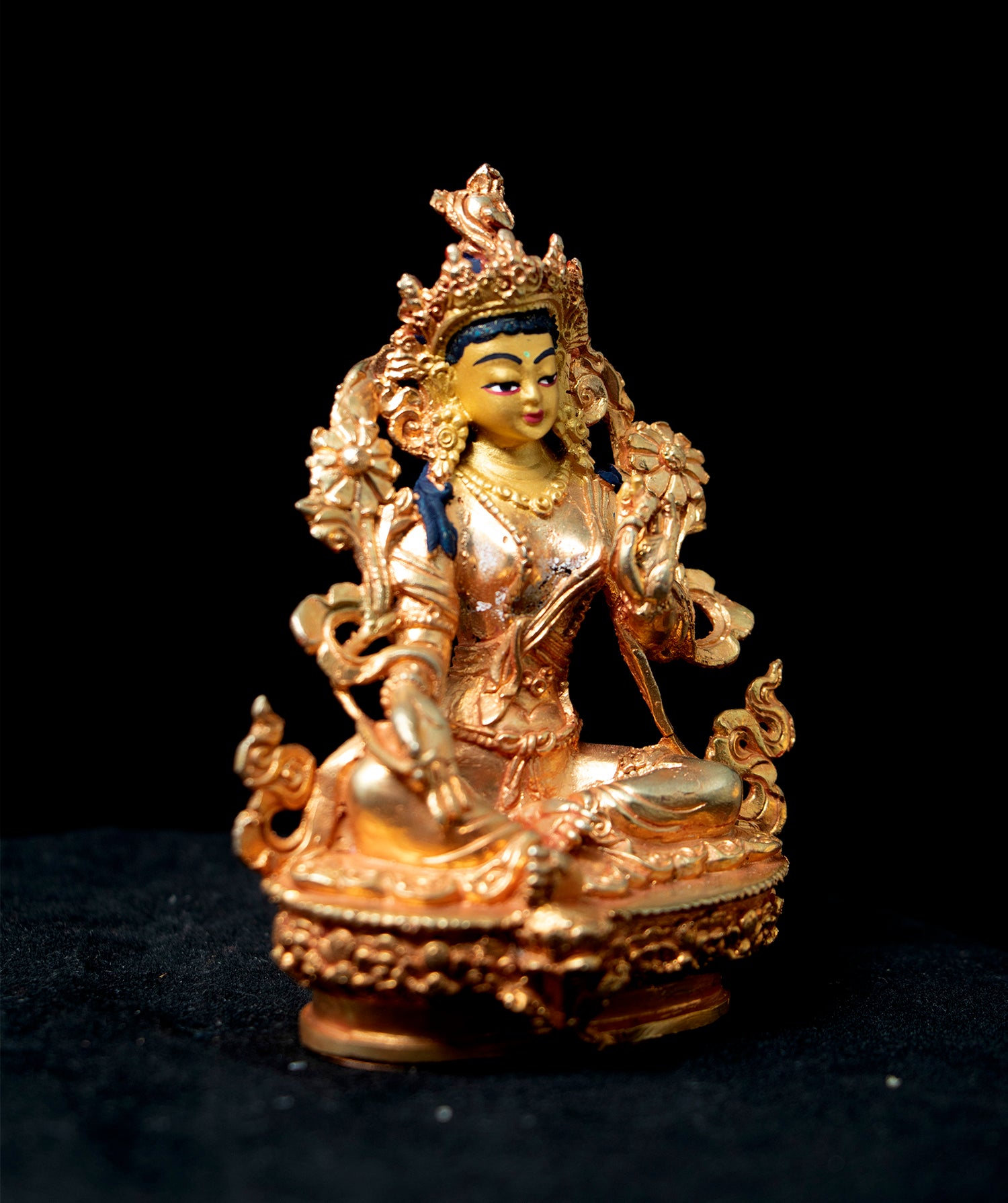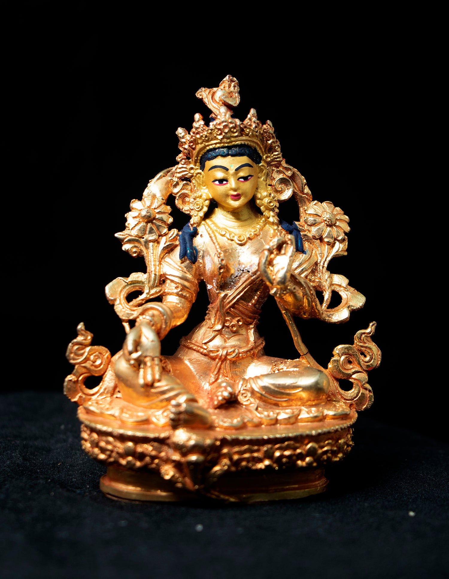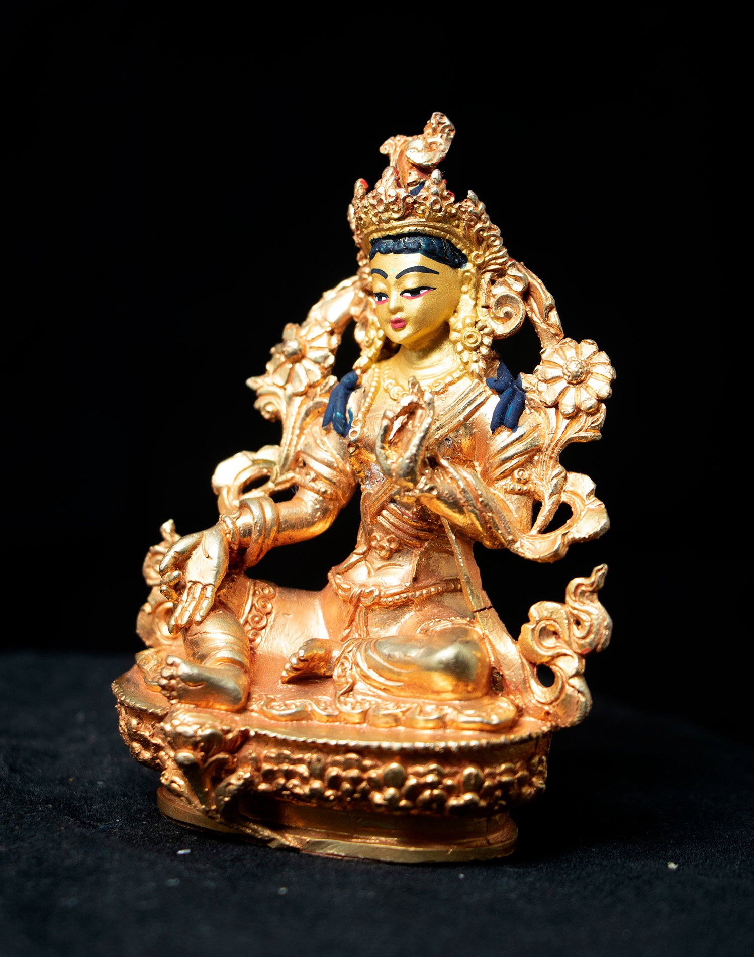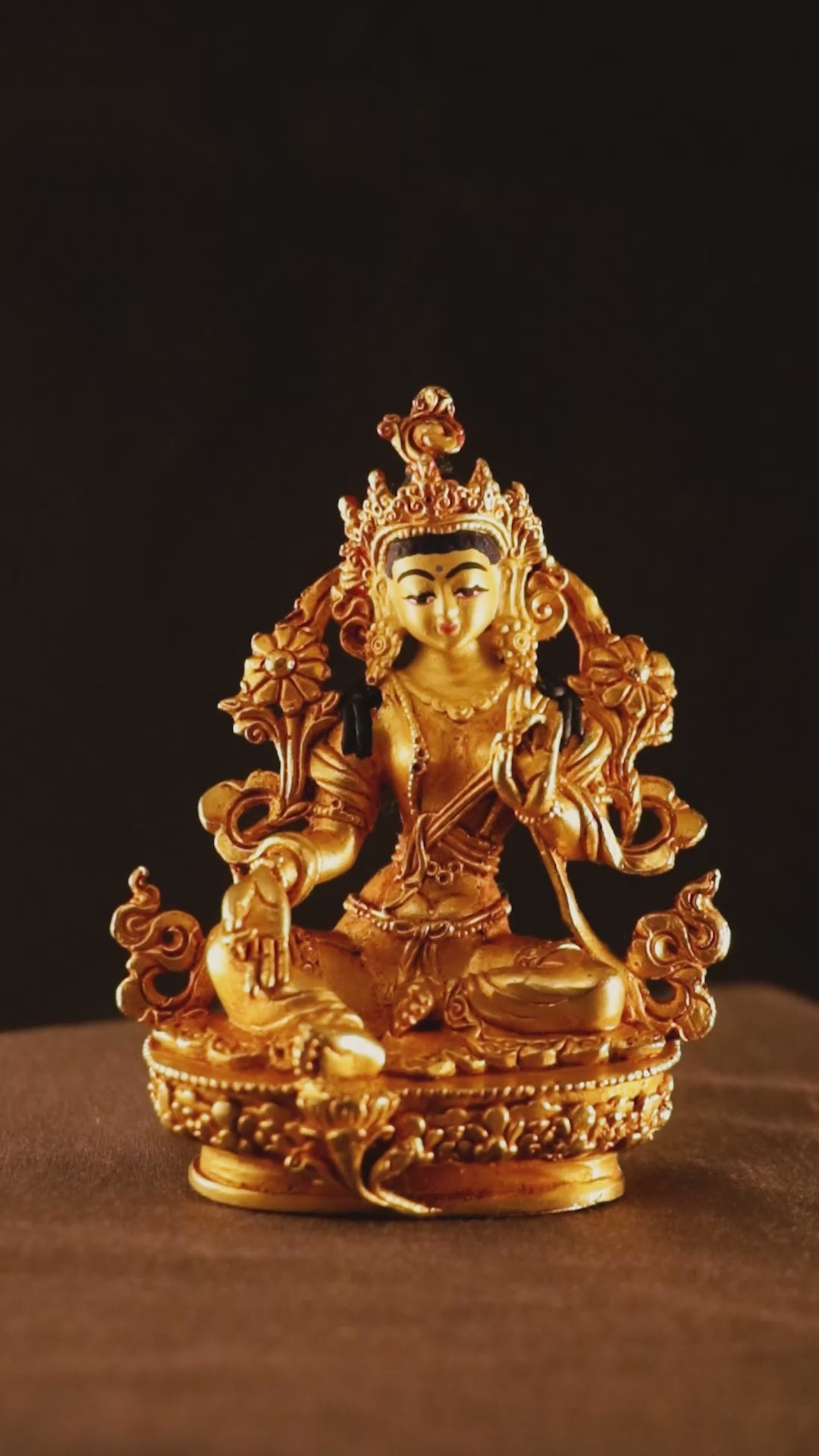 This Beautiful Handmade Hand Craved Tibetan Buddhism Hand Painting Gold Face Goddess Green Tara Copper Gold Plated Statue made by Artists of Nepal.