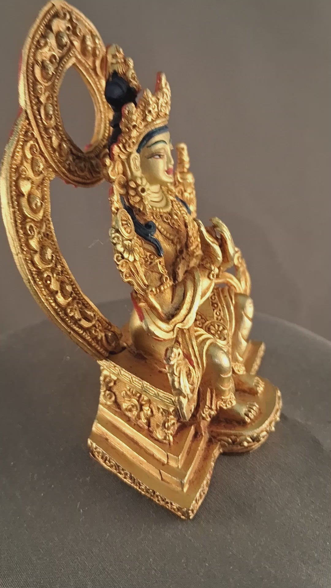 This Beautiful Handmade Buddhism God Maitreya Buddha Gold Face Hand Painting with Whole Body Gola Plated Copper Statue made by Artists of Nepal.