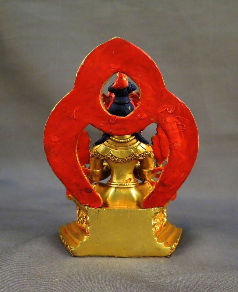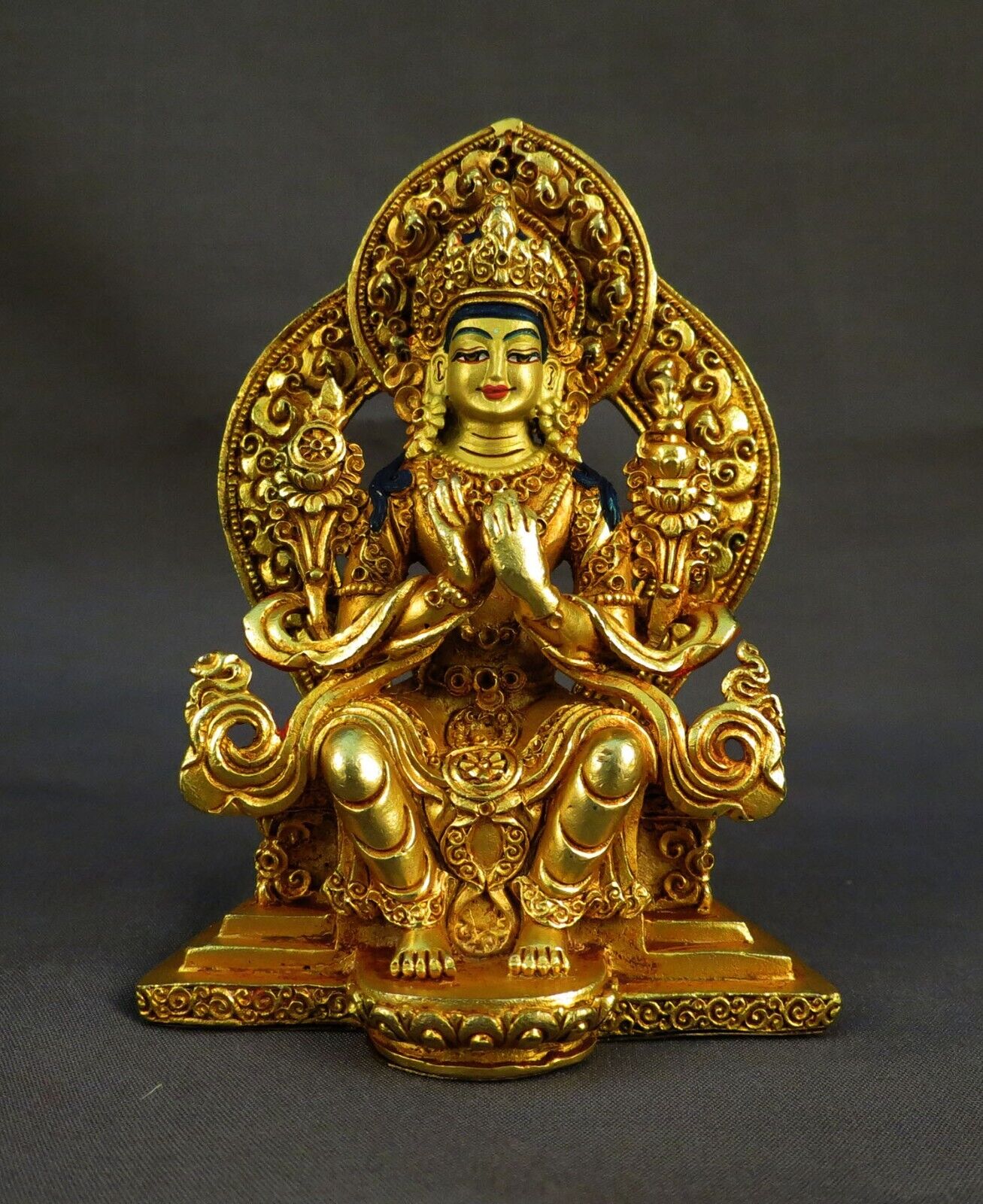 Gold Face Hand Painting Lord Maitreya Buddha Gold Plated Copper Statue Figure Nepal