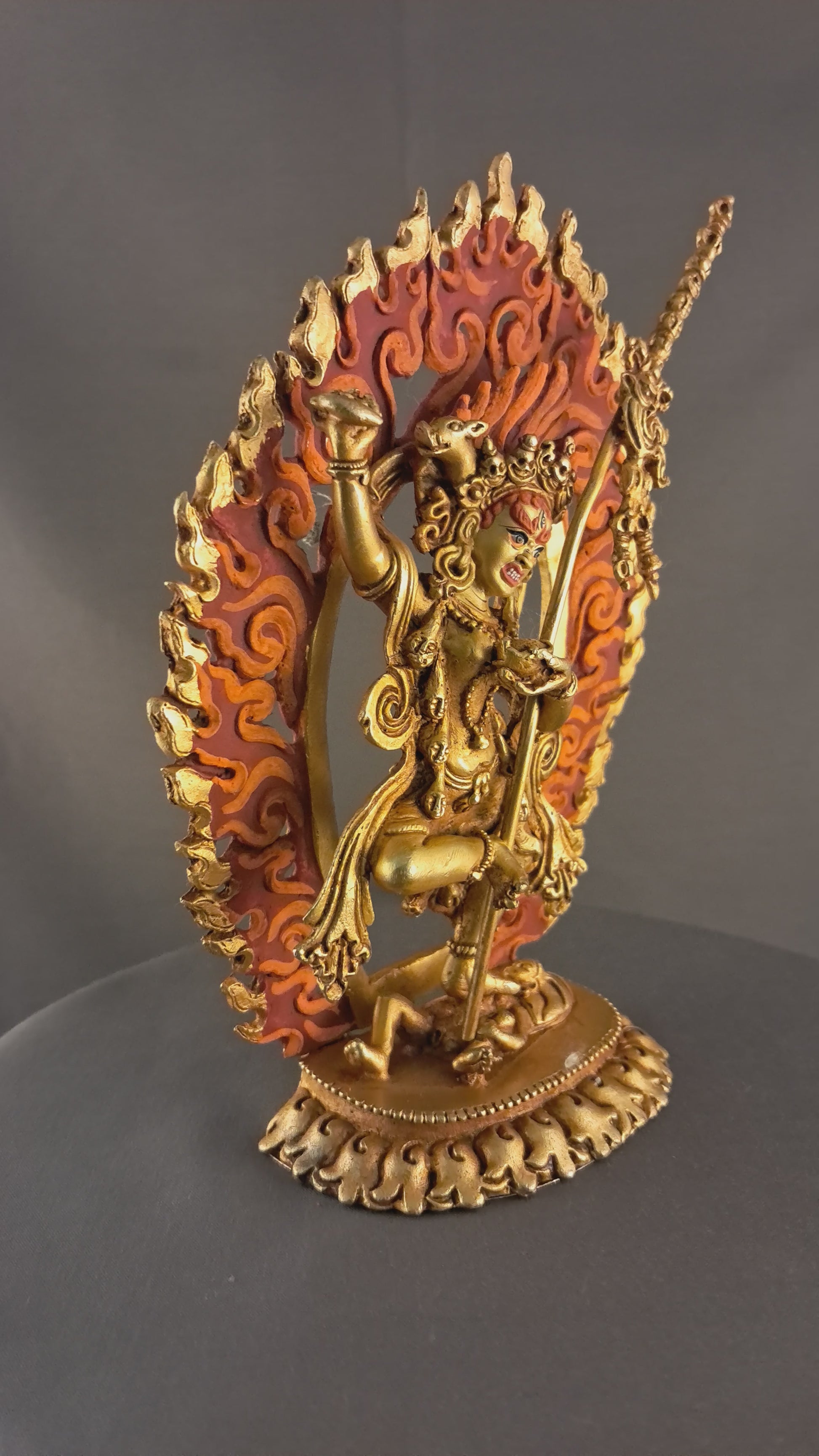 This Beautiful Handmade Hand craved Hand Painting Gold Face Tibetan Buddhism Goddess Vajra Varahi Dakini Full Body Gold Plated Copper Statue made by Artists of Nepal.