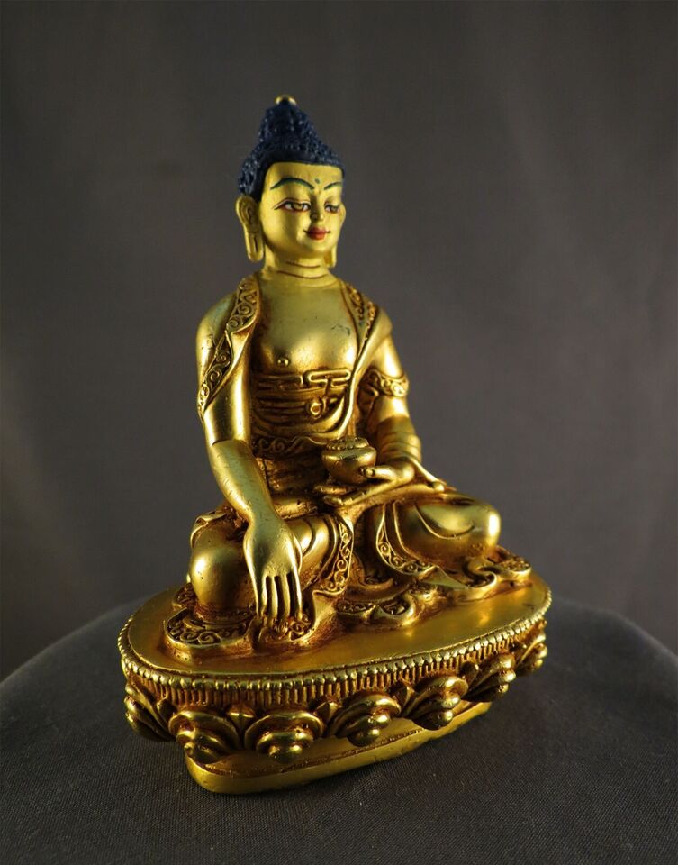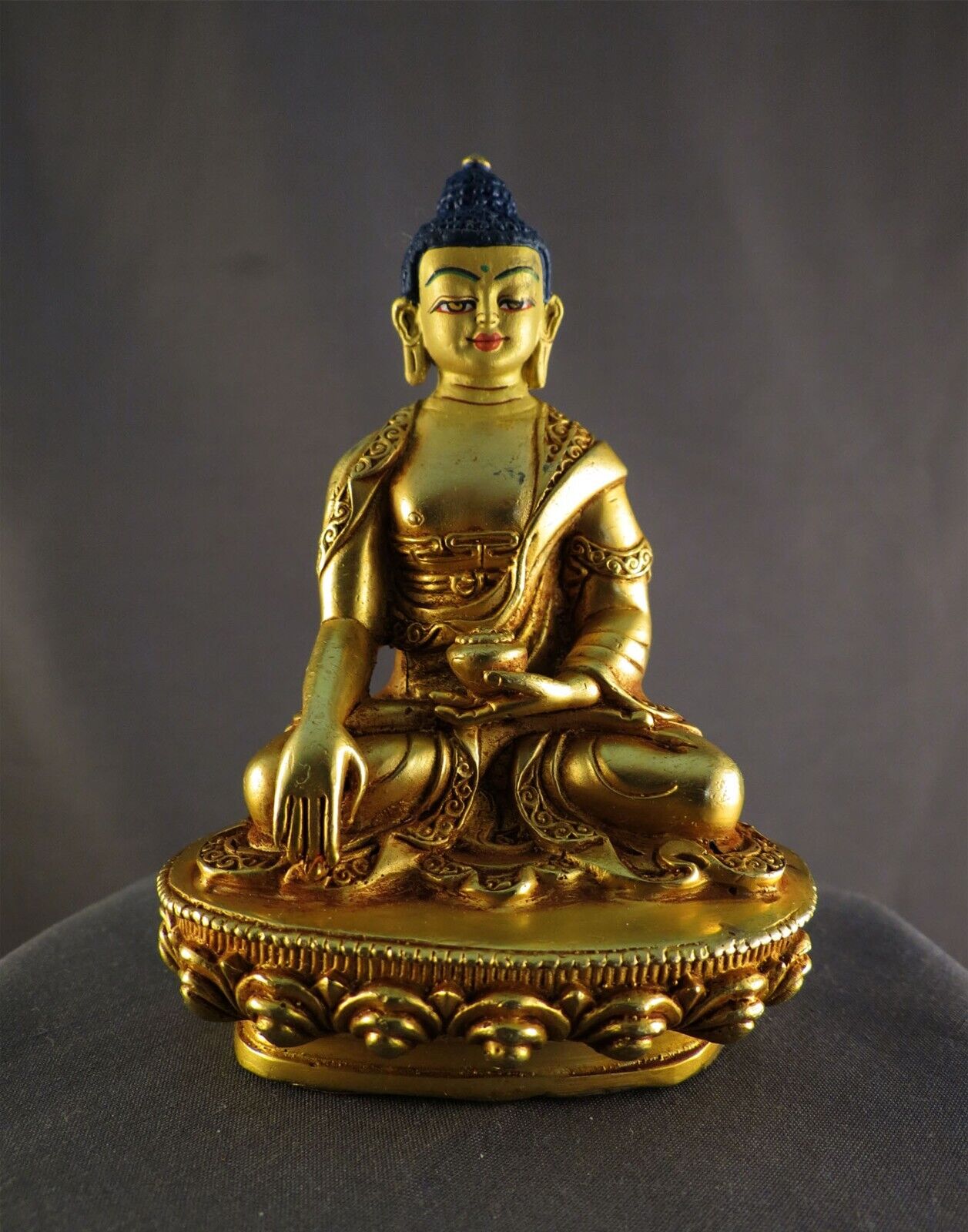 Hand Paint Gold Face Lord Shakyamuni Buddha Statue Gold Plated Statue Figure Nepal