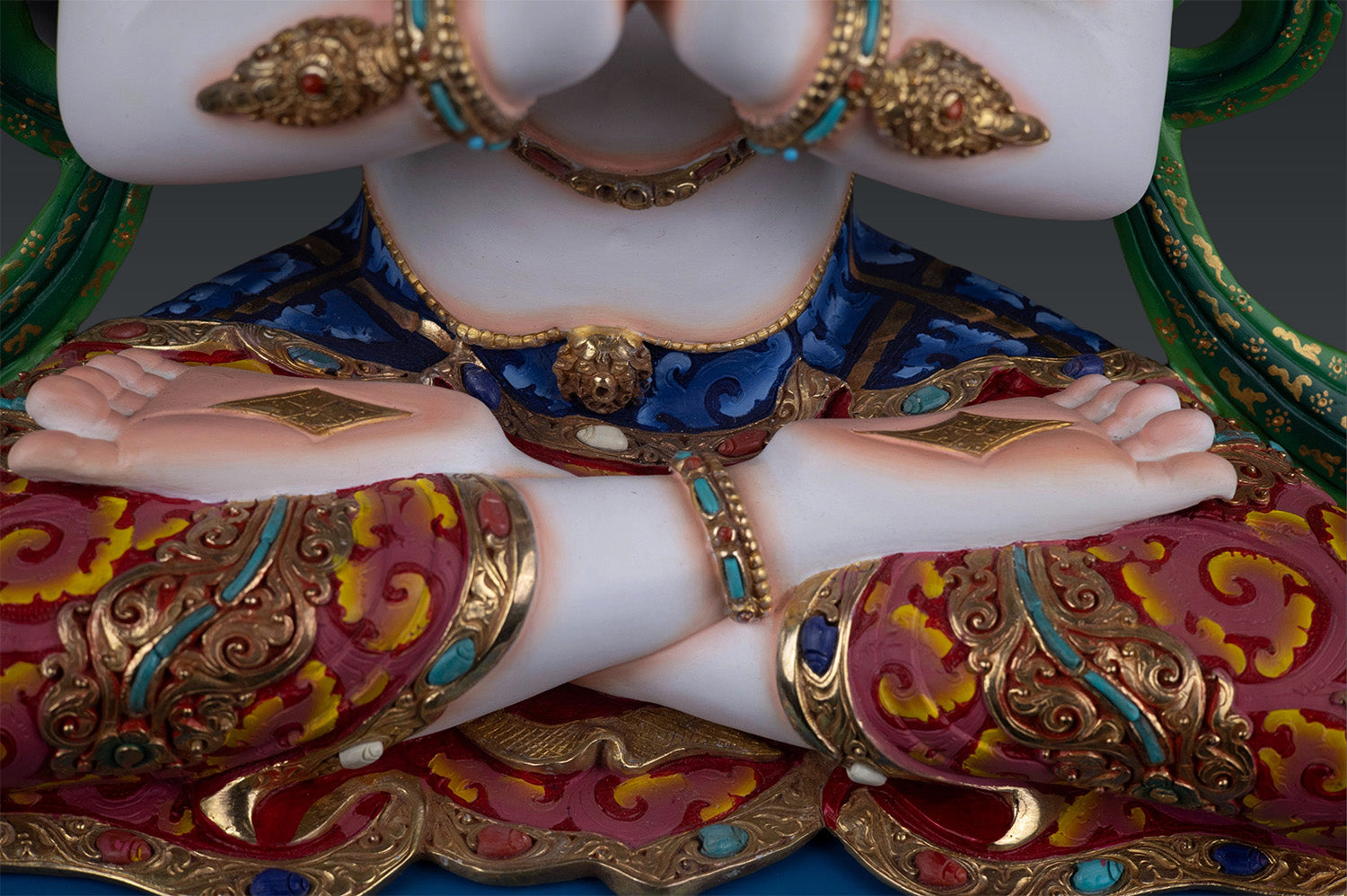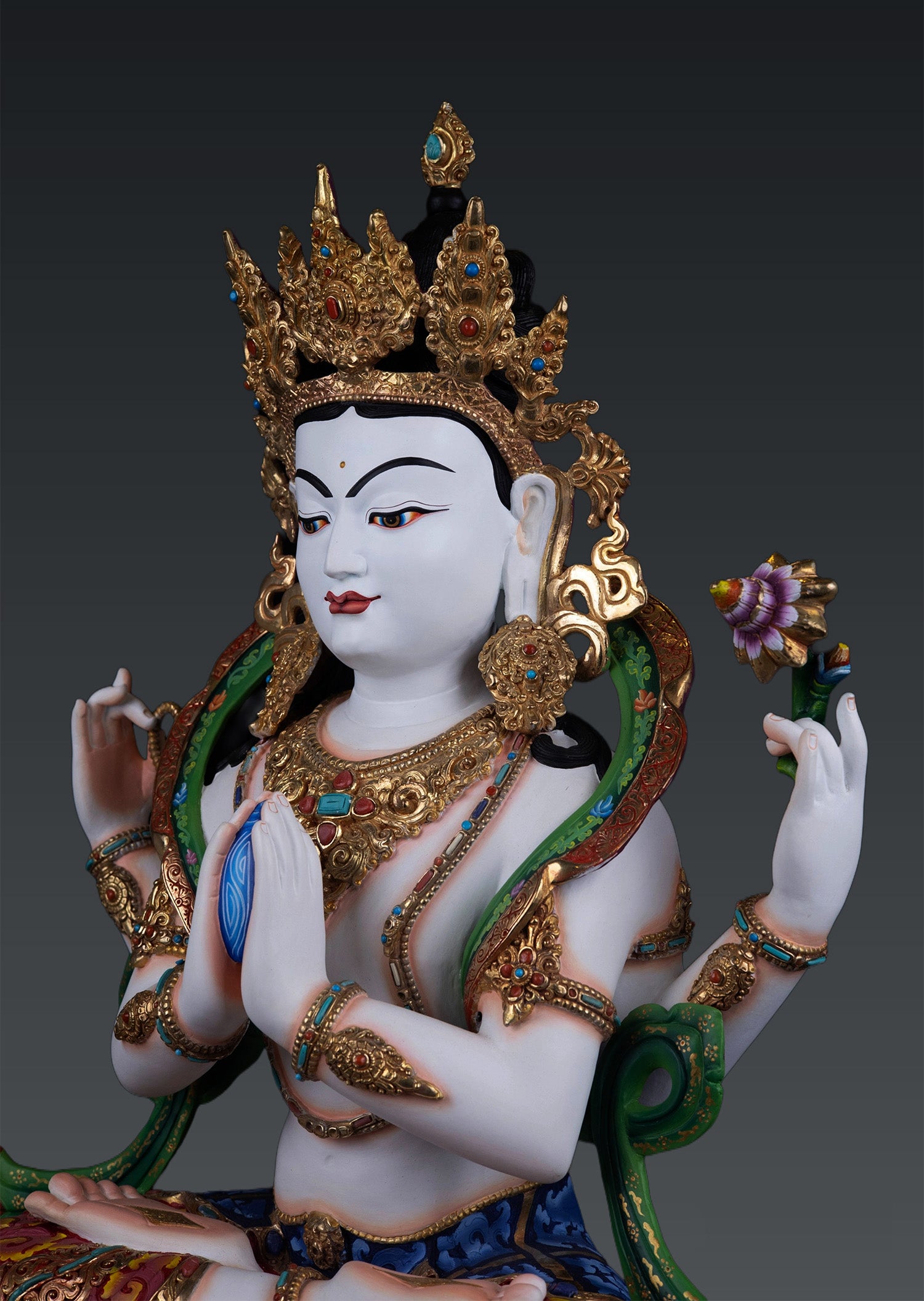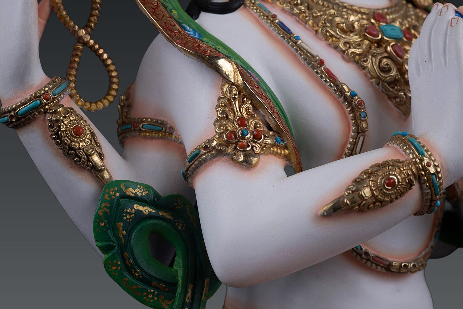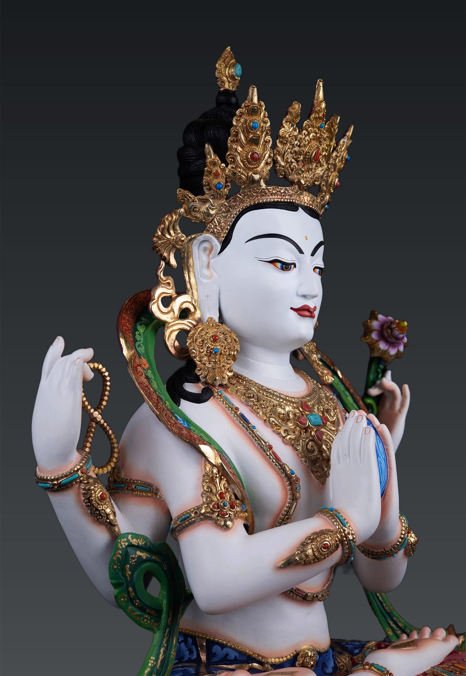 This Beautiful Handmade Hand Craved Handmade Tibetan Buddhism Hand Painting Lord Chenrezig Pure Copper Statue made by Artists of Nepal.