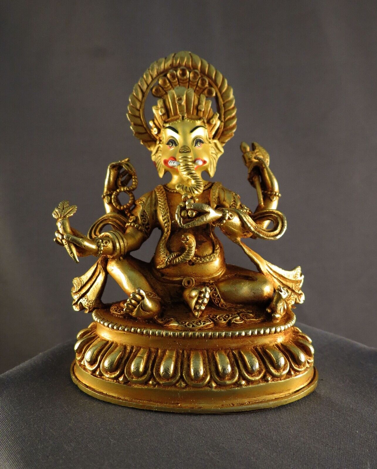 Hinduism Gold Face Hand Painting Lord Ganesh Copper Gold Plated Statue Figure Nepal