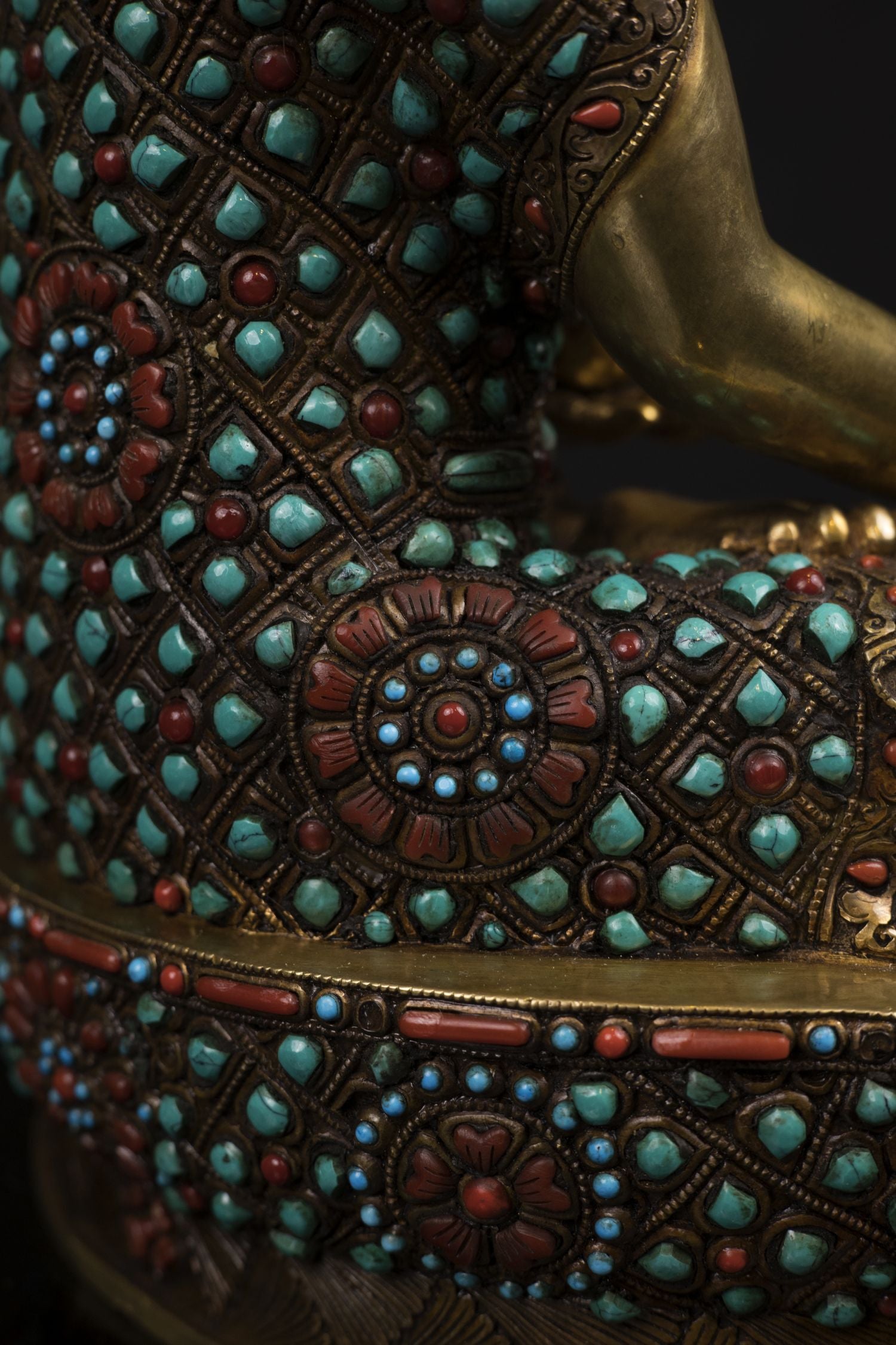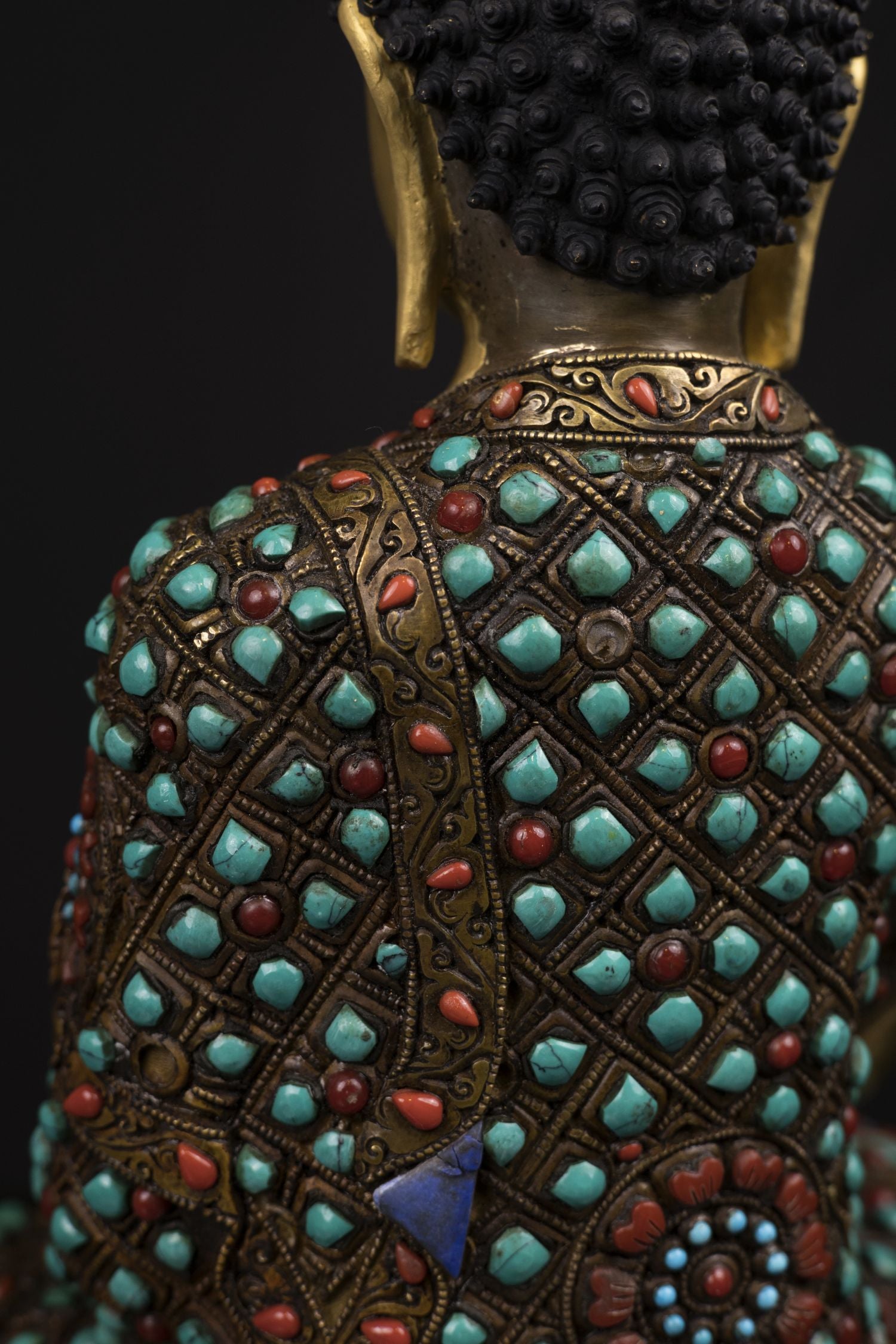 Lord Shakyamuni Buddha Copper Real Stone Turquoise Coral Lapiz Statue Sculpture Figure Nepal free