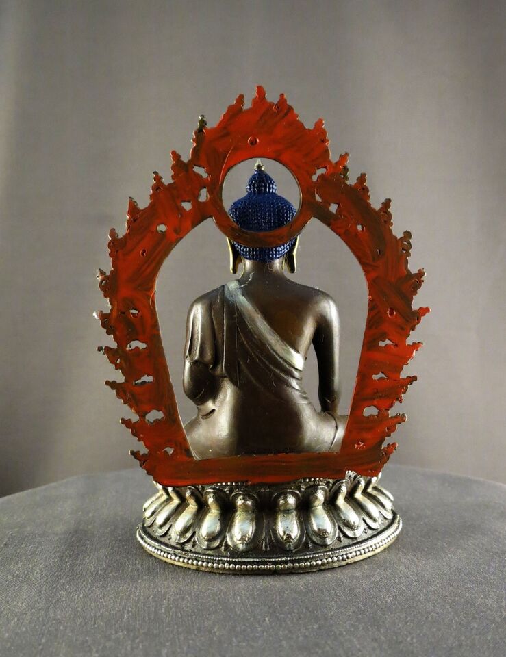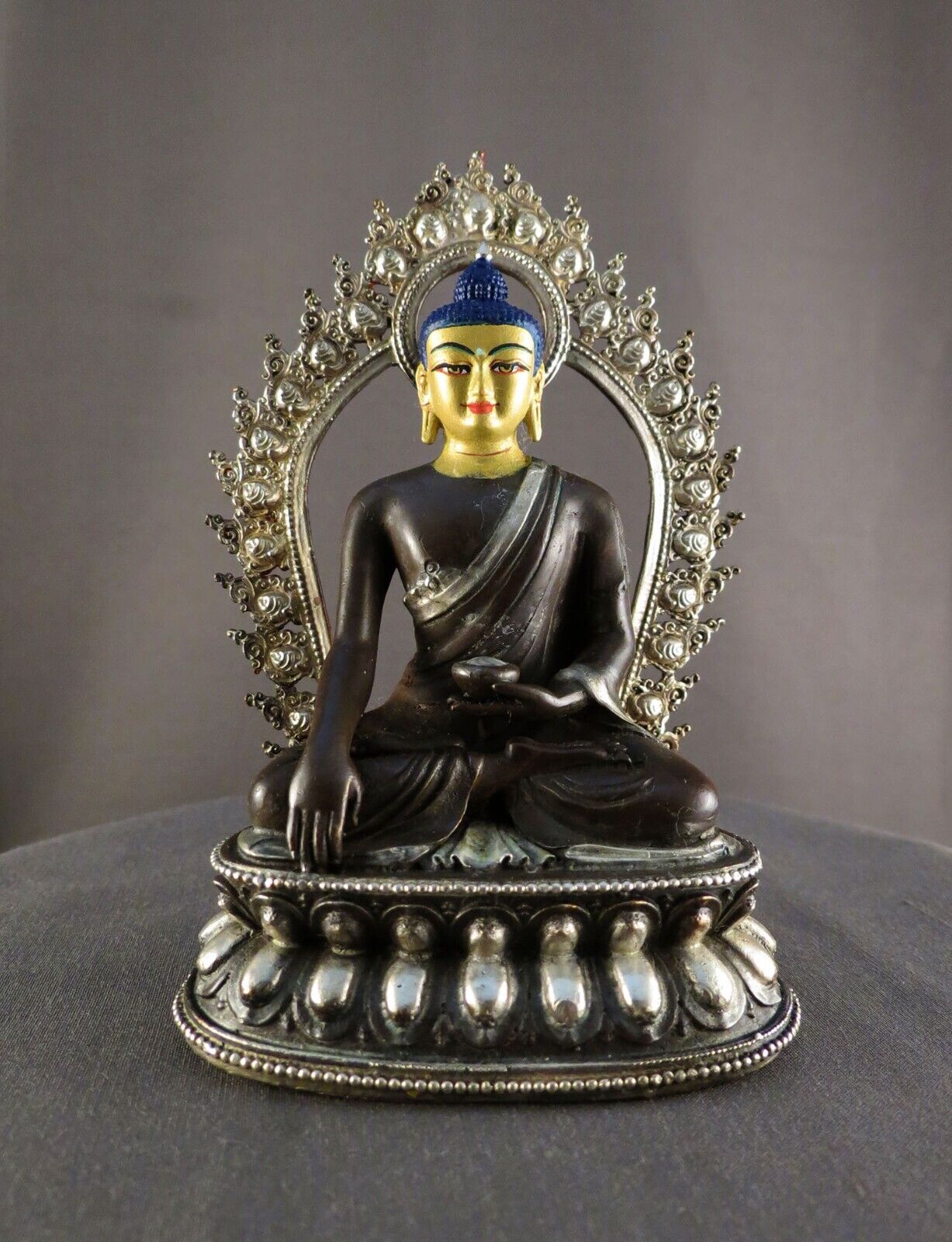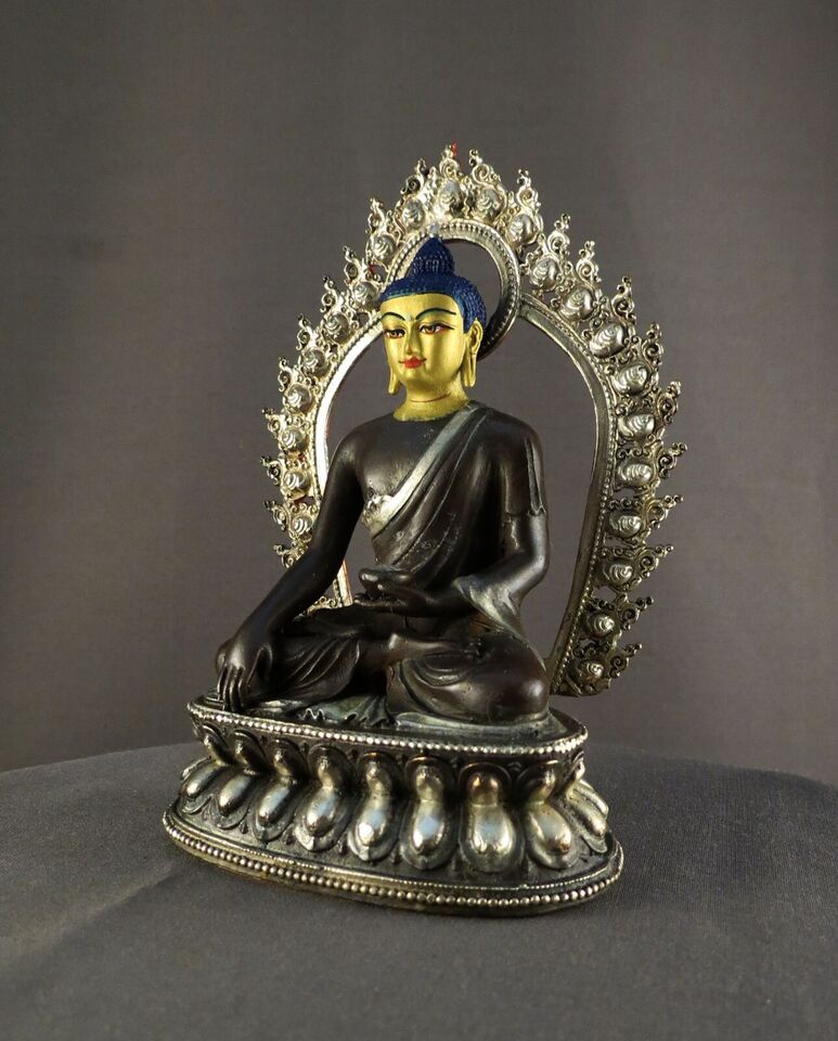 Lord Akshobhya Buddha Gold Face Hand Paint Silver Oxide Copper Statue Sculpture Figure Nepal