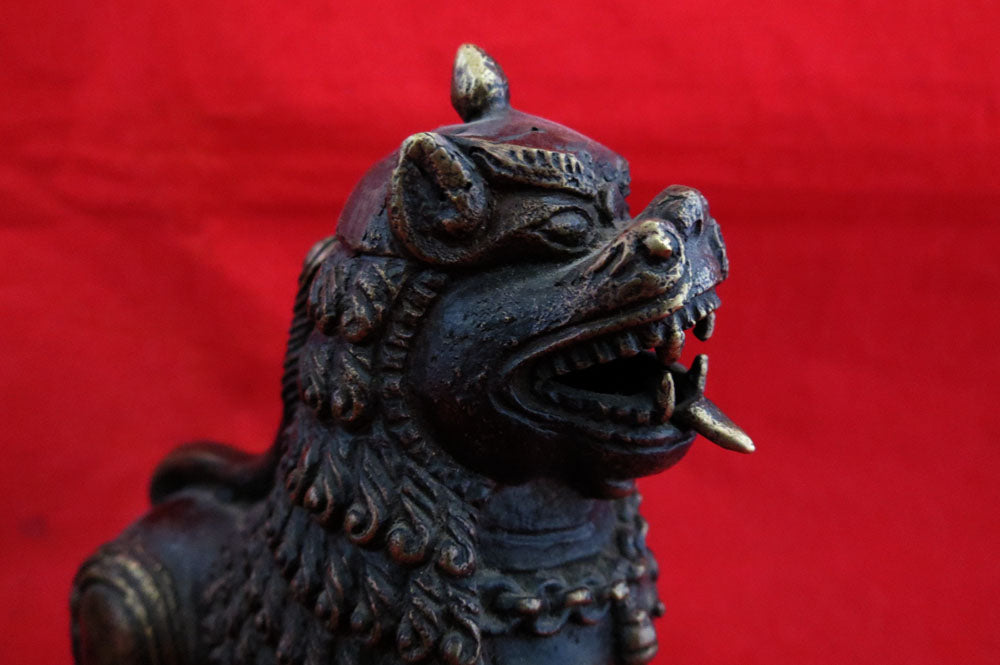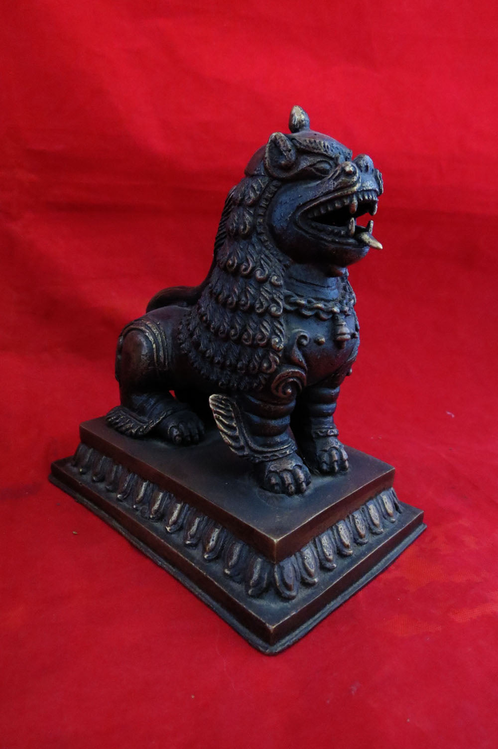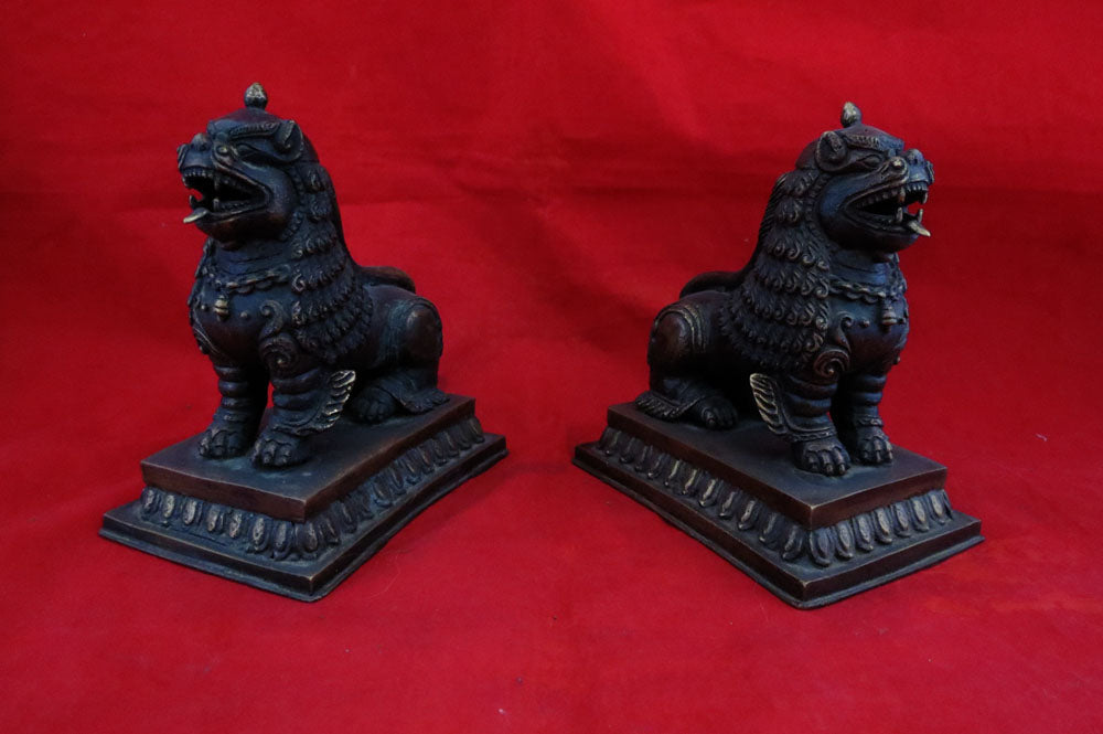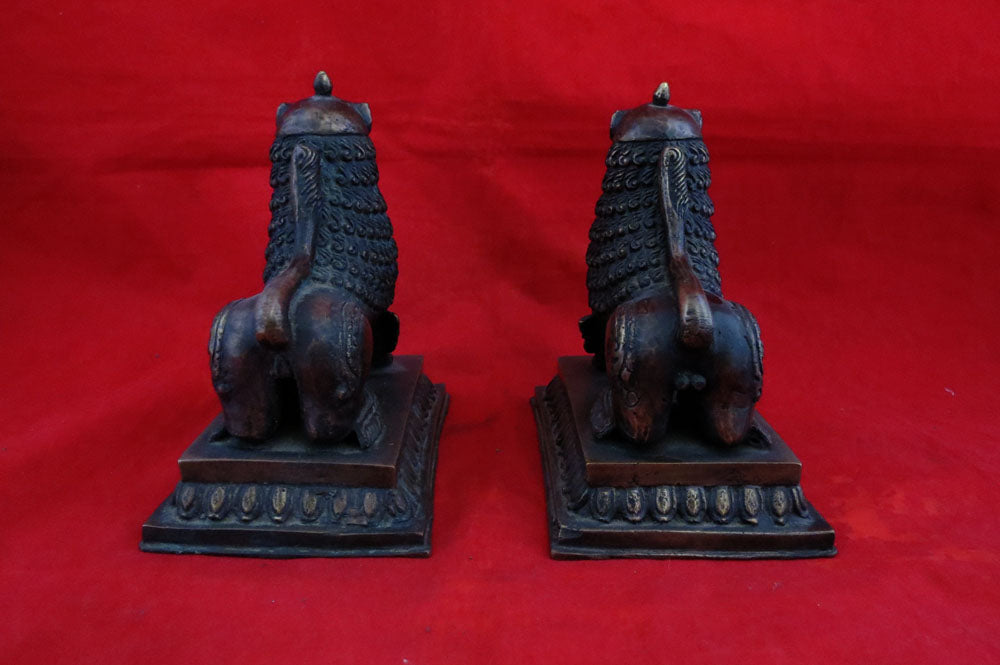 This Beautiful Handmade Tibetan Buddhism Protector Singha Pair of Lion Feng Shui Lions Foo Fu Dog Guardian Lion Oxide Brass Statue made in Nepal.