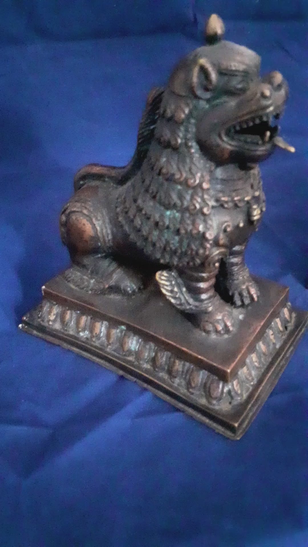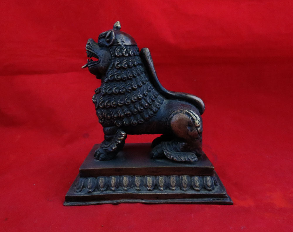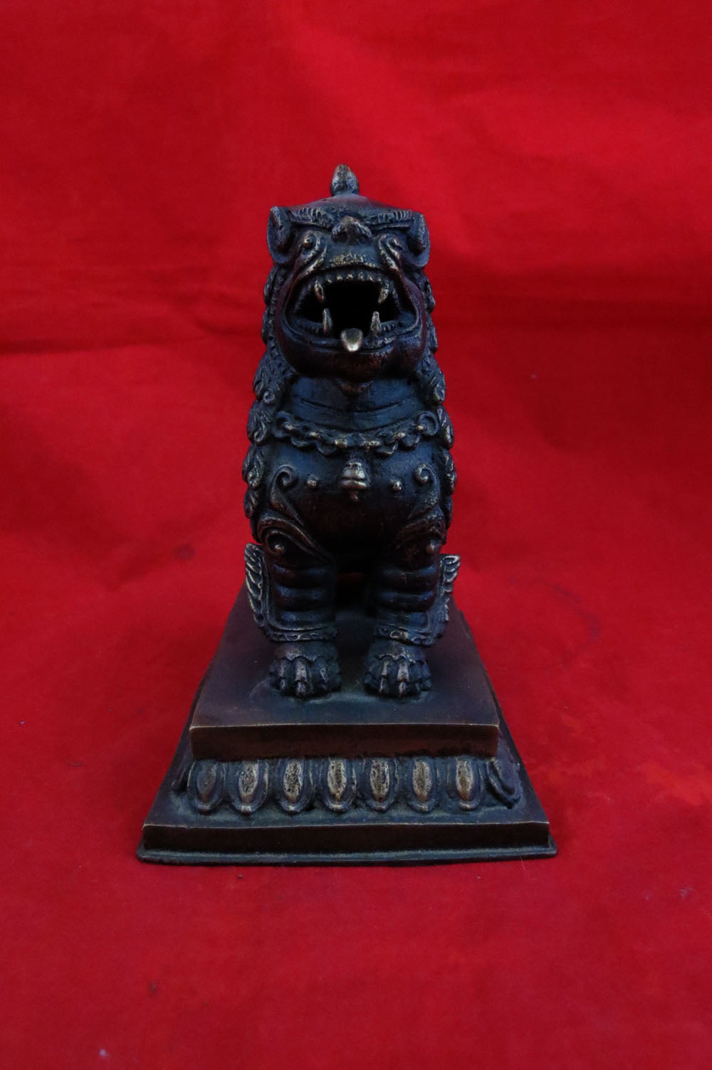 This Beautiful Handmade Tibetan Buddhism Protector Singha Pair of Lion Feng Shui Lions Foo Fu Dog Guardian Lion Oxide Brass Statue made in Nepal.