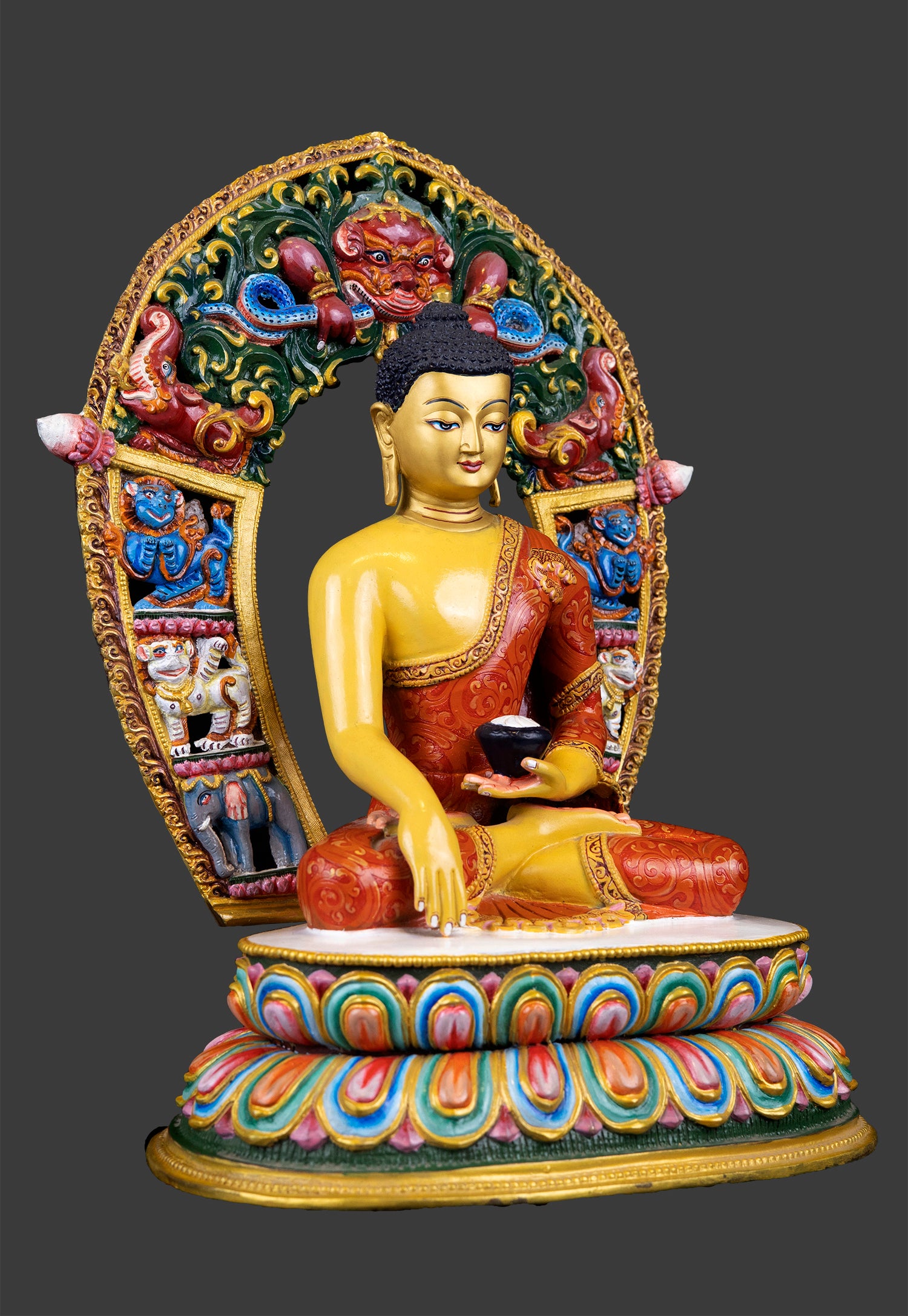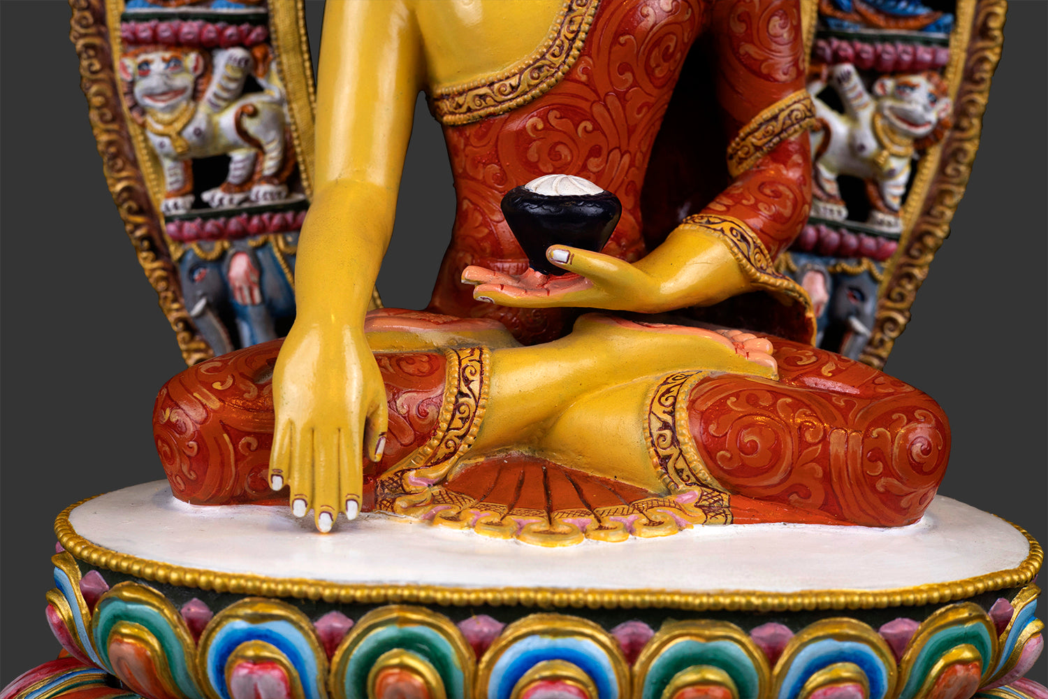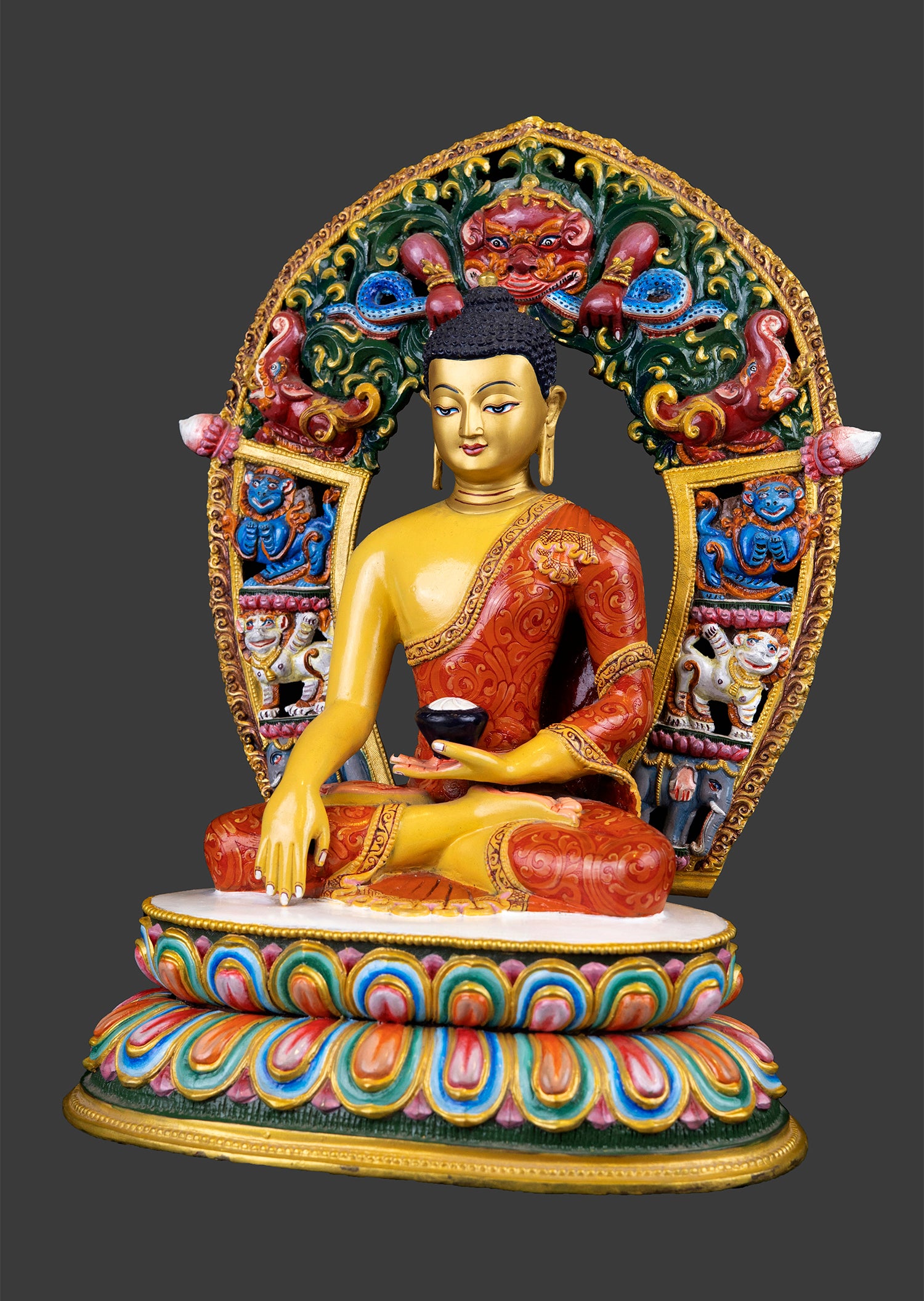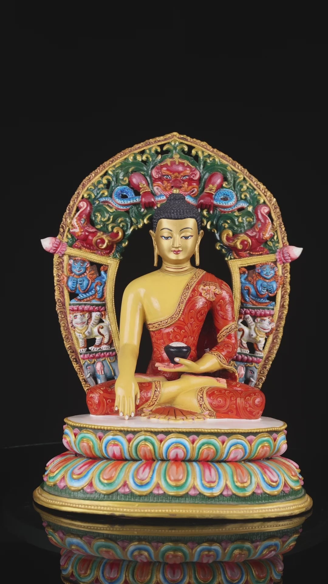 Unique Rare Hand Painingt Buddhism Lord Shakyamuni Akshobya Buddha Copper Statue Figure Nepal free