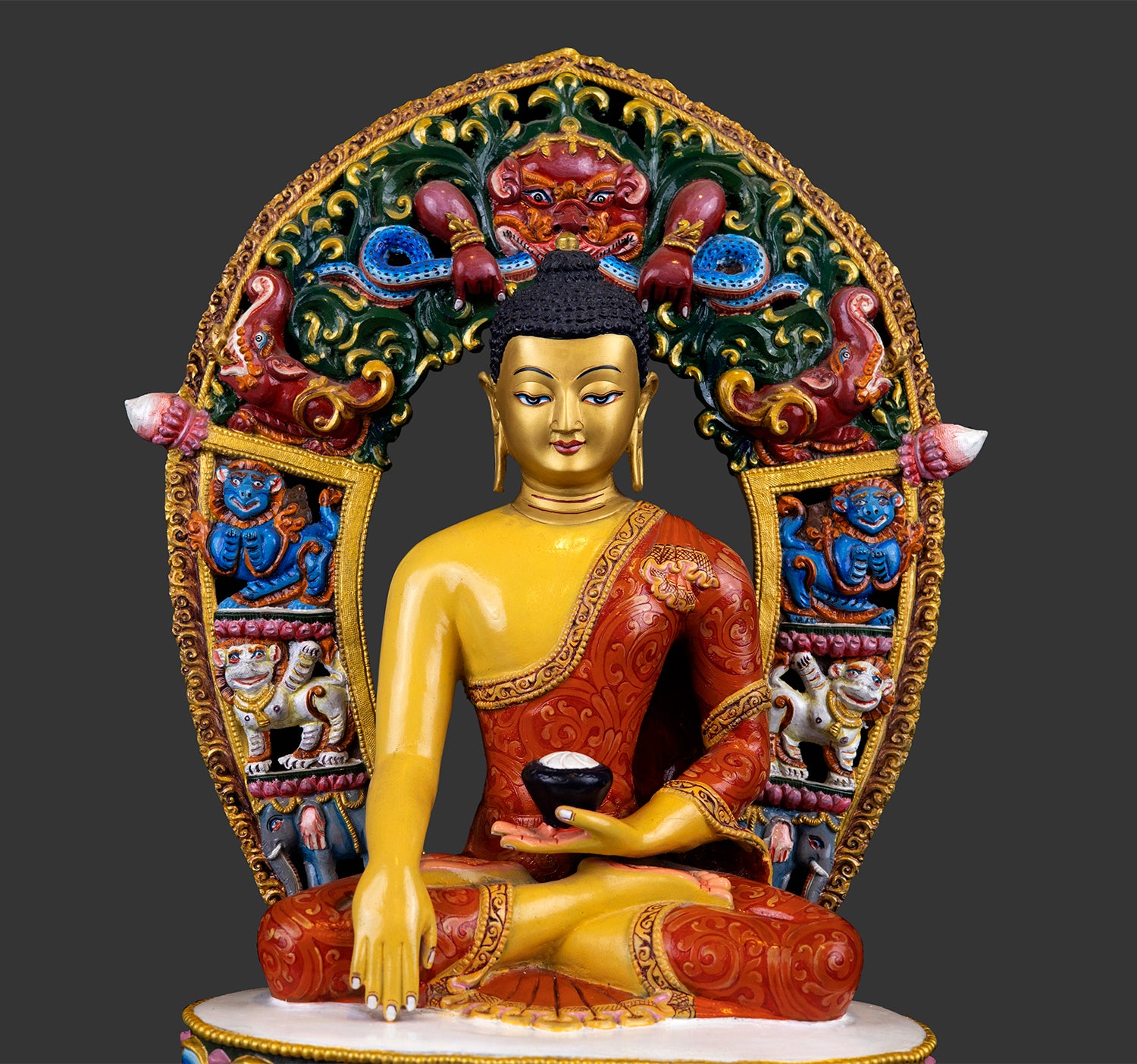 Shakyamuni Buddha is the Buddha of our time. He was born on a full-moon day in May of 623 BCE, into the Shakya clan in Lumbini in what is now Nepal. His parents were King Suddhodana and Queen Maya. He is the historical founder of what came to be known as Buddhism. King Suddhodana invited a Brahmin who was conversant with the three Vedas to name the child. He named the child Siddhartha (meaning “one whose aim is accomplished”). Siddhartha Gautama was the worldly name of the Buddha. Gautama was his family name. Shakyamuni, his name after he became a buddha, means "Sage of the Shakyas."