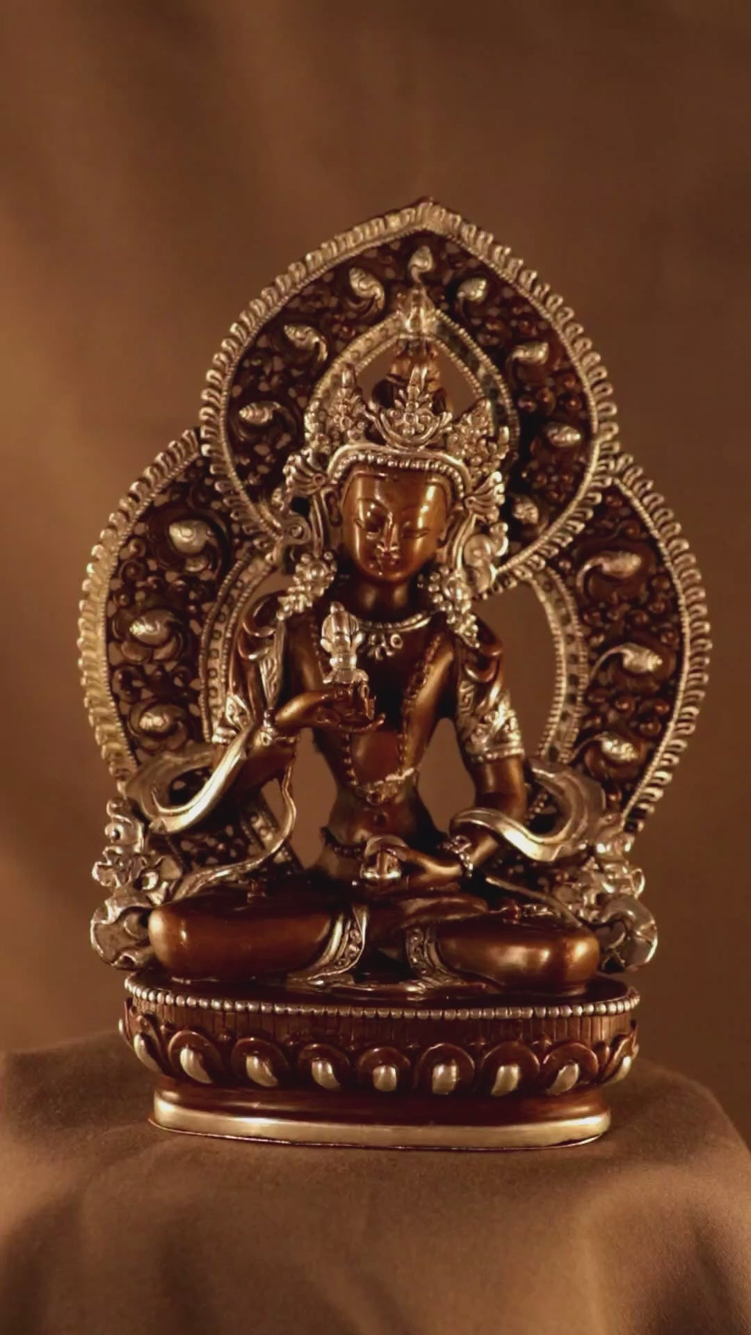Vajra sattva, the sixth Dhayani Buddha, is regarded by the Nepali Buddhist as the priest of the Five Dhyani Buddha. He is not represented in the stupa like other Dhyani Buddhas, but independent shrines are dedicated to his worship. His worship is always performed in secret and is not open to those who initiated into the mysteries of the Vajrayana. Vajra sattva is represented in two forms, single and Yab-yum. This Dhyani Buddha wears all ornaments, rich dress and a crown. He is of white color. He sits cross legged in the meditative pose like other Dhyani Buddhas. He carries the vajra in his right hand with palm upwards against the chest and ghanta (bell) in the left hand resting upon the left thigh.