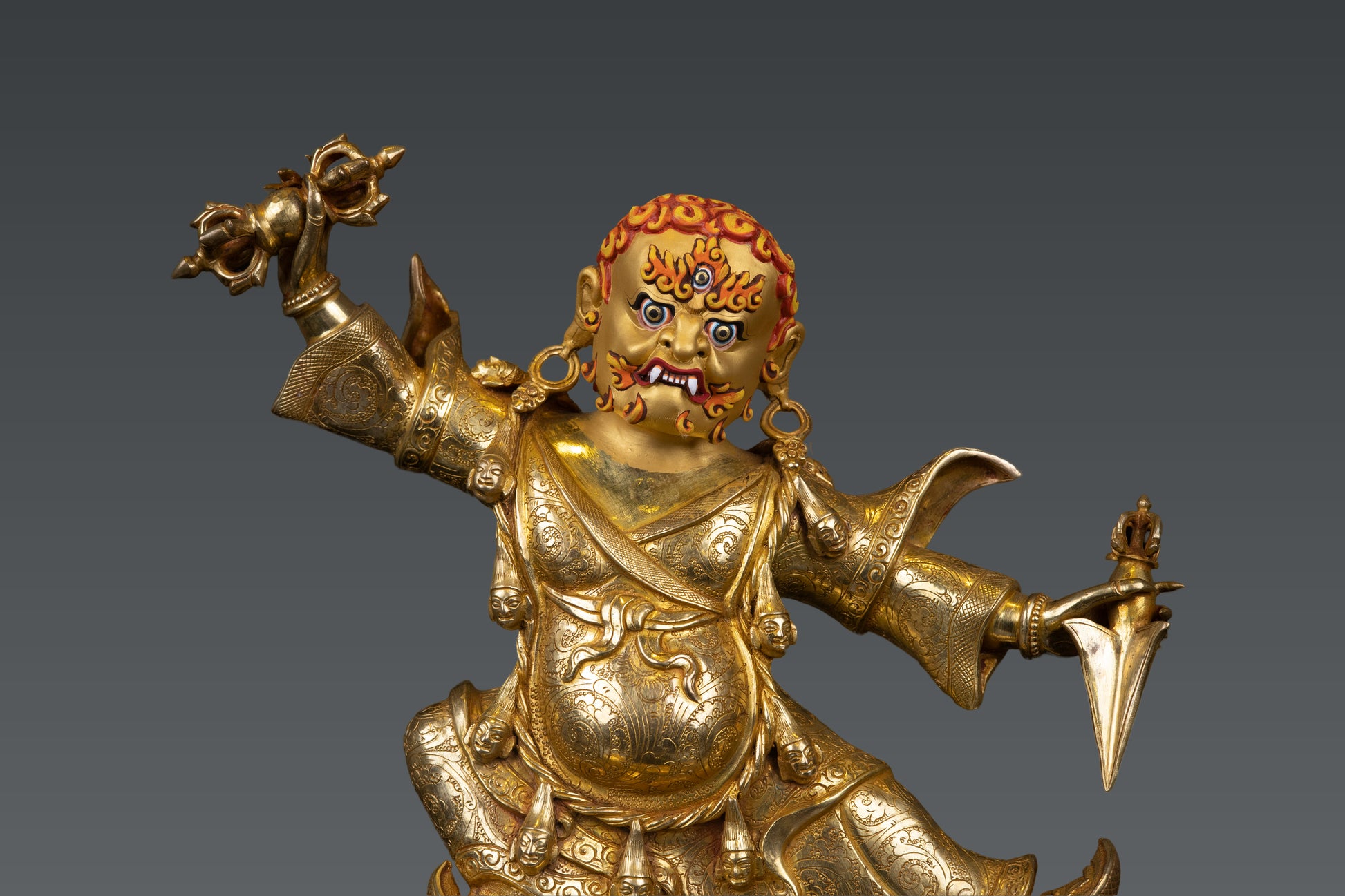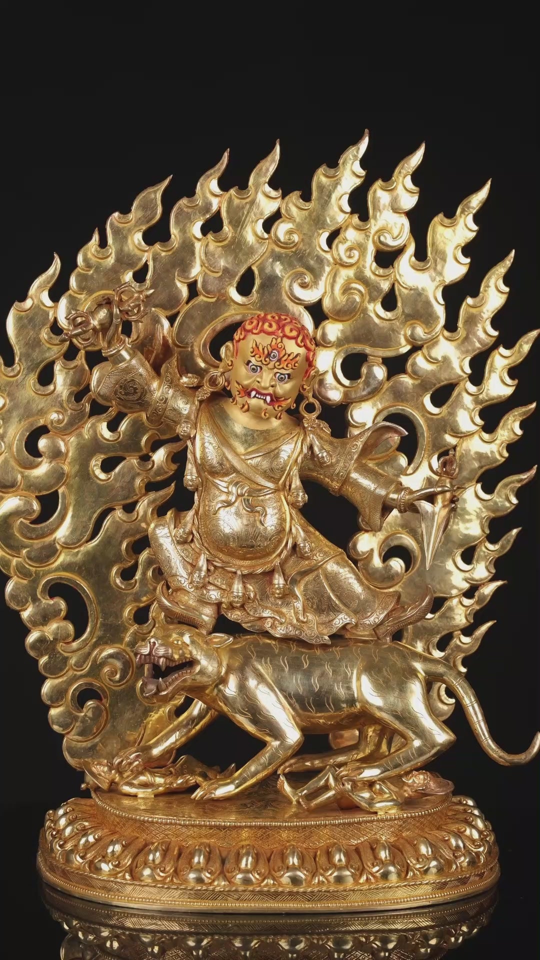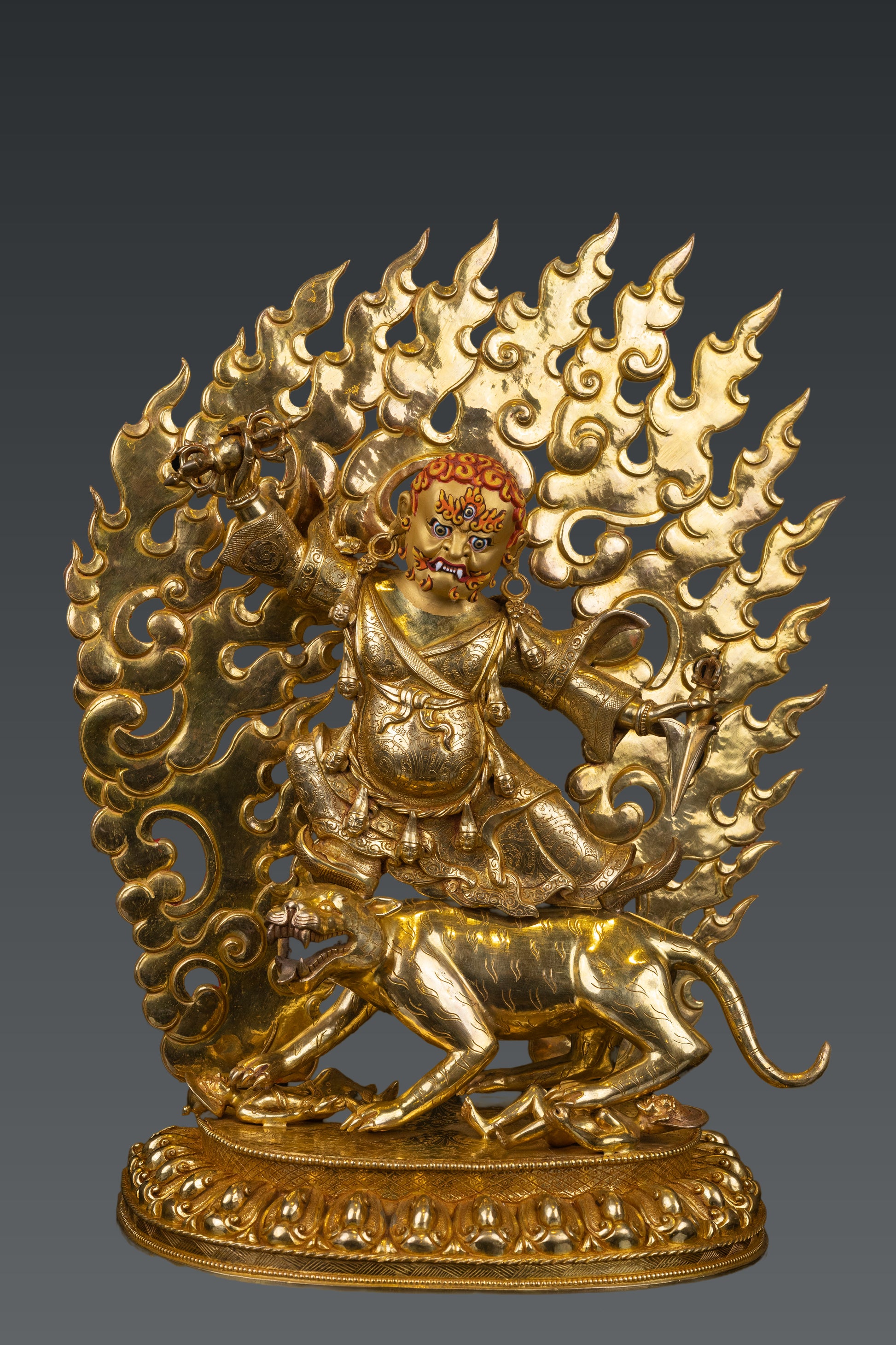 This Beautiful Handmade Hand craved Tibetan Buddhism Wrathful Lord Drolo Dorje Full Body Gold Plated Copper Statue made by Artists of Nepal.