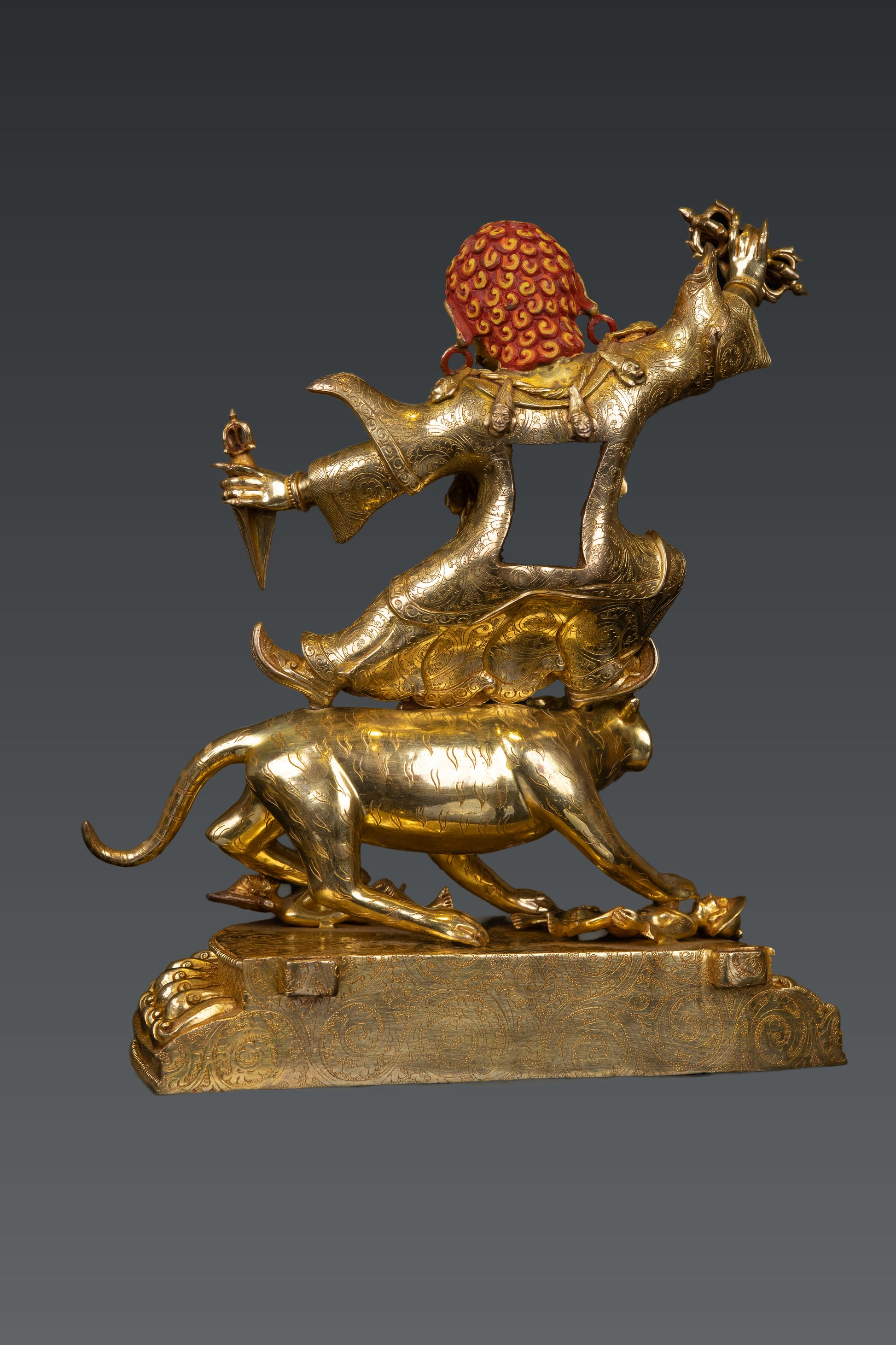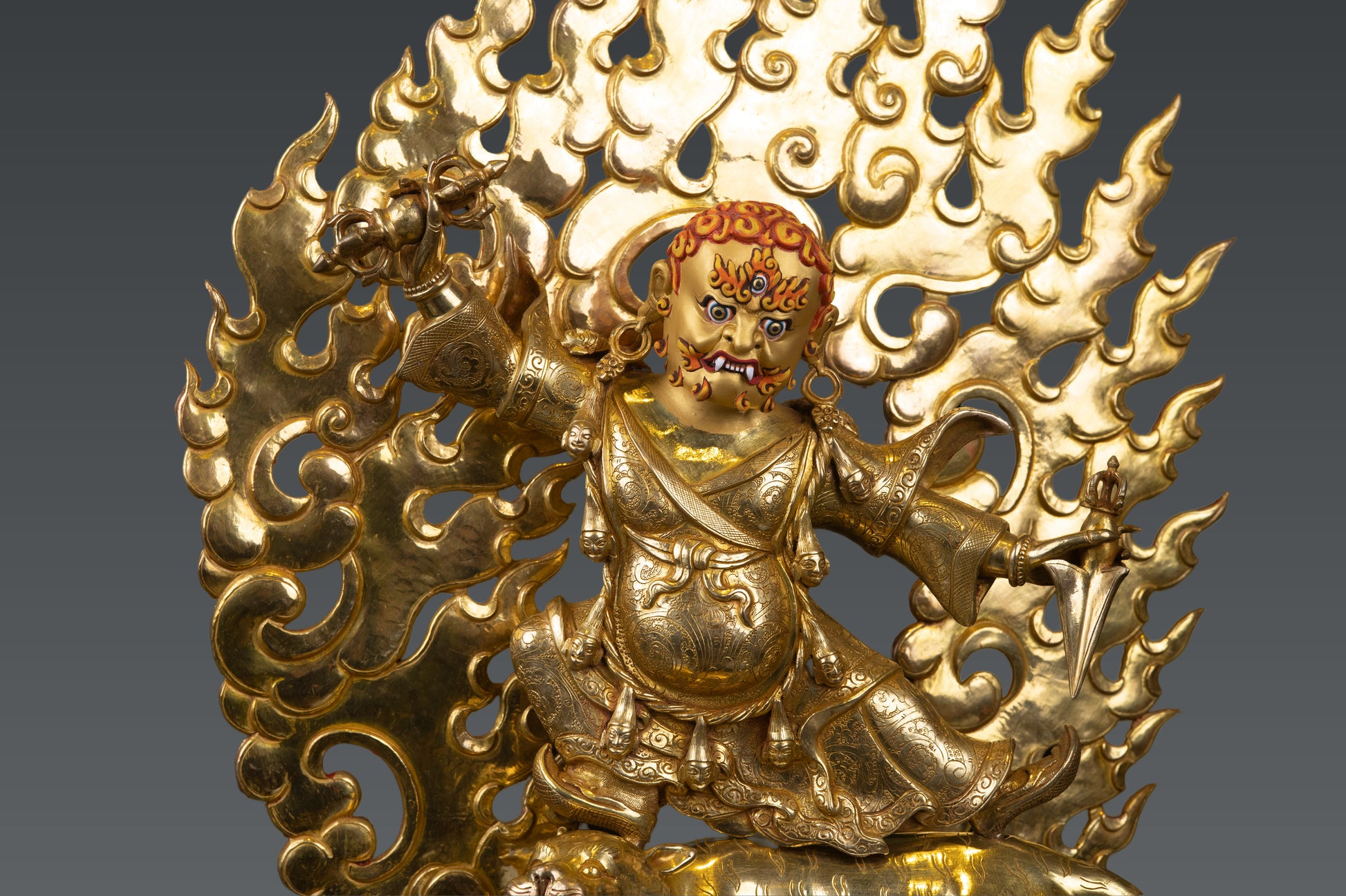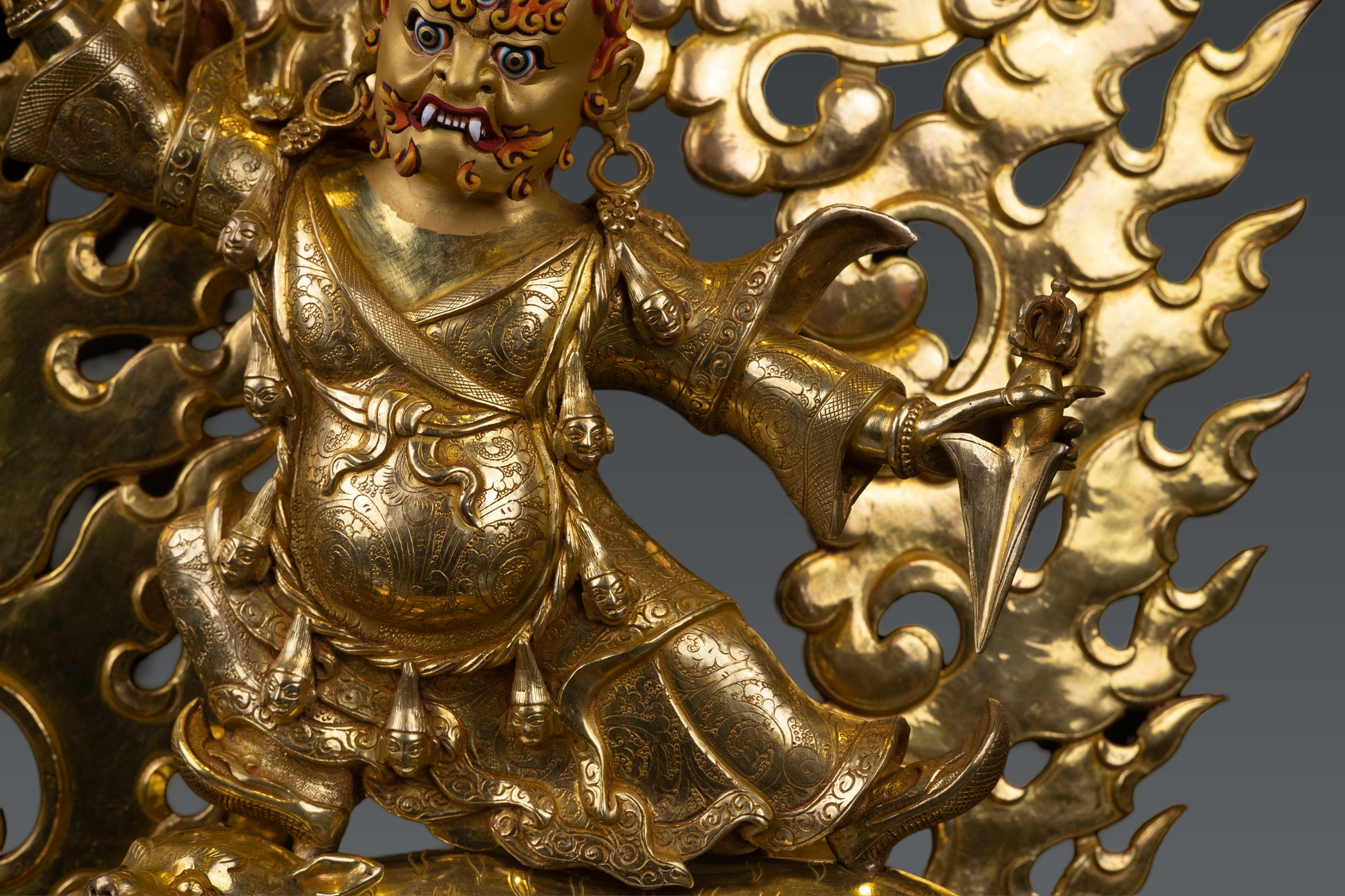This Beautiful Handmade Hand craved Tibetan Buddhism Wrathful Lord Drolo Dorje Full Body Gold Plated Copper Statue made by Artists of Nepal.