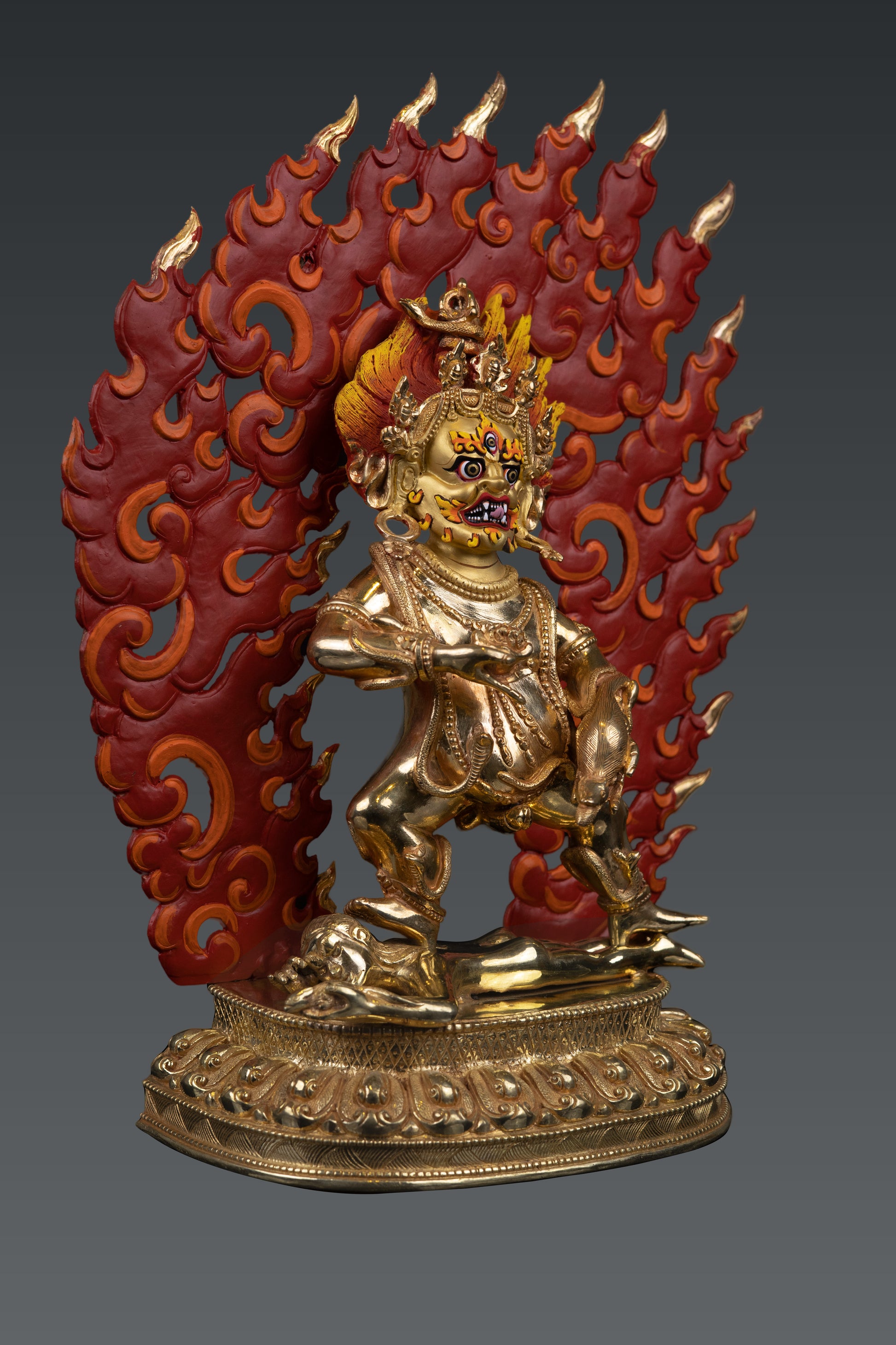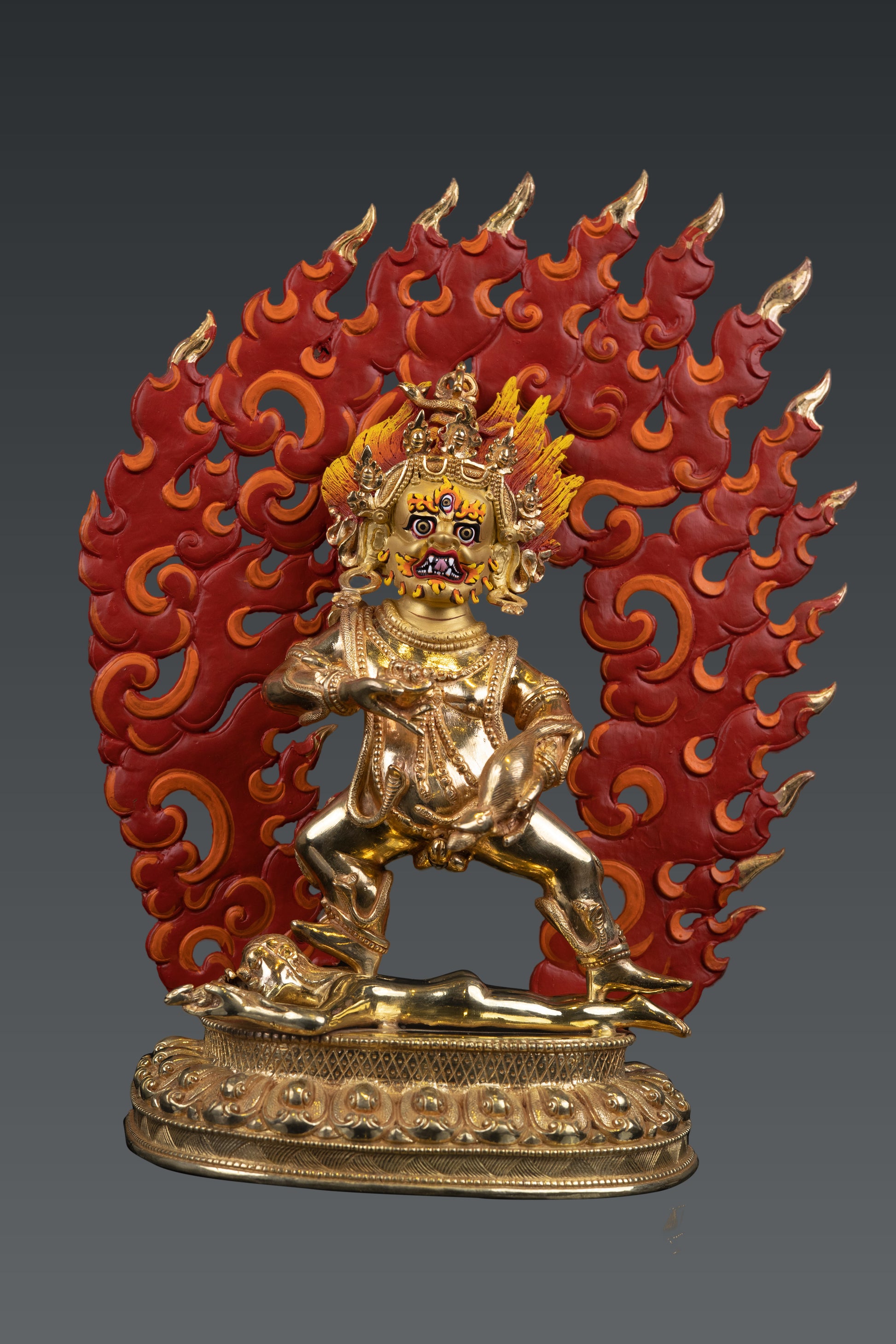 This Beautiful Finest Handmade 24K Gold Face Hand Painting Tibetan Buddhism Protecter God Yamantaka Pure Copper Gold Plated Statue made in Nepal.