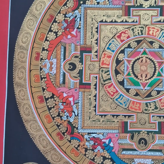 This Beautiful Natural Color Fine Art in Canvas Cloth Om Mani Padme Hum Mantra with Ritual 8 Auspicious Lucky Sign Mandala Thangka Hand Painting made in Nepal.