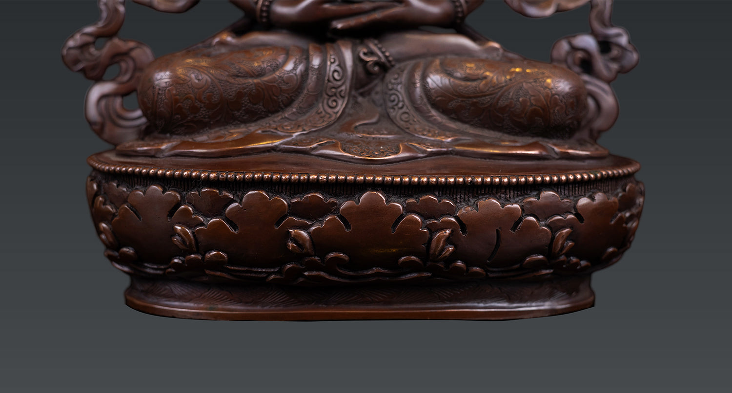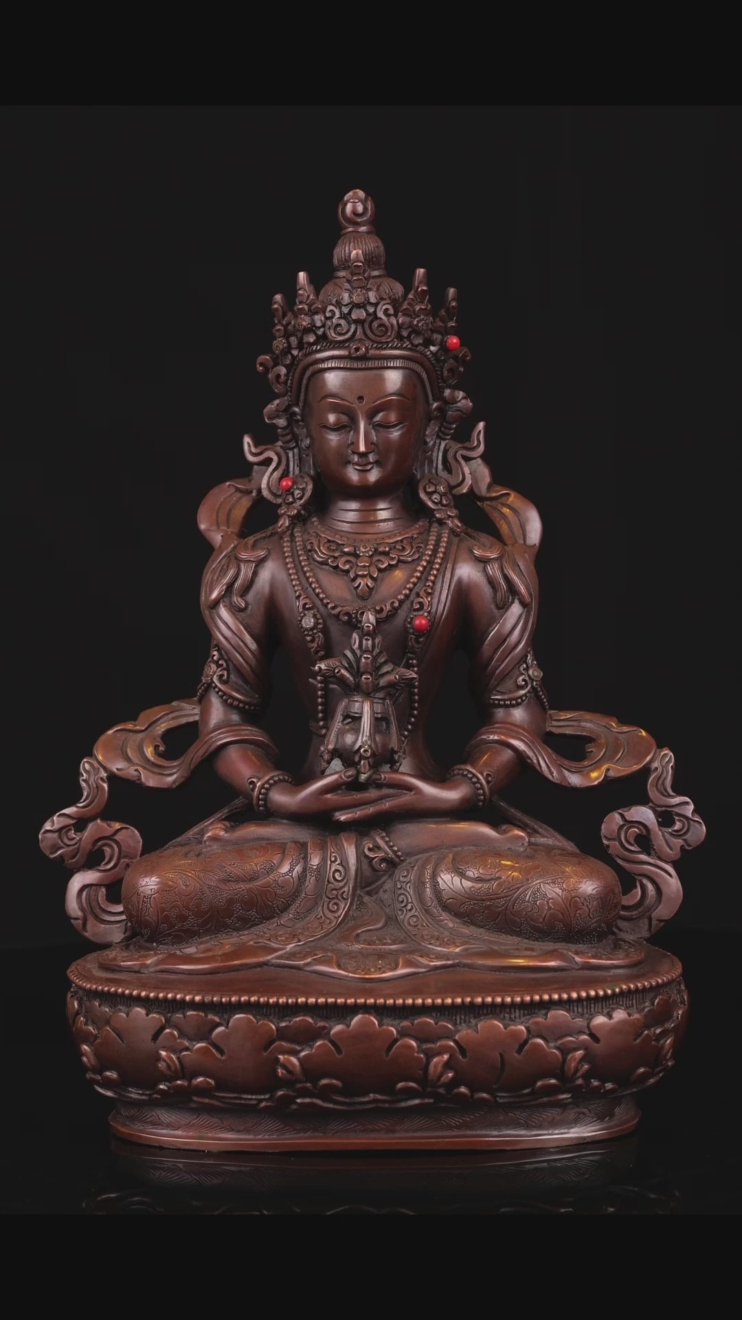This Beautiful Handmade Hand craved Tibetan Buddhism Lord Aparmita (Amitayus) Pure Copper oxide Statue made by Artists of Nepal.