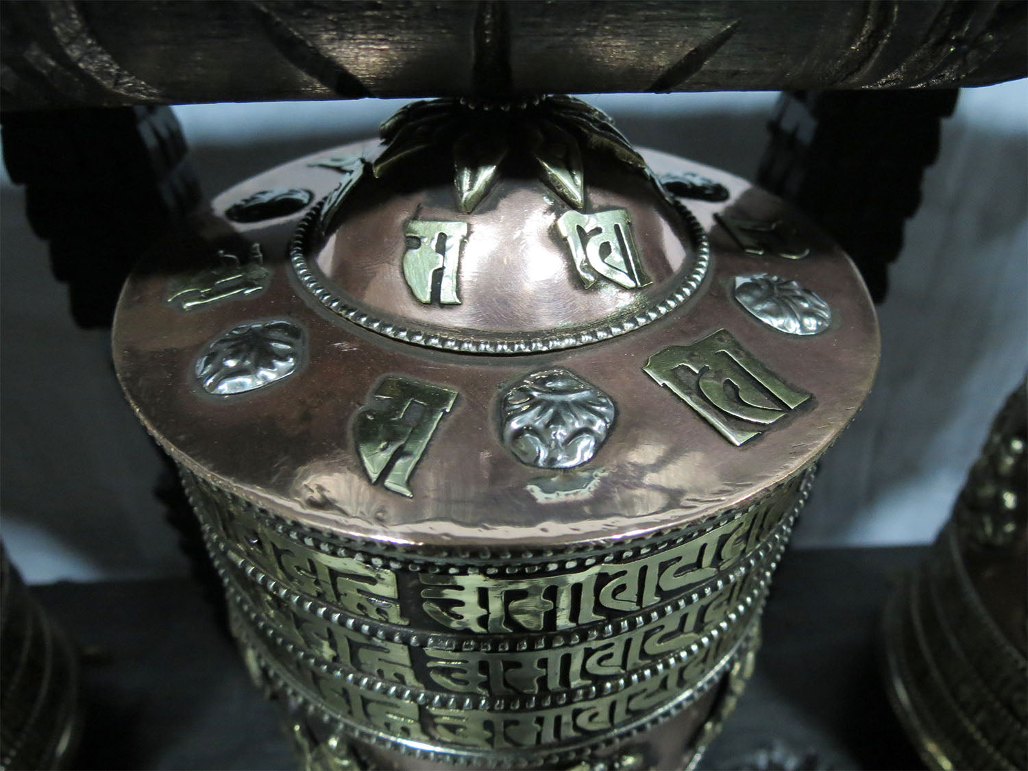 Tibetan Buddhism Copper Prayer Wheel - Om Mani Padme Hum Mantra, Ritual 8 Auspicious lucky Signs