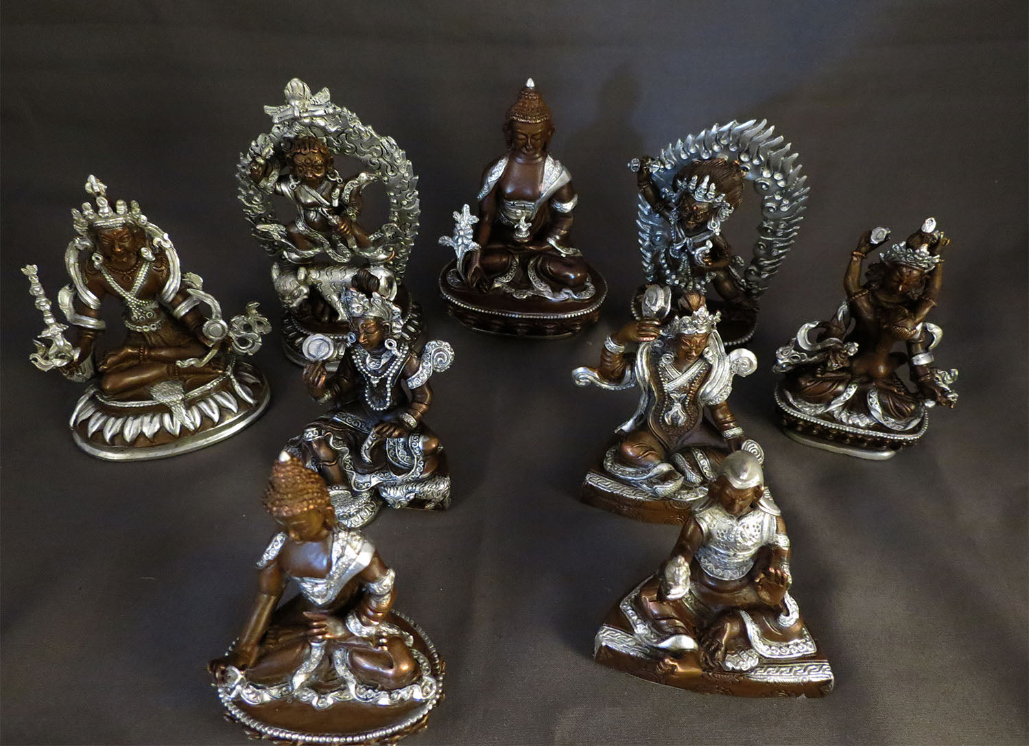 Tibetan Buddhism Eight Manifestations of Guru Silver Oxide Copper Statue Sculpture Nepal