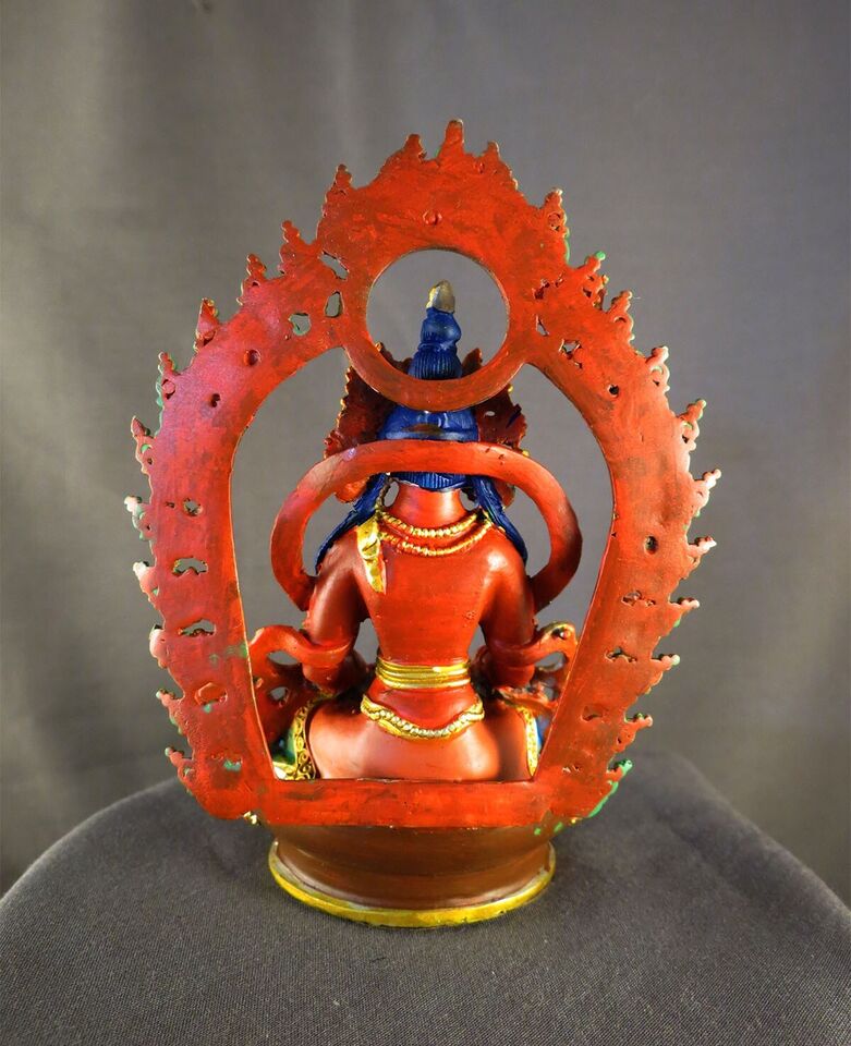 This Beautiful Handmade Buddhism Lord Aparmita (Amitayus) Fine Copper Hand Painting Statue made by Artists of Nepal.