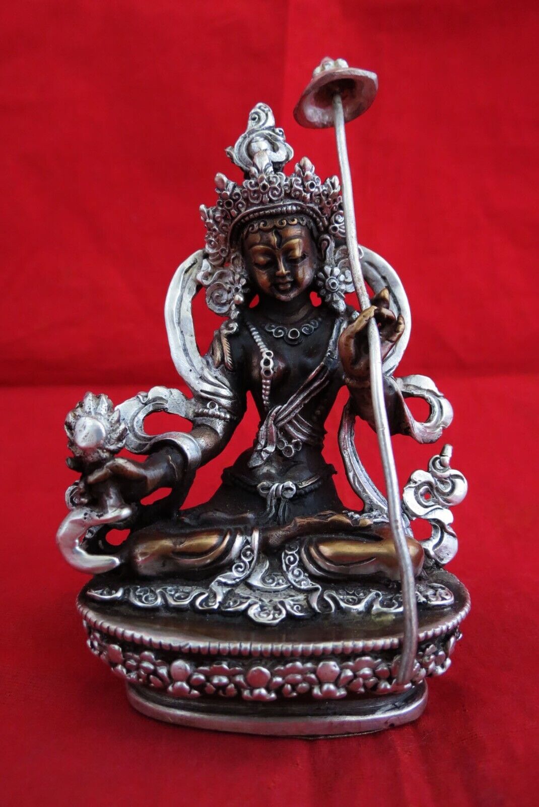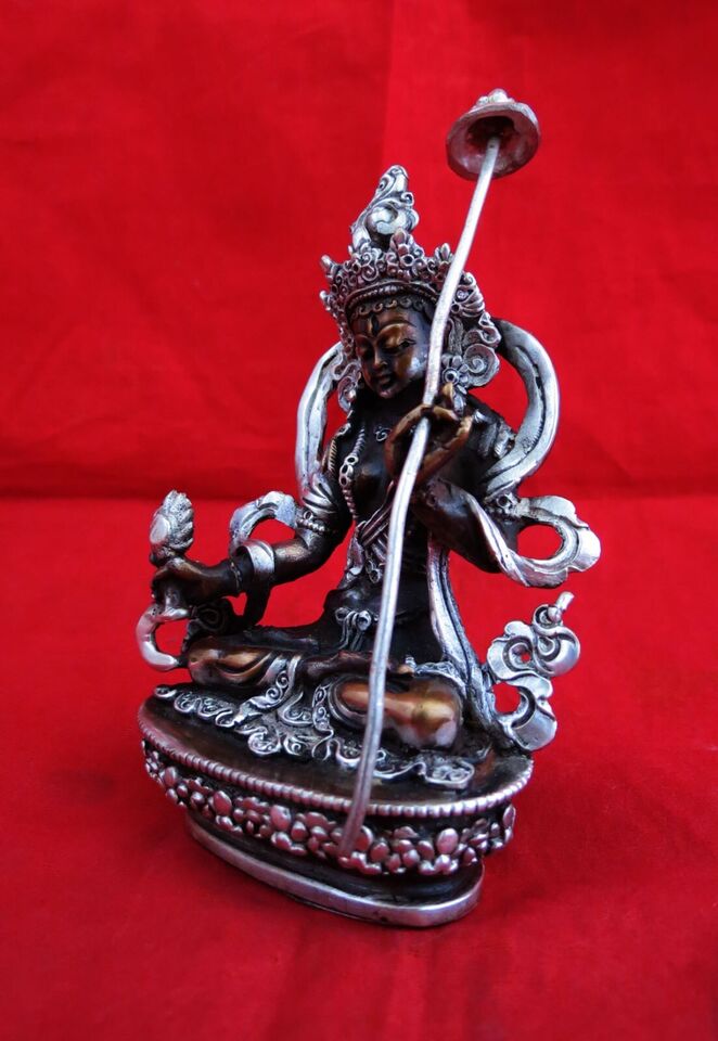 This Beautiful Handmade Hand Craved Tibetan Buddhism Goddess Chatra Tara Silver Oxide Copper Statue made by Artists of Nepal.