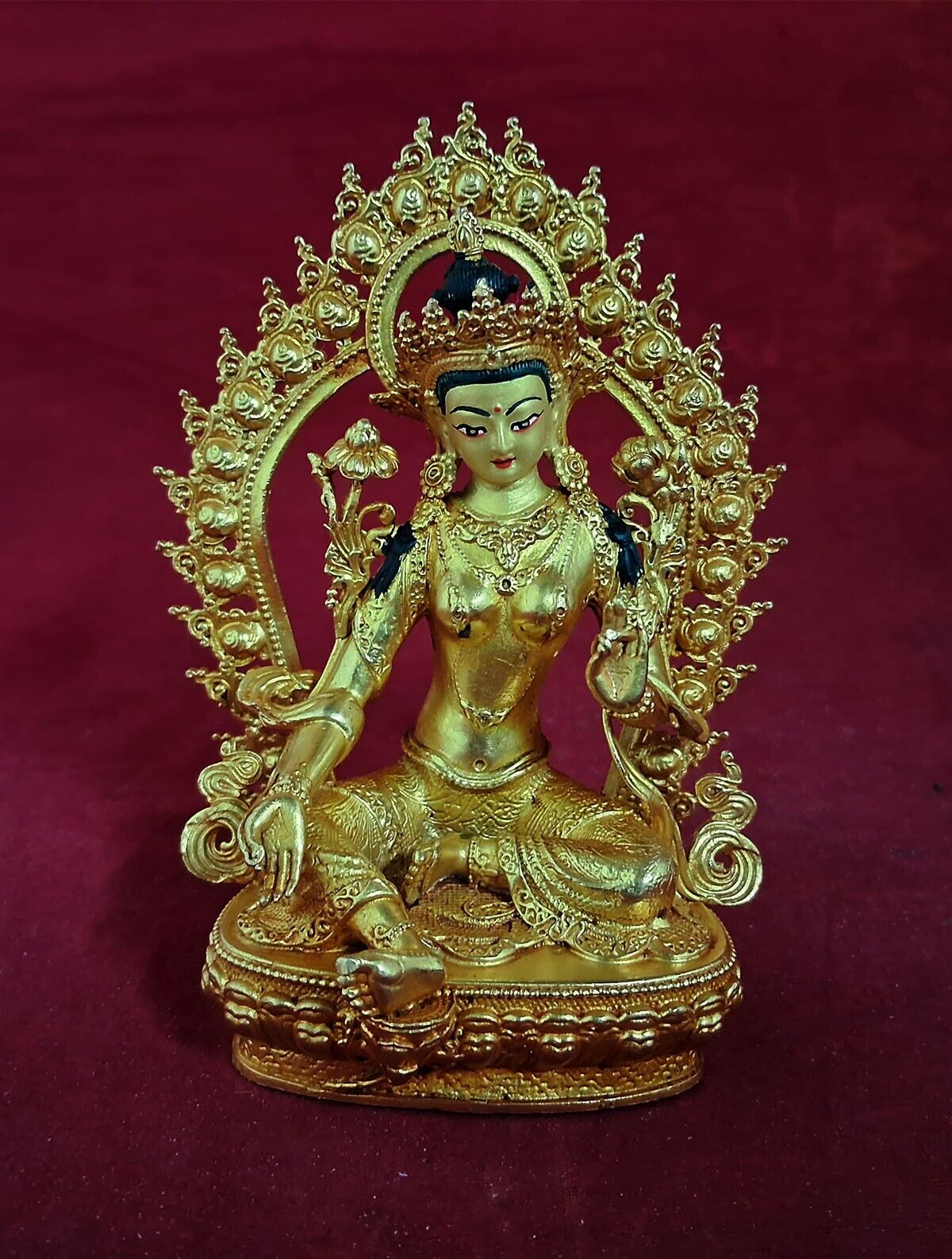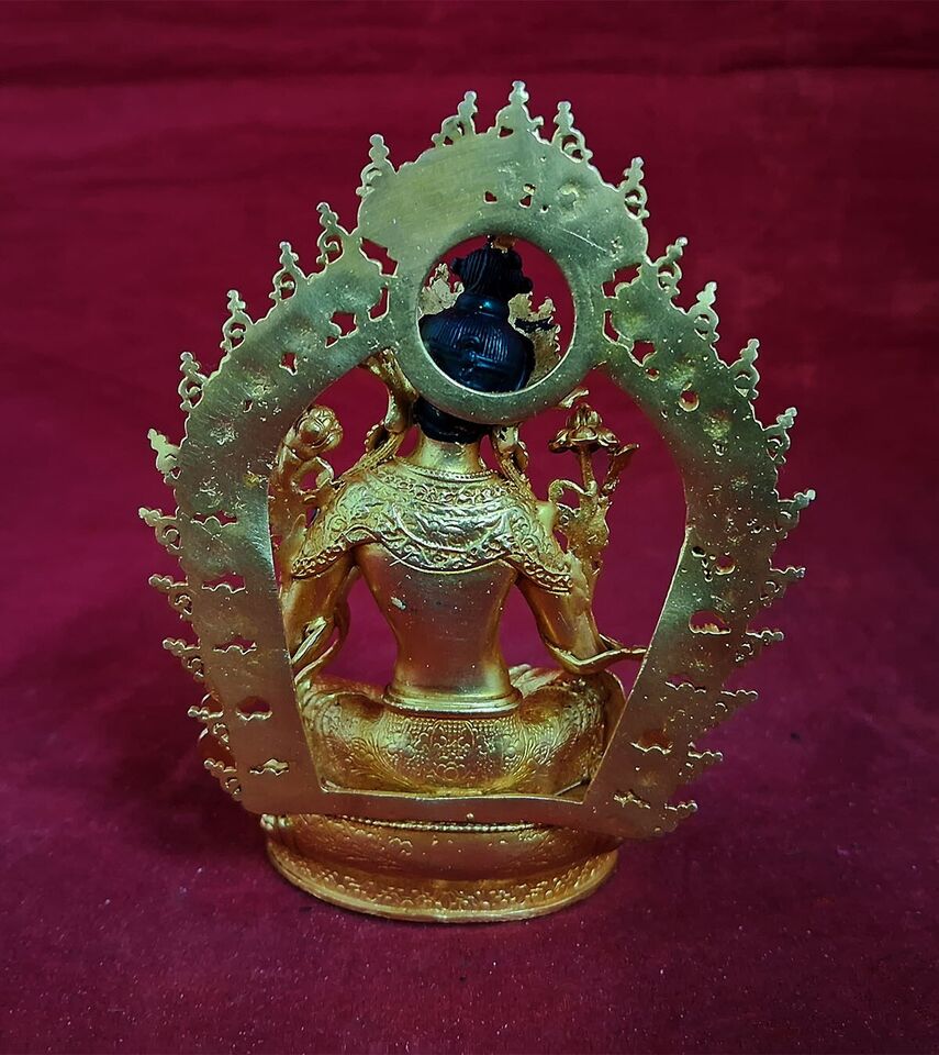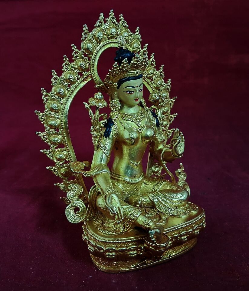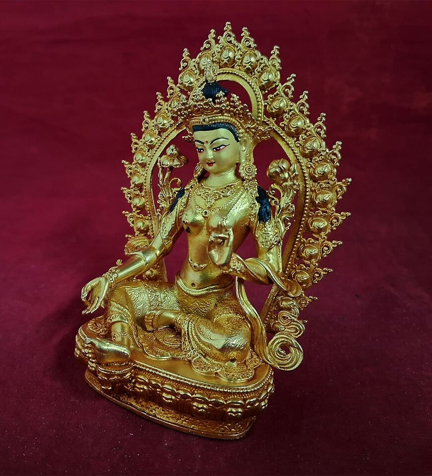 This Beautiful Handmade Buddhism Goddess Green Tara Copper Gold Plated Statue made by Artists of Nepal.