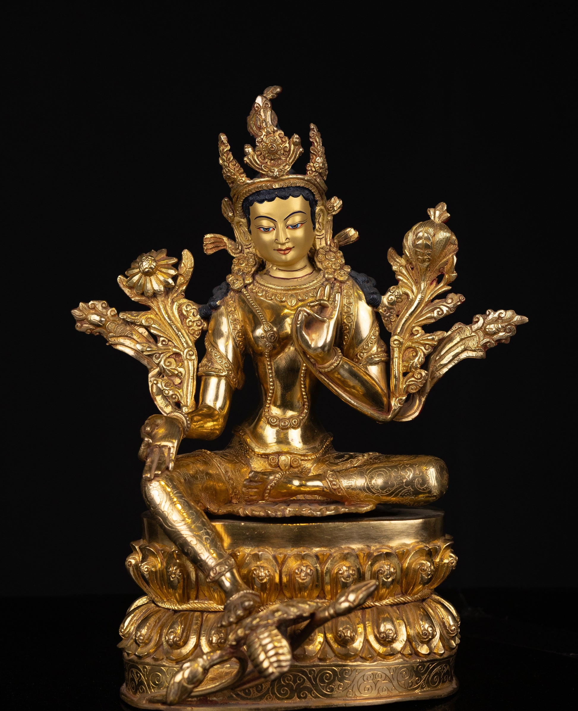 Tibetan Buddhism Gold Face Paint Goddess Green Tara Rupa Dolma Drolma Jongma Gold Plated Copper Statue Sculpture Figure Nepal free