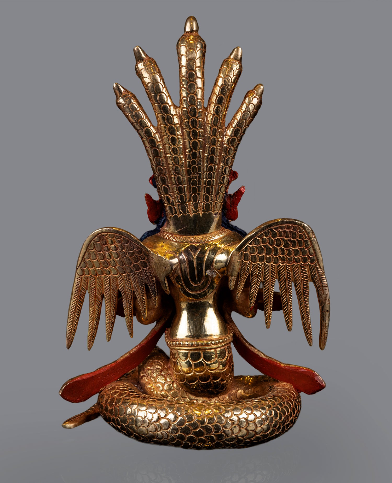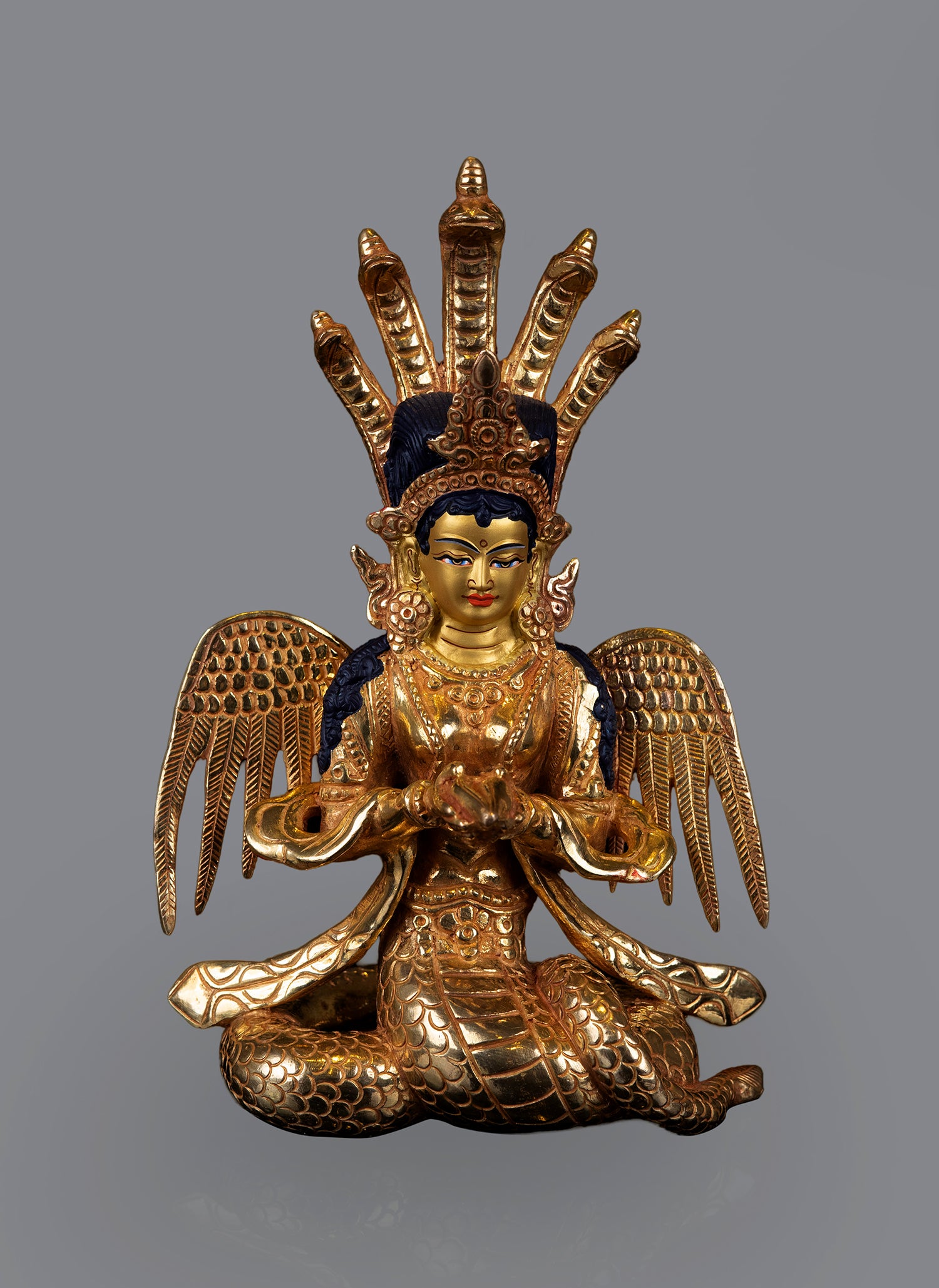 This Beautiful Handmade Gold Face Hand Painting Snake Queen Goddess Naga Kanya Gold Plated Copper Statue made by Artists of Nepal.