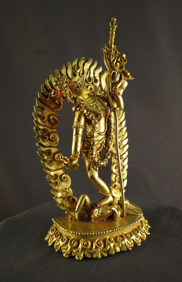 This Beautiful Handmade Tibetan Buddhism Gold Face Hand painting Goddess Vajra Jogini (Akash Yogini) Bijeshwori Whole Body Gold Plated Copper Silver Oxide Statue made by Artists of Nepal.