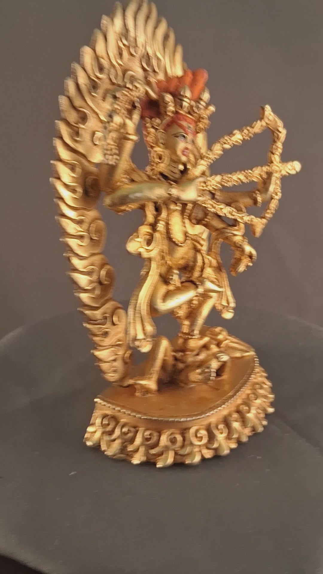 This Beautiful Handmade Buddhism Gold Face Hand Painting Goddess Kurukulla Whole Body Gold Plated Copper Statue made by Artists of Nepal.