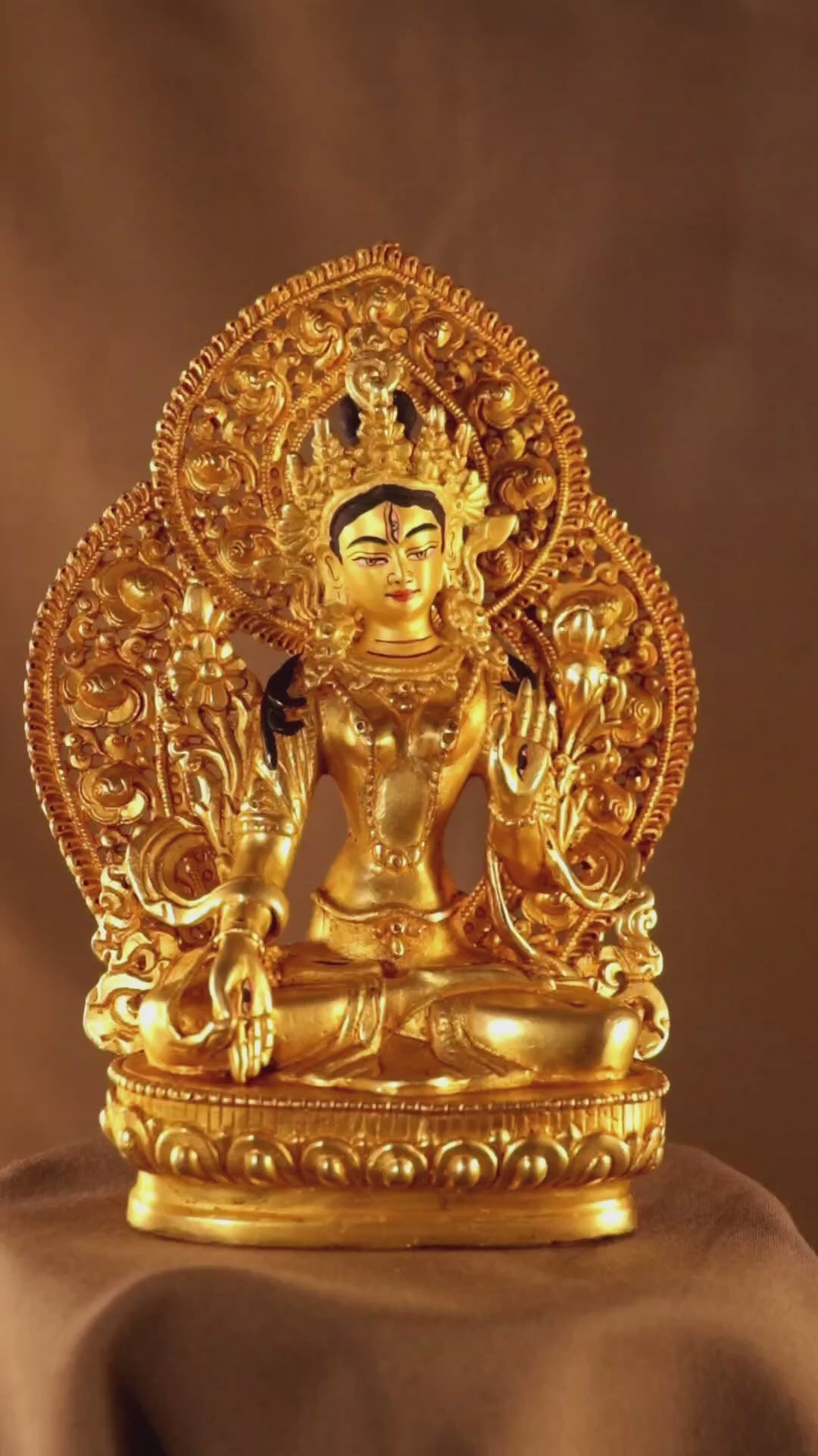 The goddess of universal compassion, Tara represents virtuous and enlightened action. It is said that her compassion for living beings is stronger than a mother's love for her children. She also brings about longevity, protects earthly travel, and guards her followers on their spiritual journey to enlightenment.