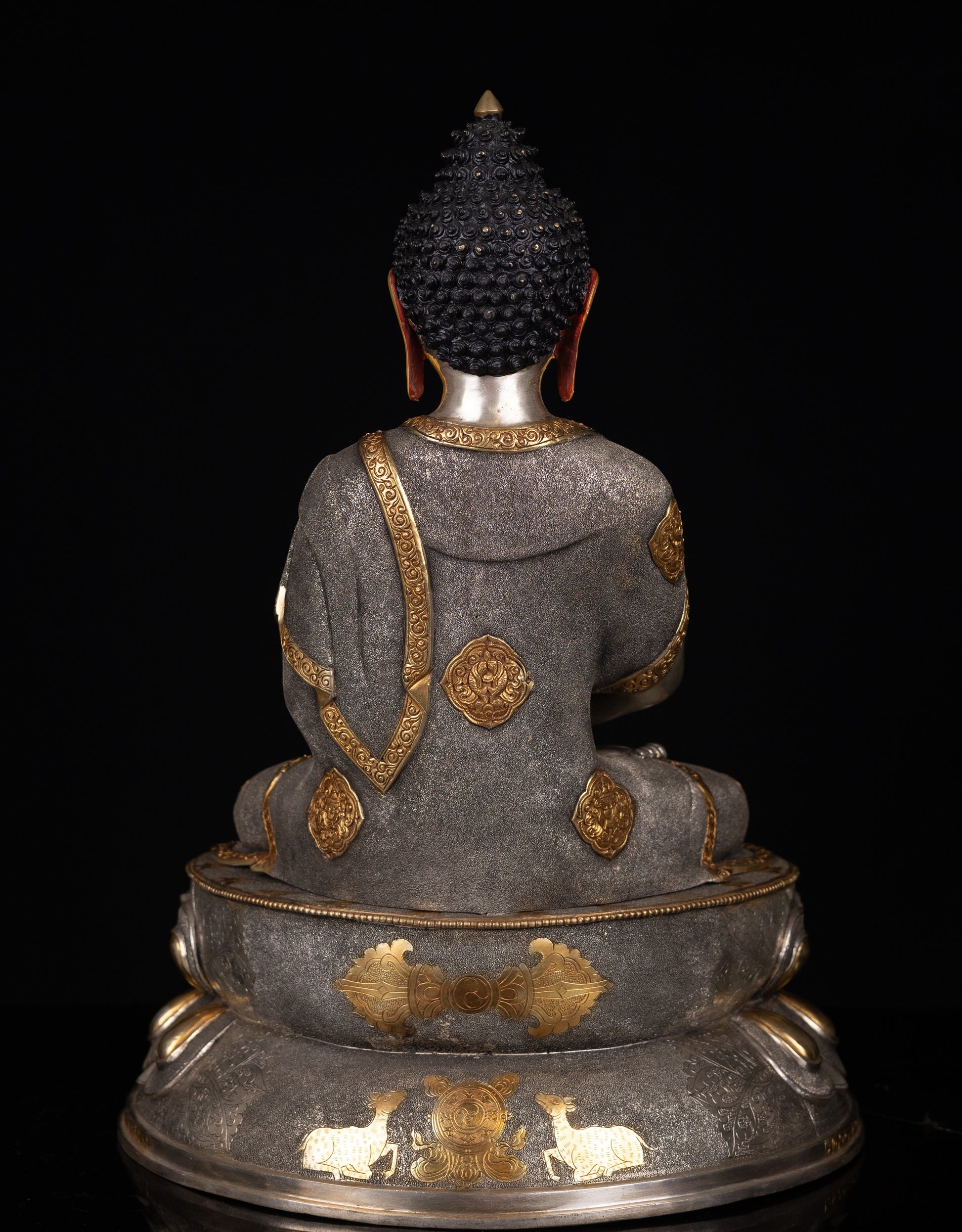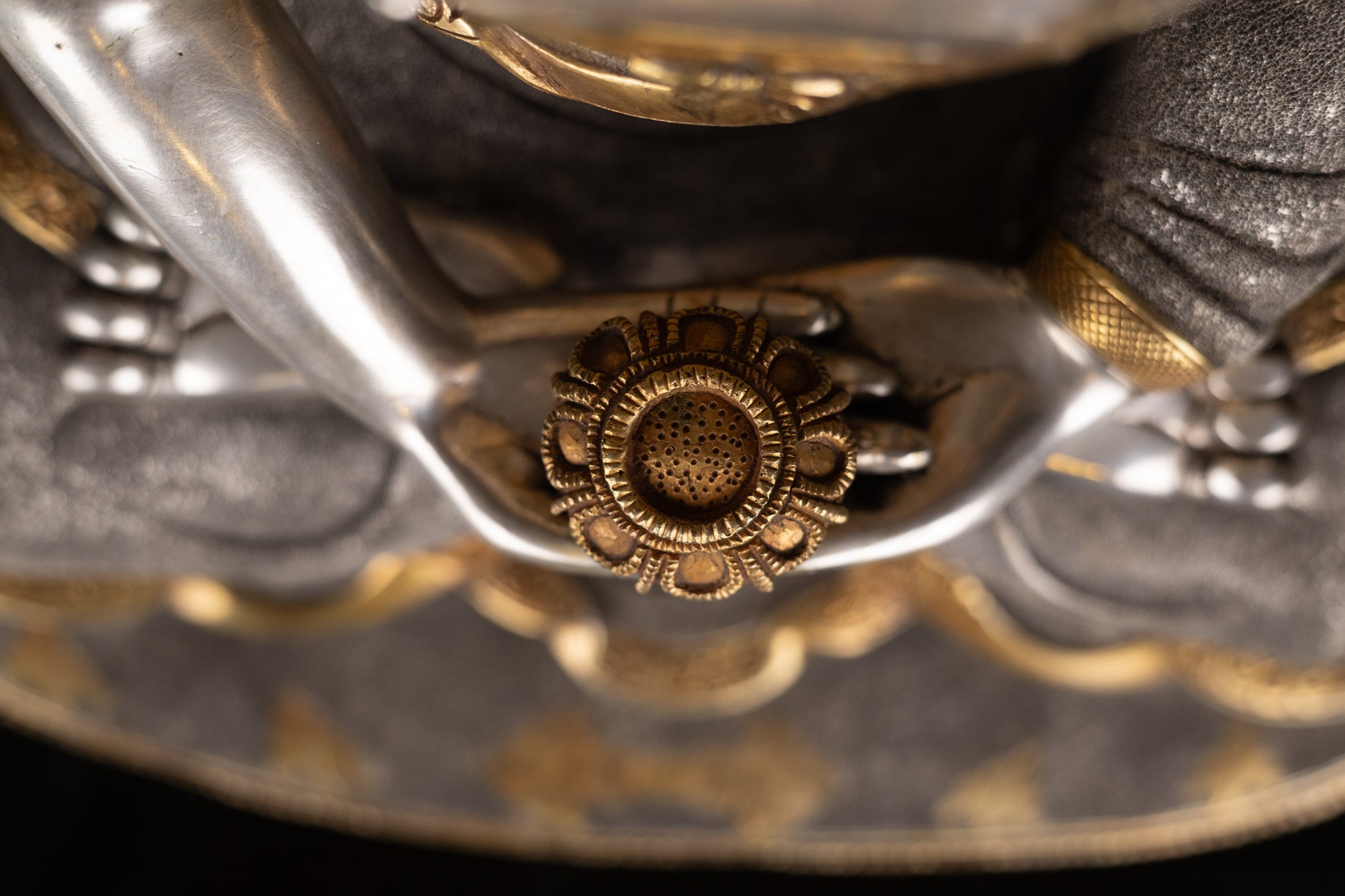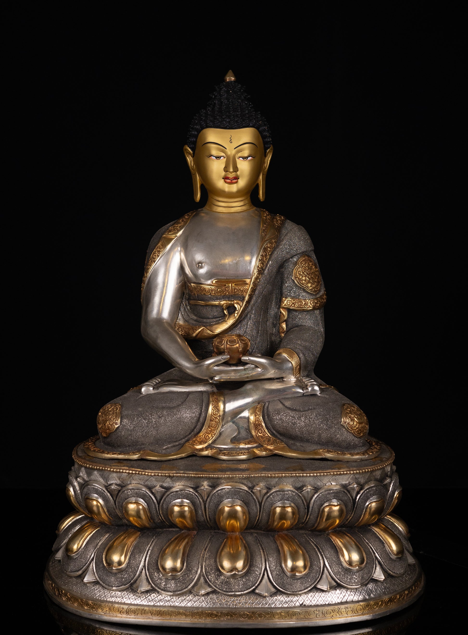 Tibetan Buddhism Gold Face Hand Paint Lord Amitabha Buddha Opakme Silver Gold Plated Copper Hand Craved Statue Sculpture Figure Nepal free