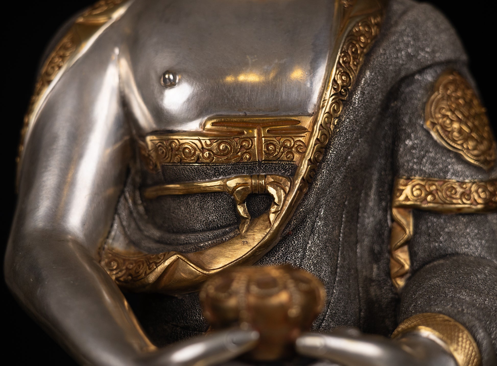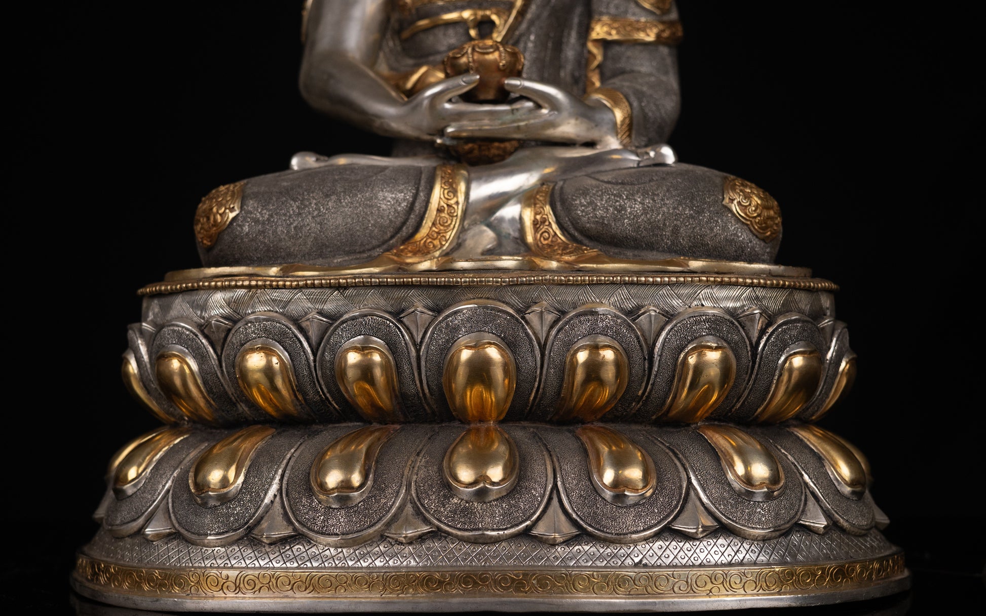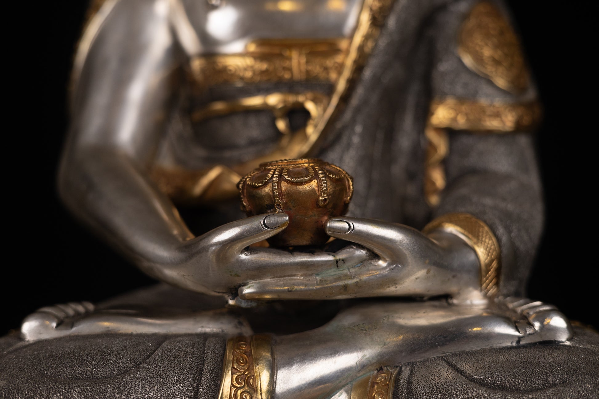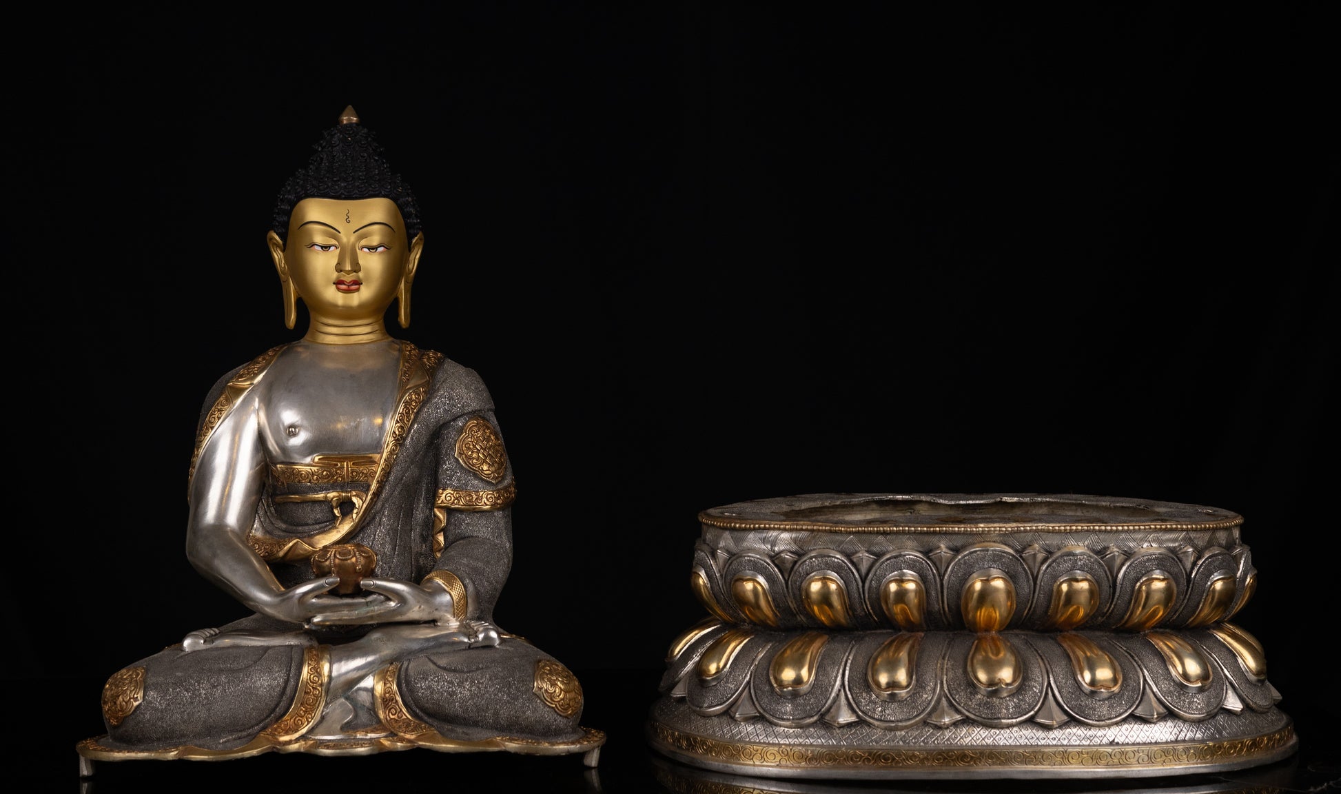 Tibetan Buddhism Gold Face Hand Paint Lord Amitabha Buddha Opakme Silver Gold Plated Copper Hand Craved Statue Sculpture Figure Nepal free