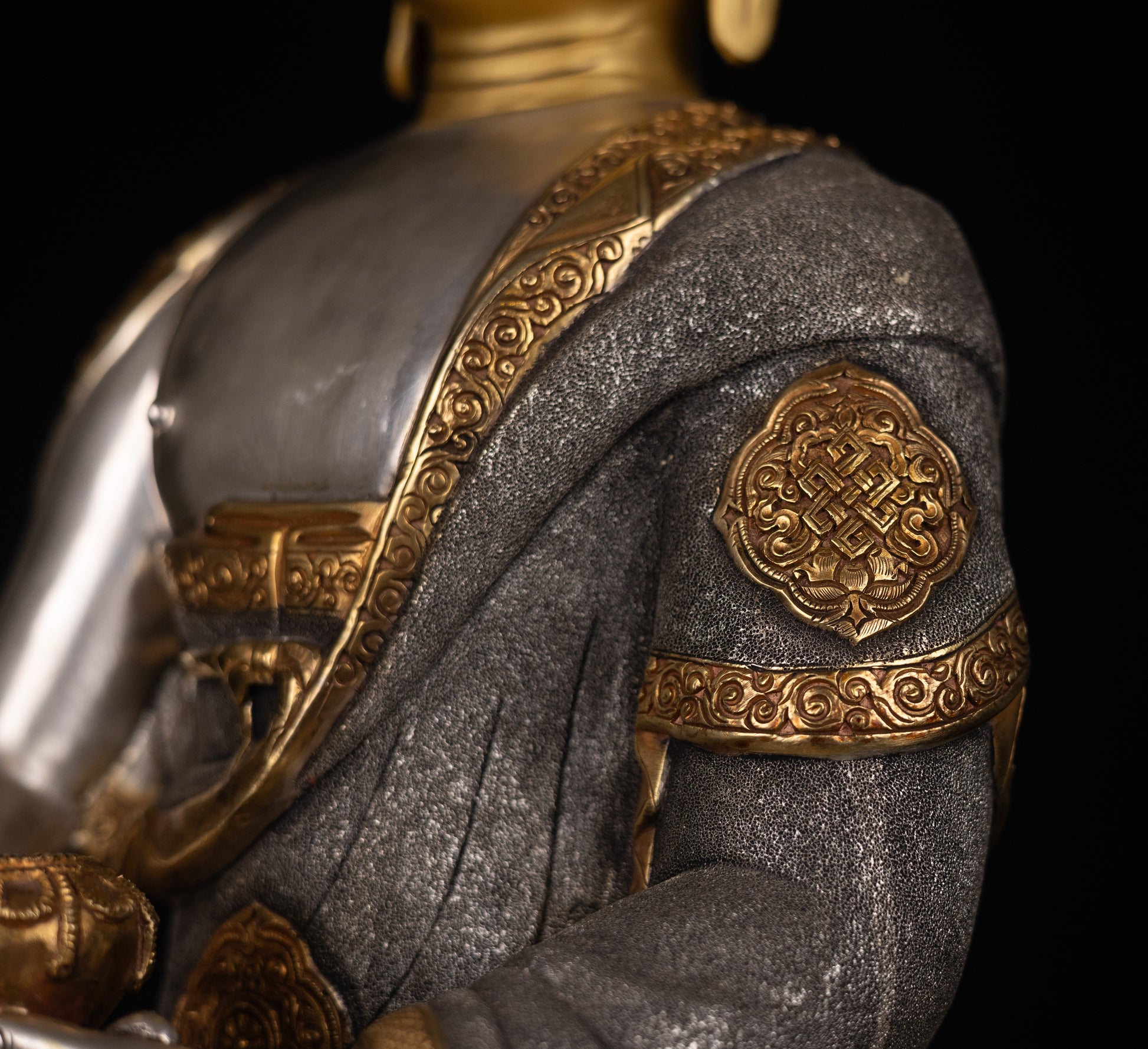 This Beautiful Handmade Hand Craved Gold Face Paint Tibetan Buddhism Lord Amitabha Buddha Silver Gold Plated Copper Statue made by Artists of Nepal.