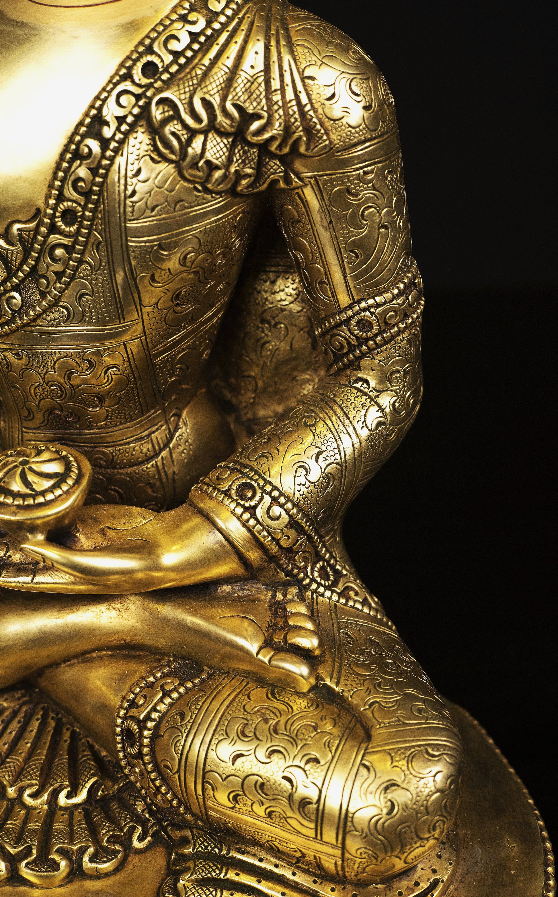 Tibetan Buddhism Lord Shakyamuni Buddha Gold Face Hand Painting Gold Plated Hand Carving Copper Statue Sculpture Figure Nepal free
