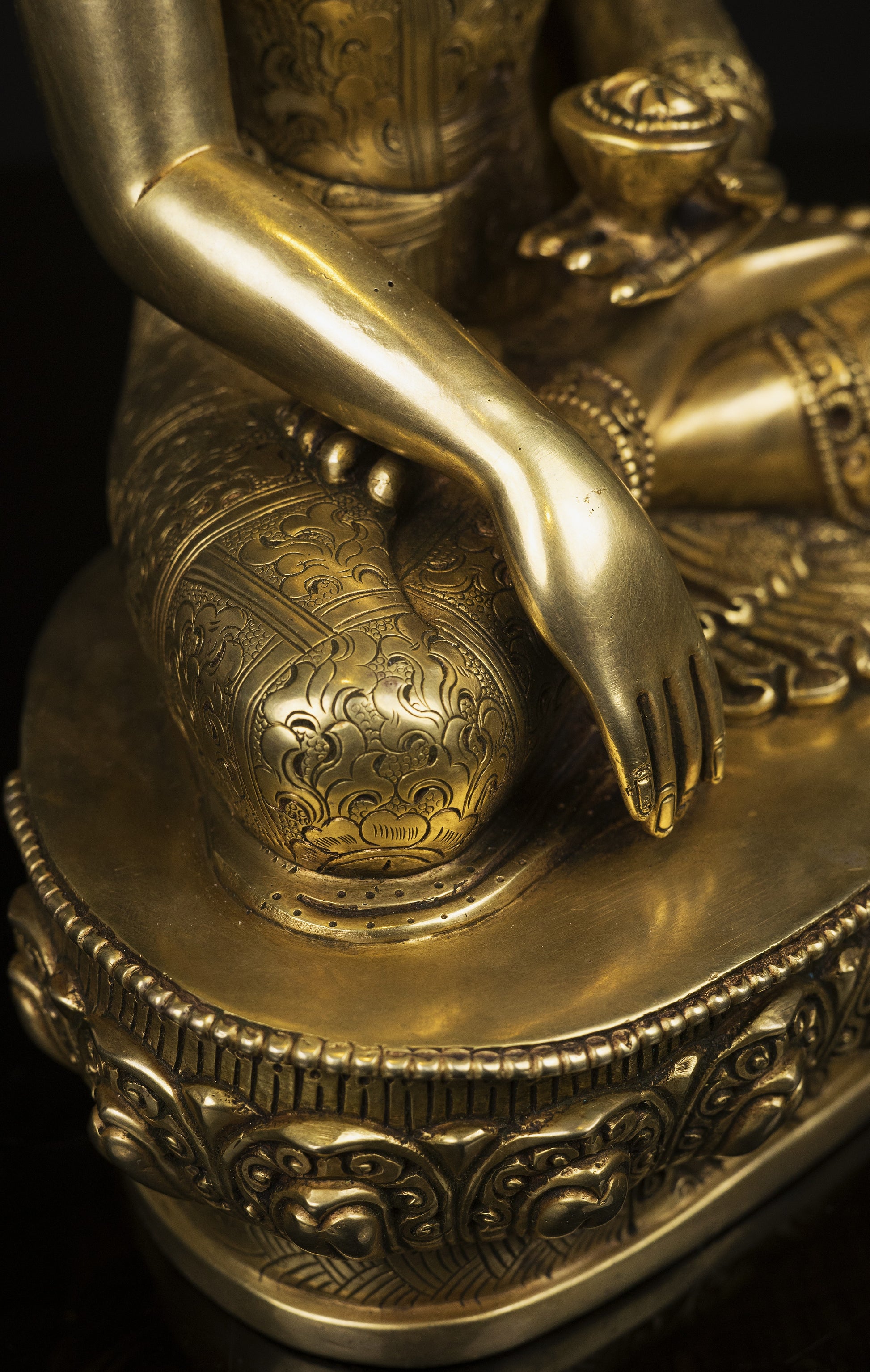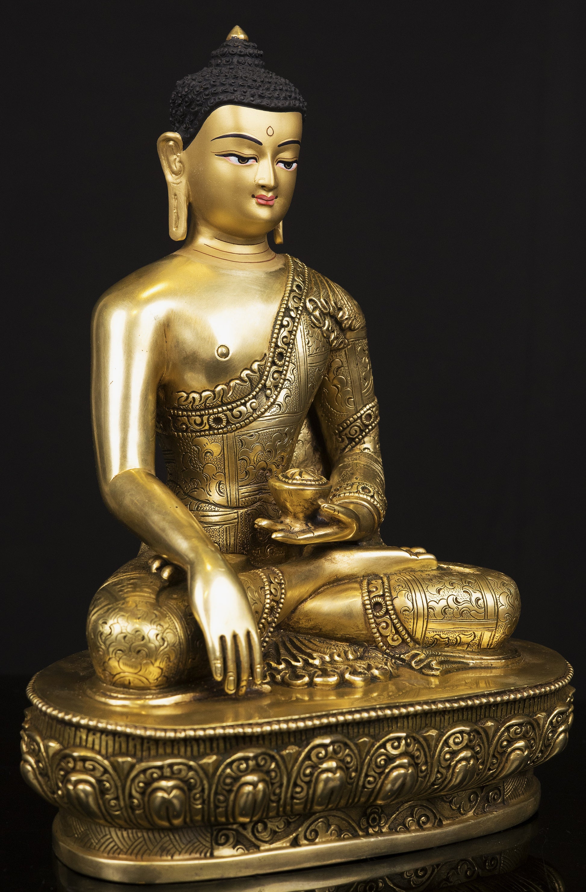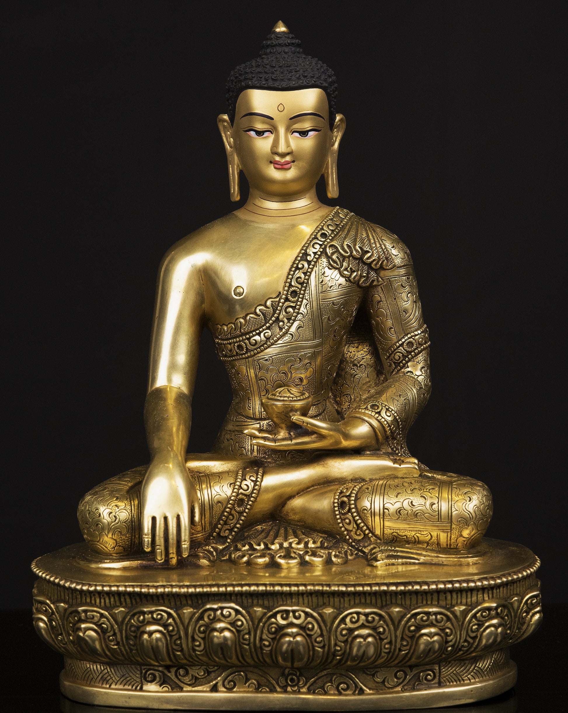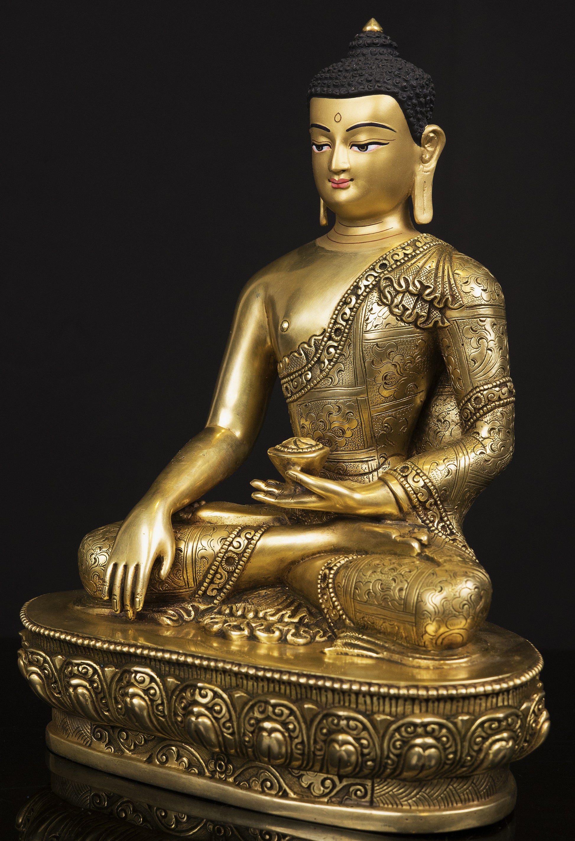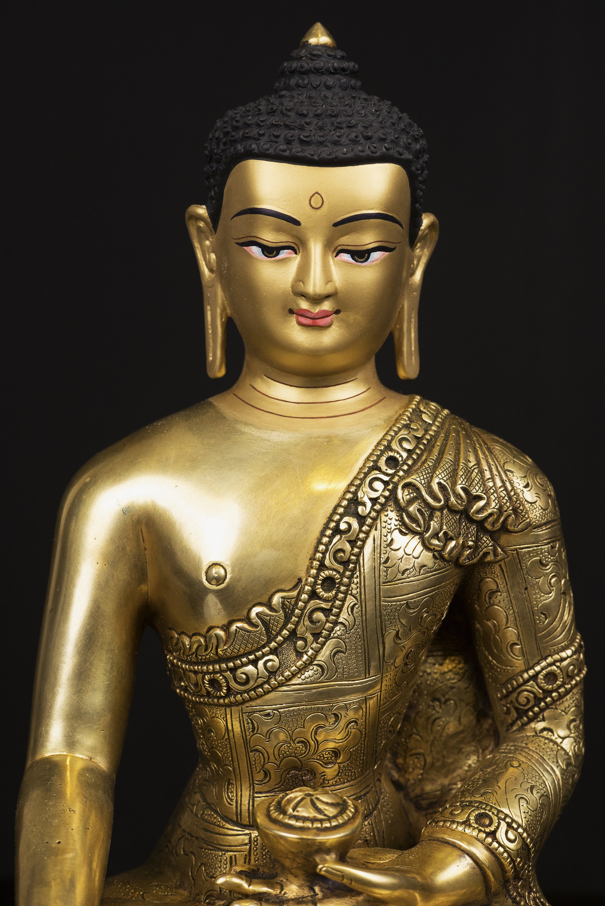 This Beautiful Handmade Gold Hand Painting Face Lord Shakyamuni Buddha Copper Statue made by Artists of Nepal.