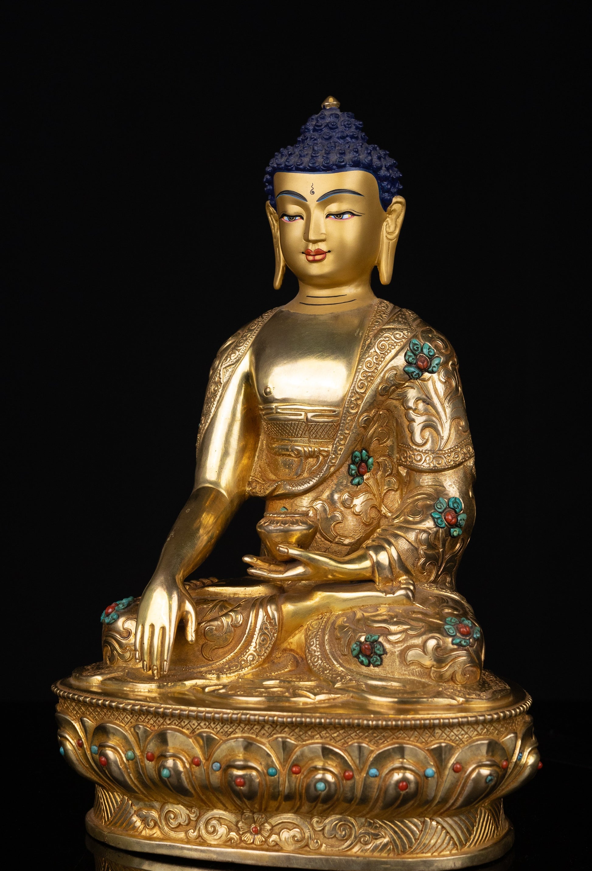 This Beautiful Handmade Gold Hand Painting Face Lord Shakyamuni Buddha Copper Statue made by Artists of Nepal.