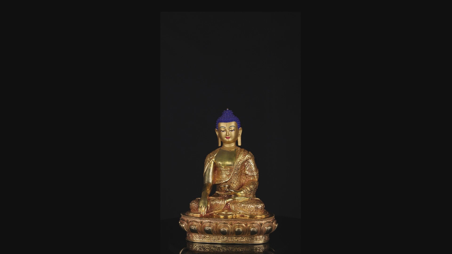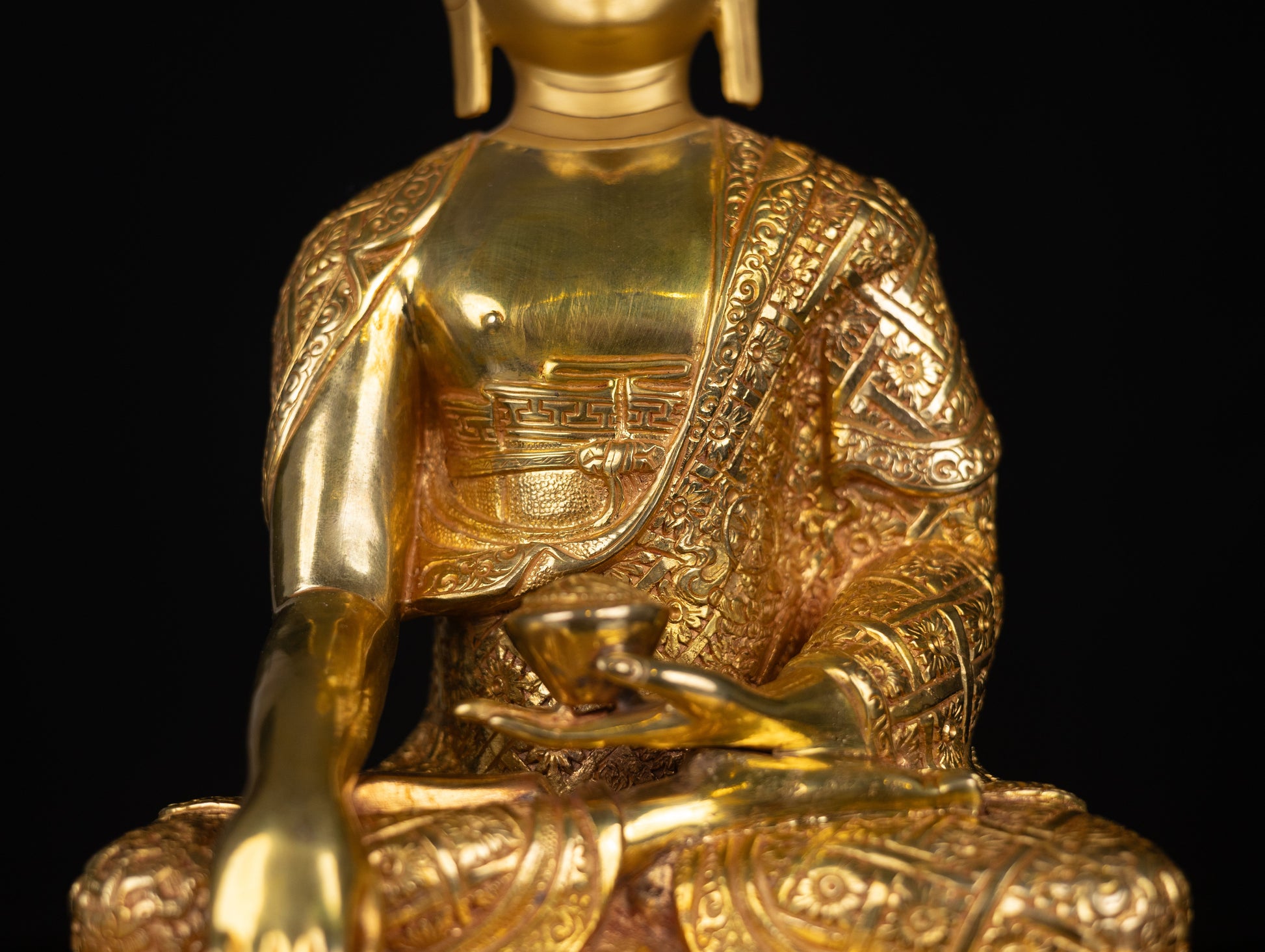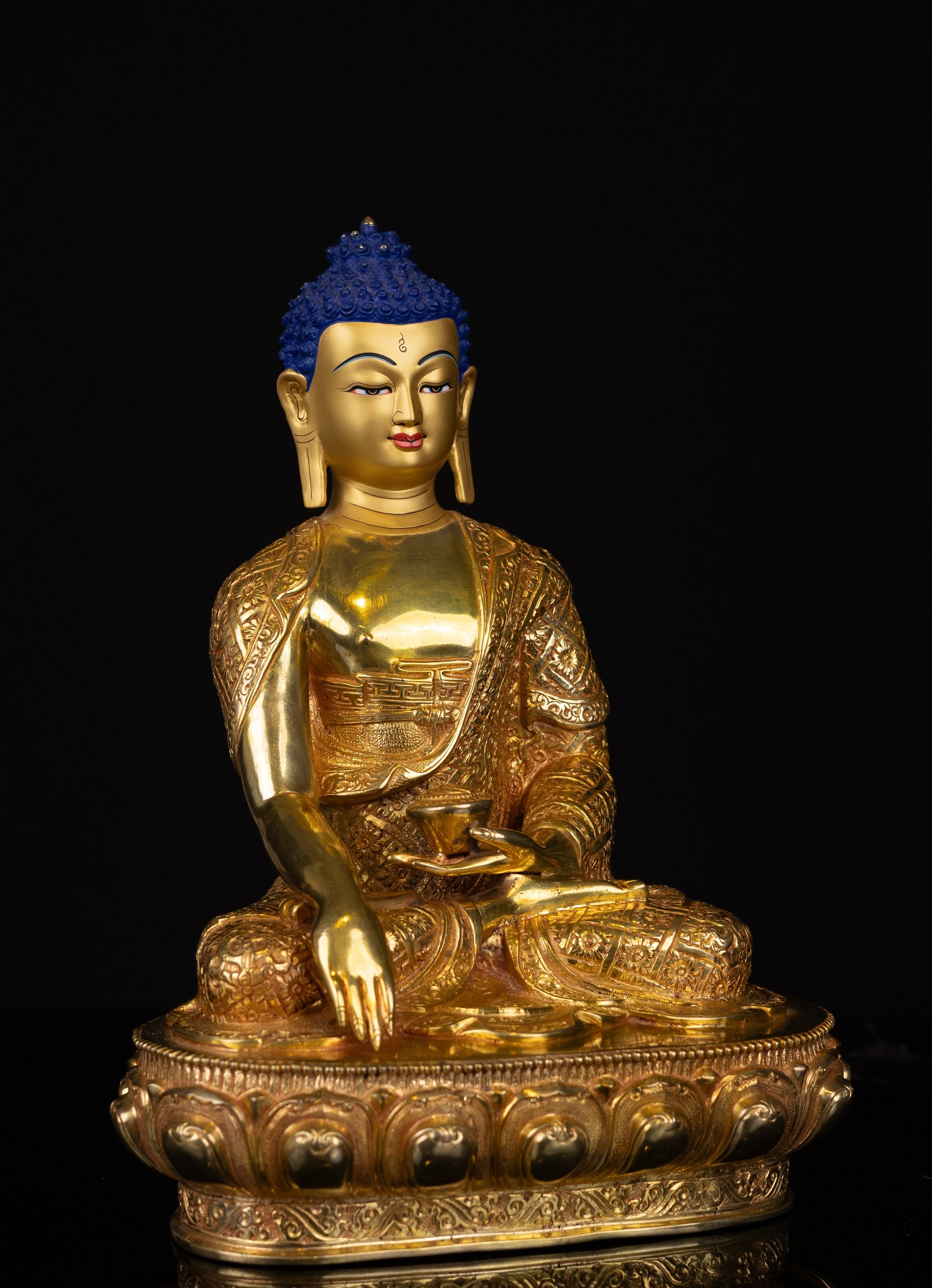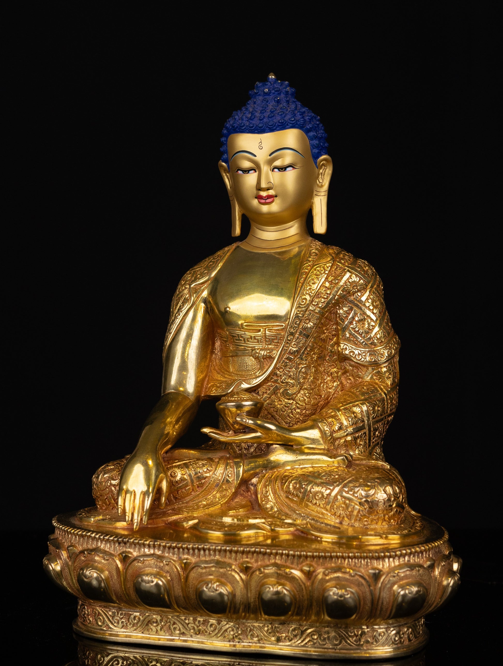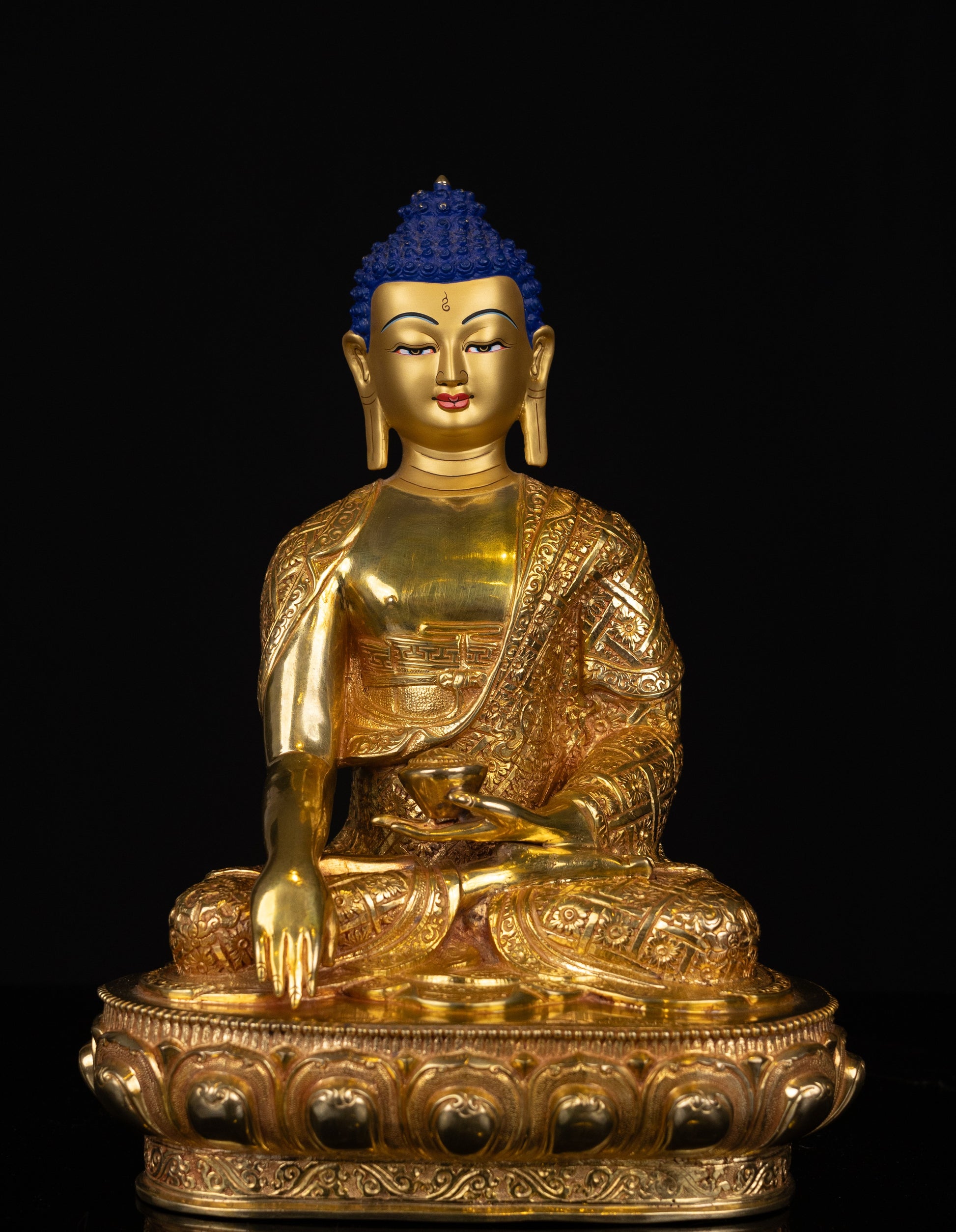 This Beautiful Handmade Gold Hand Painting Face Lord Shakyamuni Buddha Copper Statue made by Artists of Nepal.
