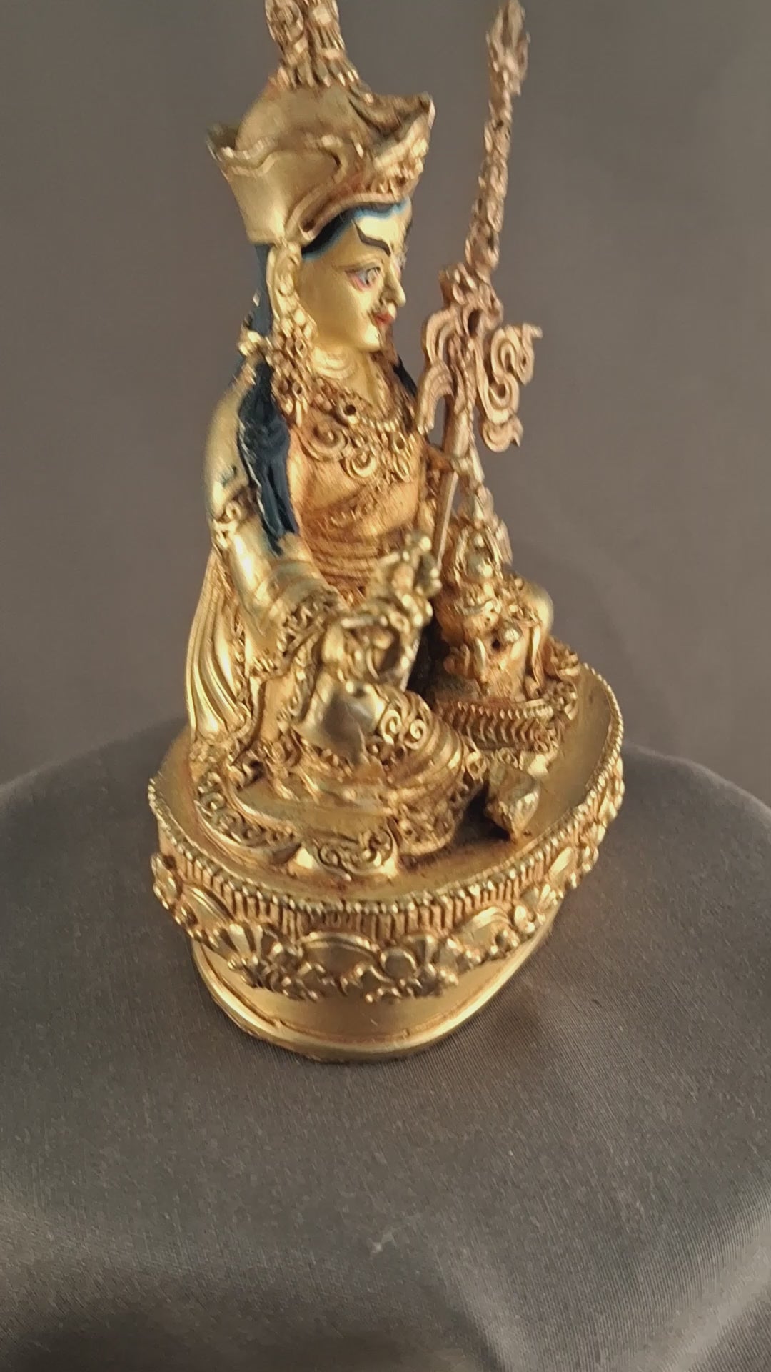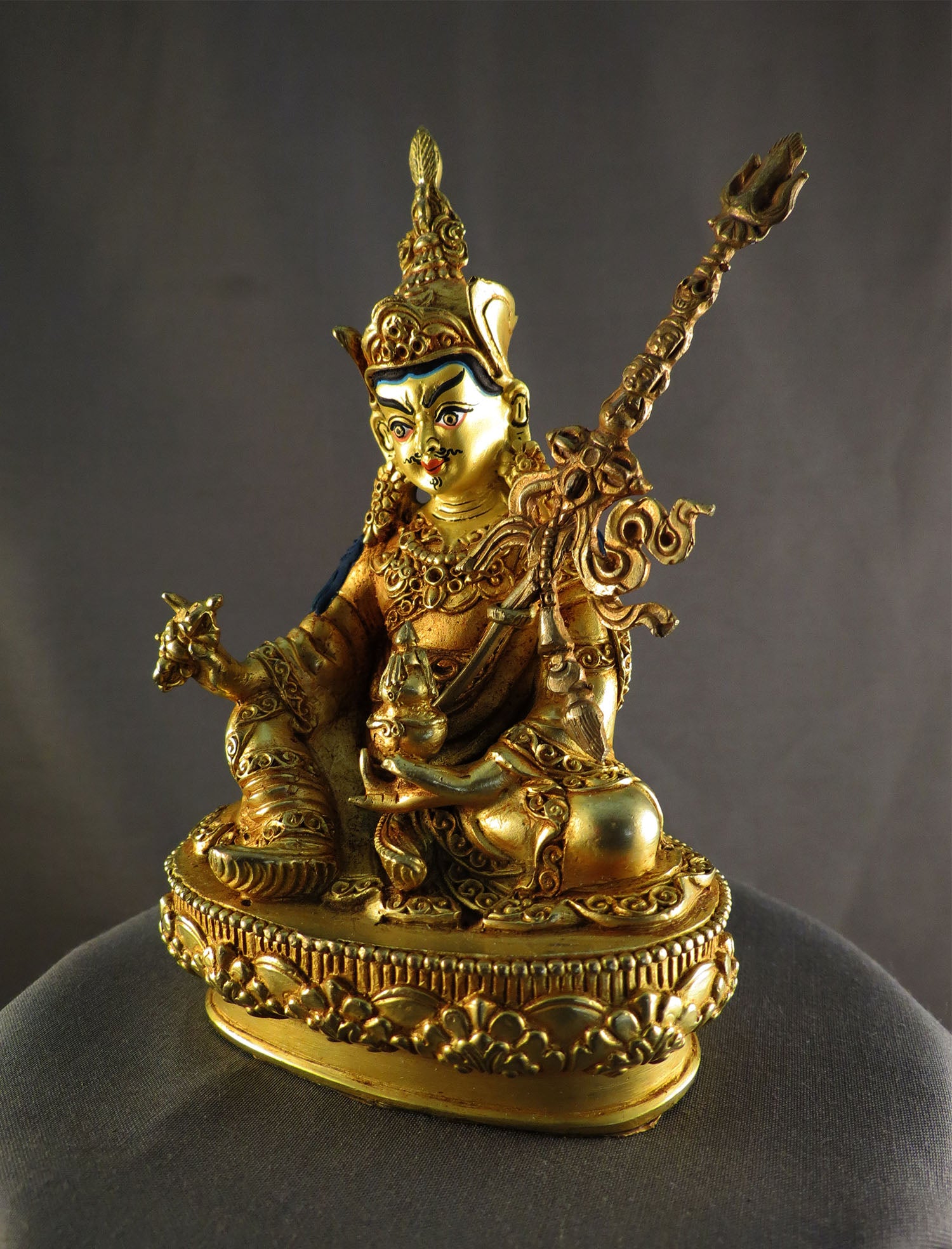 This Beautiful Finest Handmade Tibetan Buddhism Guru Rinpoche Gold Painting Face (Padmasambhava) Copper Gold Plated Statue Handmade Statue in Nepal.