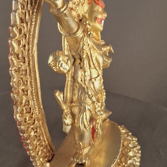 This Beautiful Handmade Tibetan Buddhism Gold Face Hand Painting Wrathful Deity Ekajata Ekajati Copper Gold Plated Statue made in Nepal.