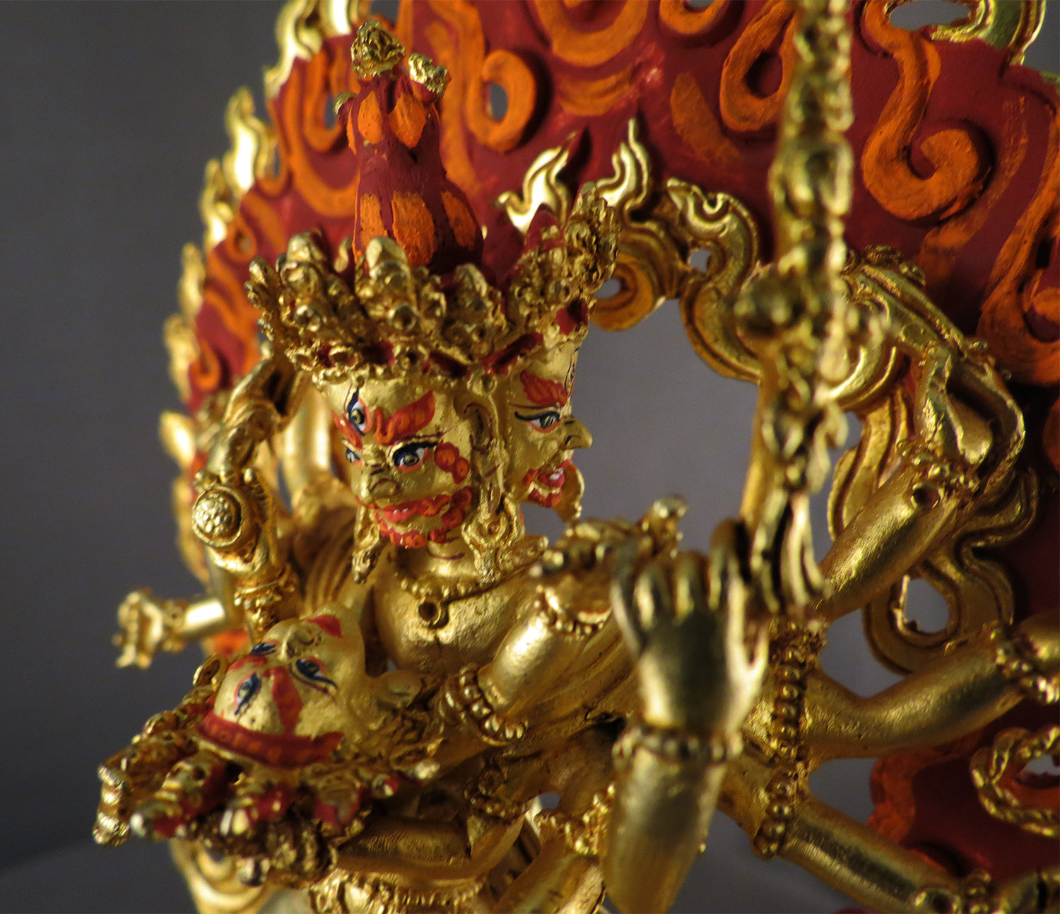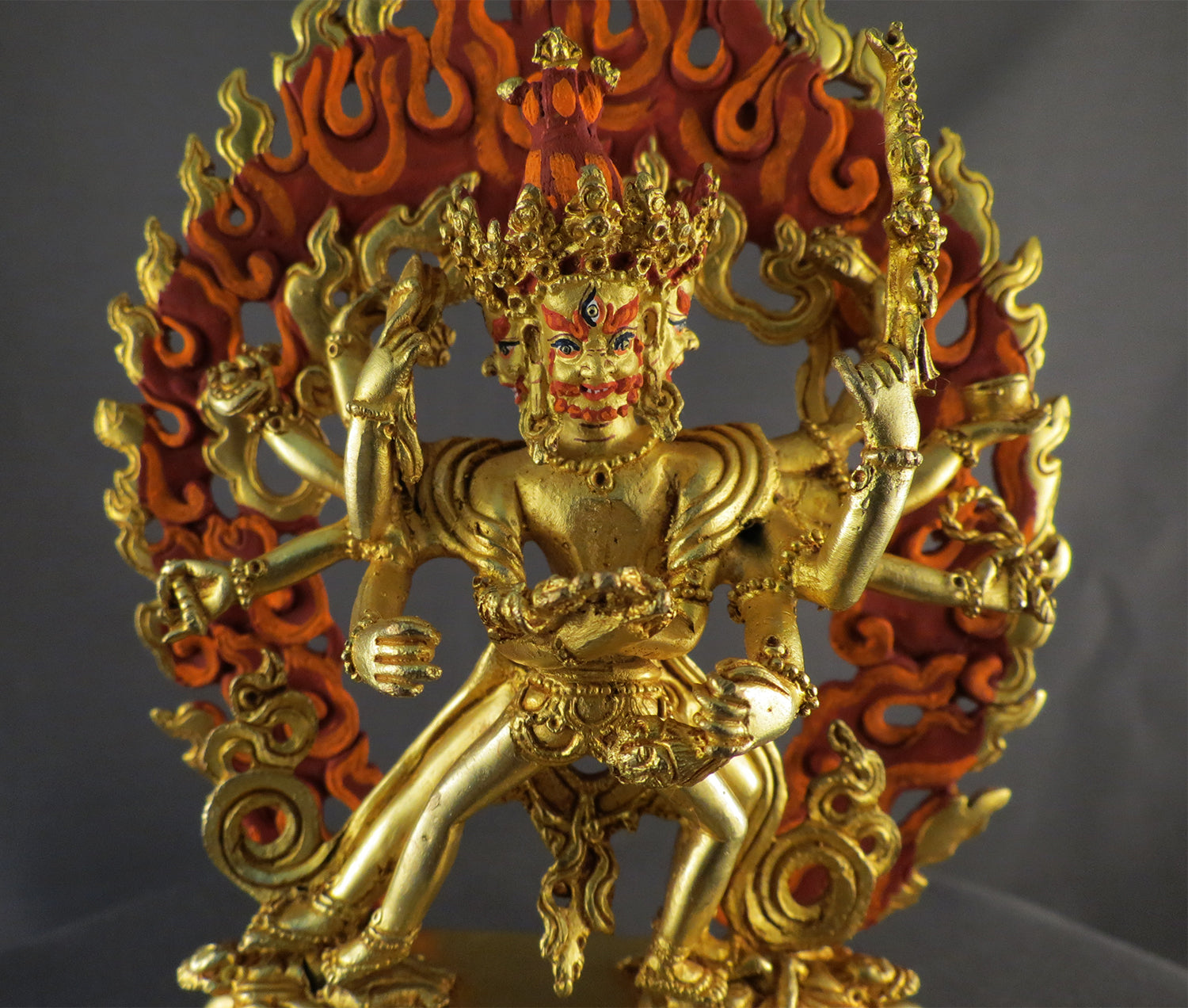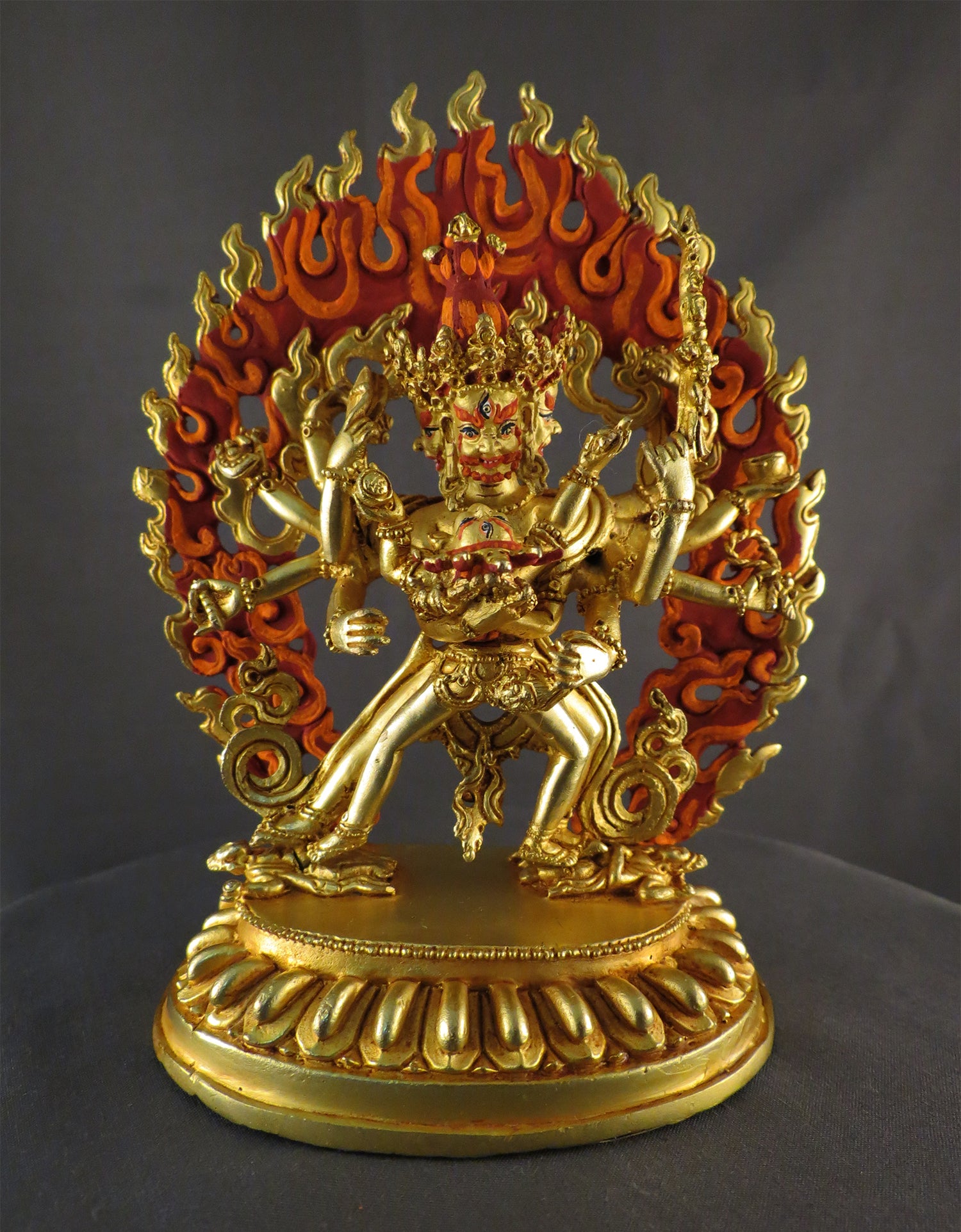 This Beautiful Handmade Hand Craved Hand Painting Gold Face Tibetan Buddhism Lord Cakrasamvara with Consort (Heruka) Copper Full Body Gold Plated Statue made in Nepal.