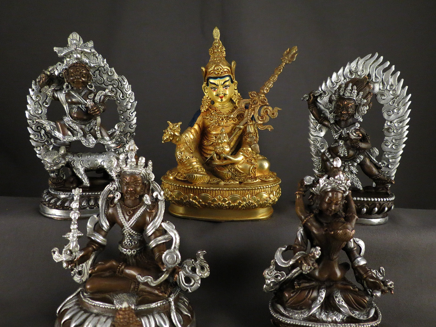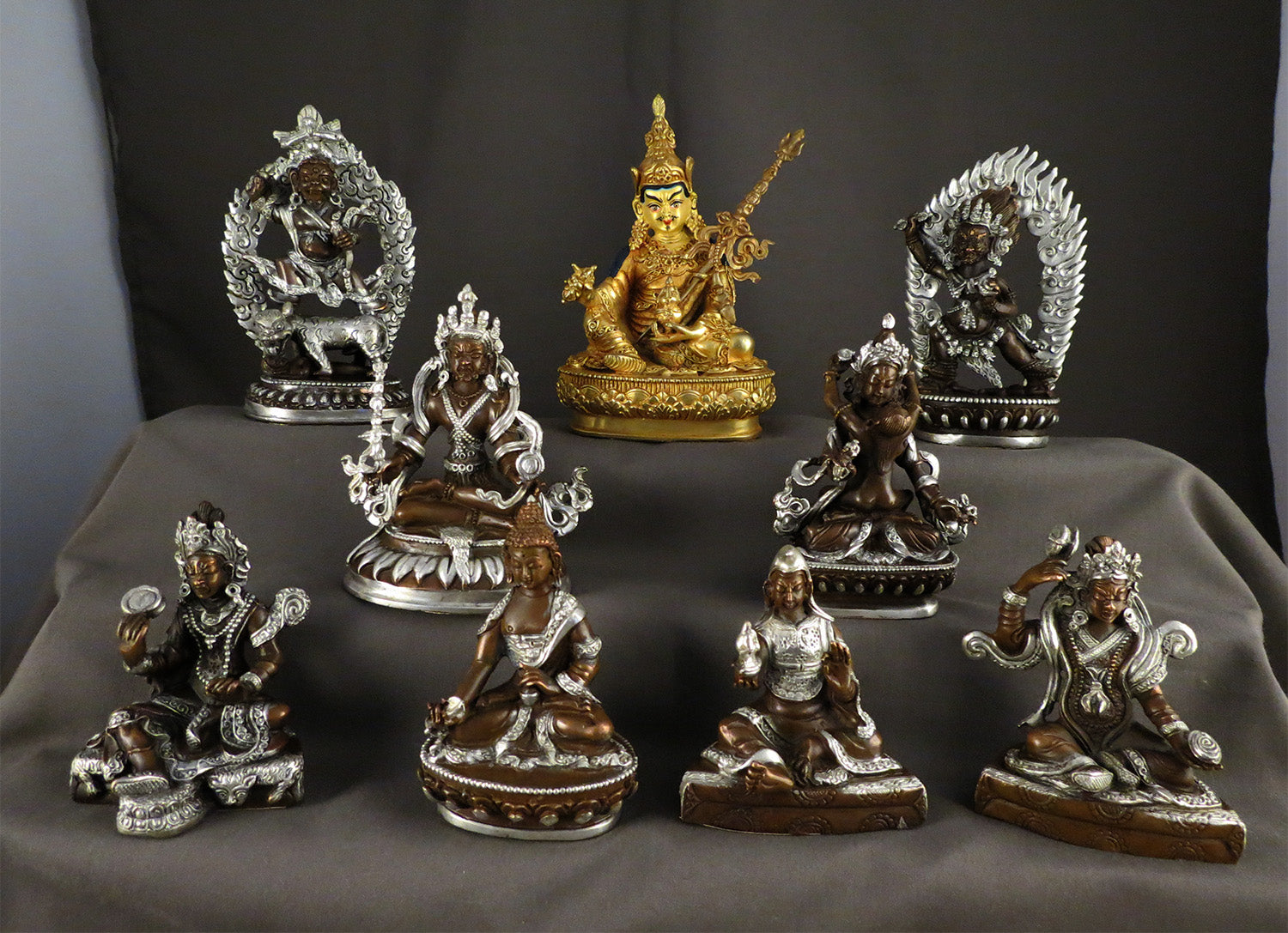 Tibetan Buddhism Guru Rinpoche Padmasambhava Gold Plated Statue with Eight Manifestations of Guru Silver Oxide Copper Statue Sculpture free