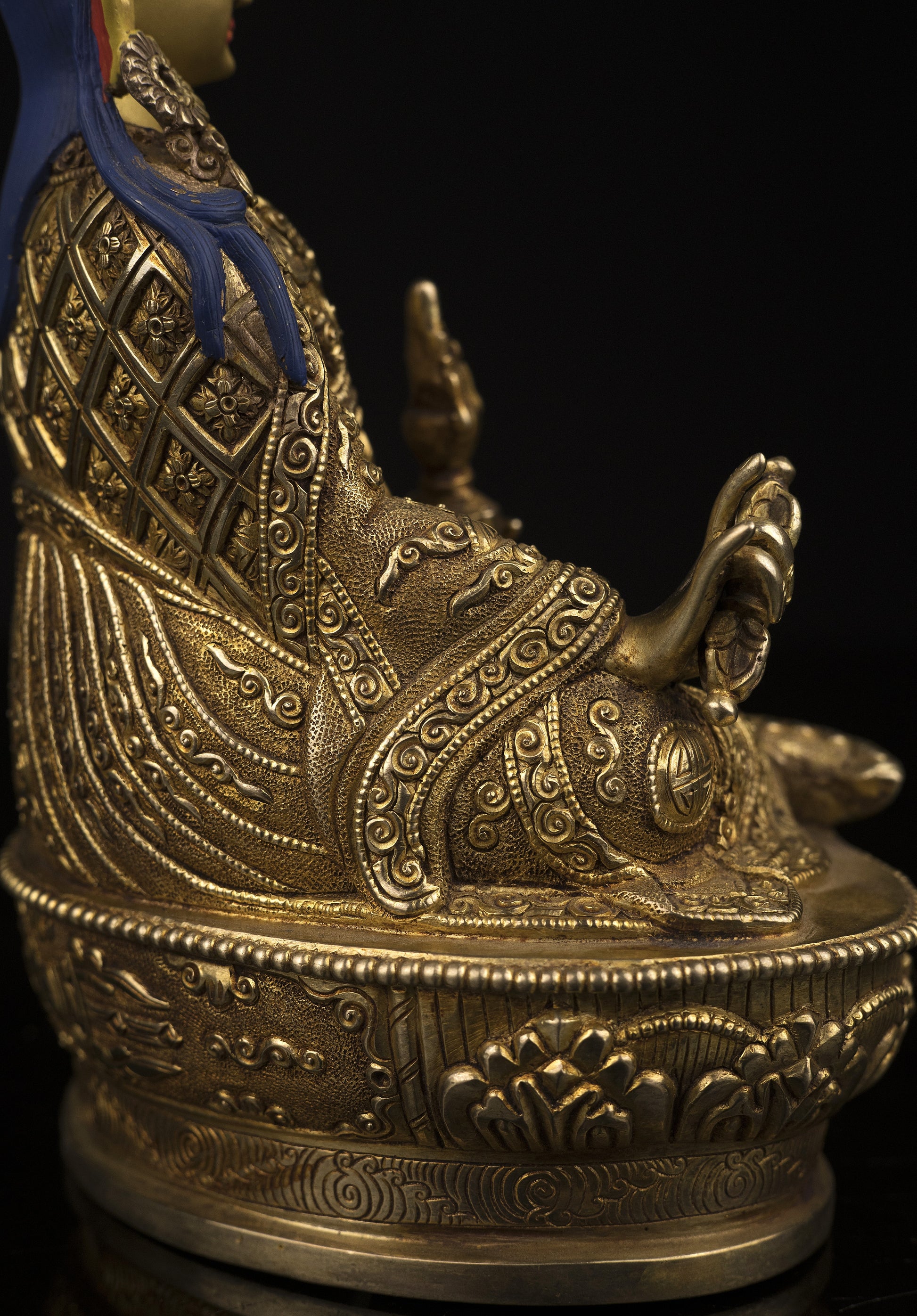 Tibetan Buddhism Guru Rinpoche Padmasambhava Gold Plated Statue Sculpture Figure Nepal free
