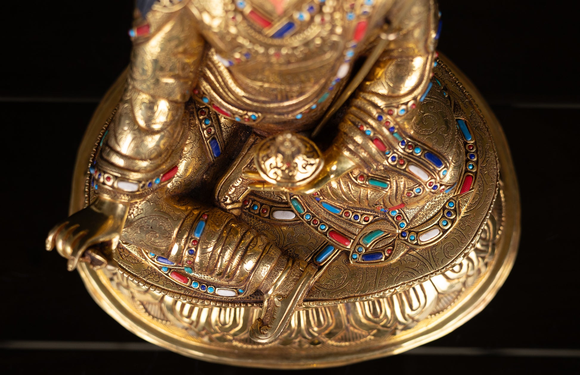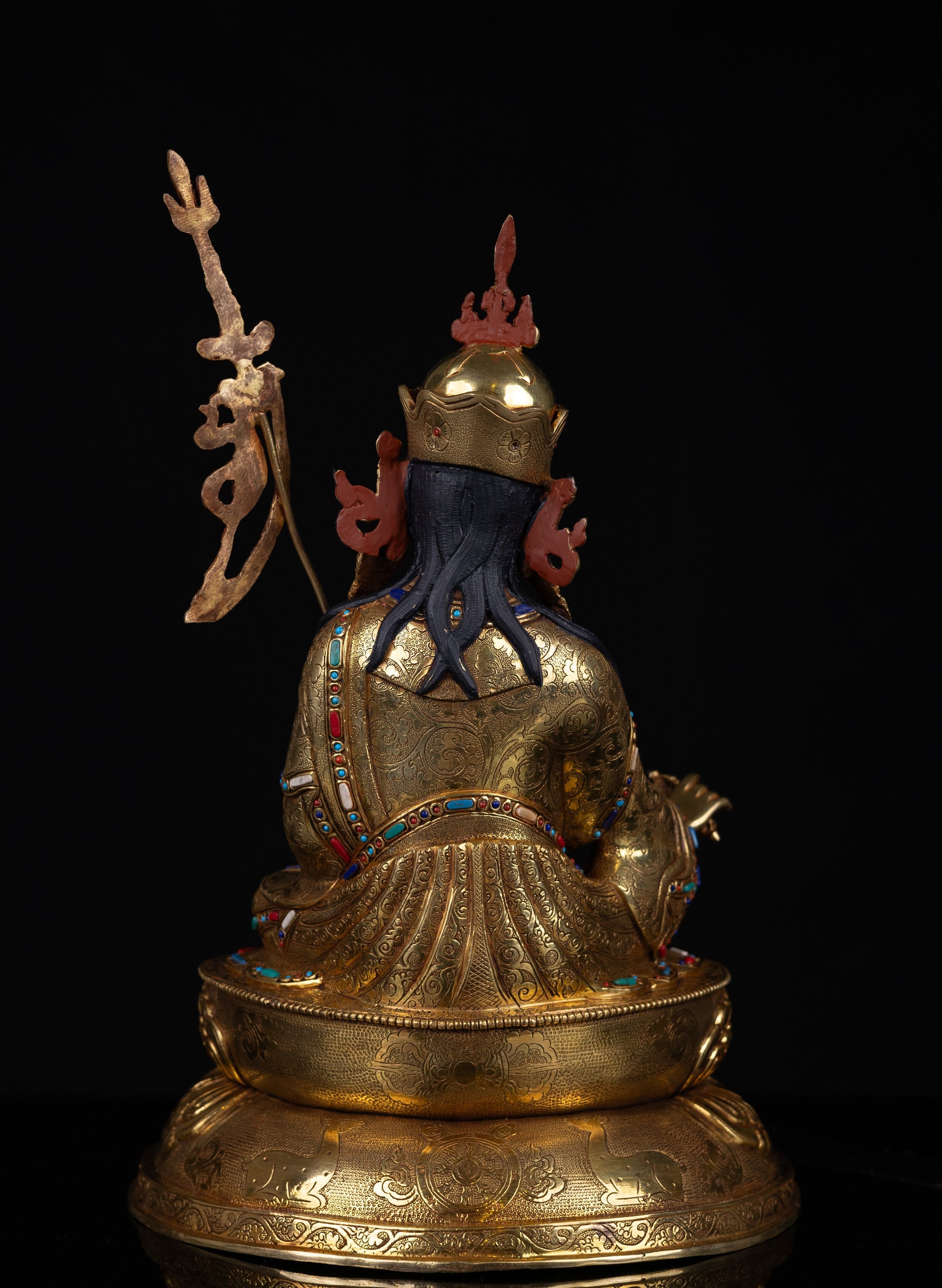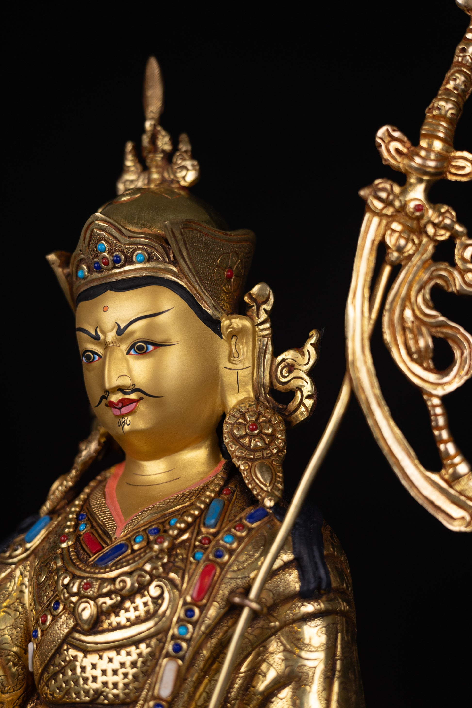 This Beautiful Handmade Tibetan Buddhism Guru Rinpoche Gold Painting Face (Padmasambhava) Turquoise Stone Huge Copper Gold Plated Fine Statue Handmade Statue in Nepal.