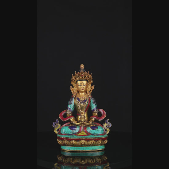 This Beautiful Handmade Hand craved Buddhism Lord Aparamita (Amitayus) Fine Hand Painting Copper Statue made by Artists of Nepal.