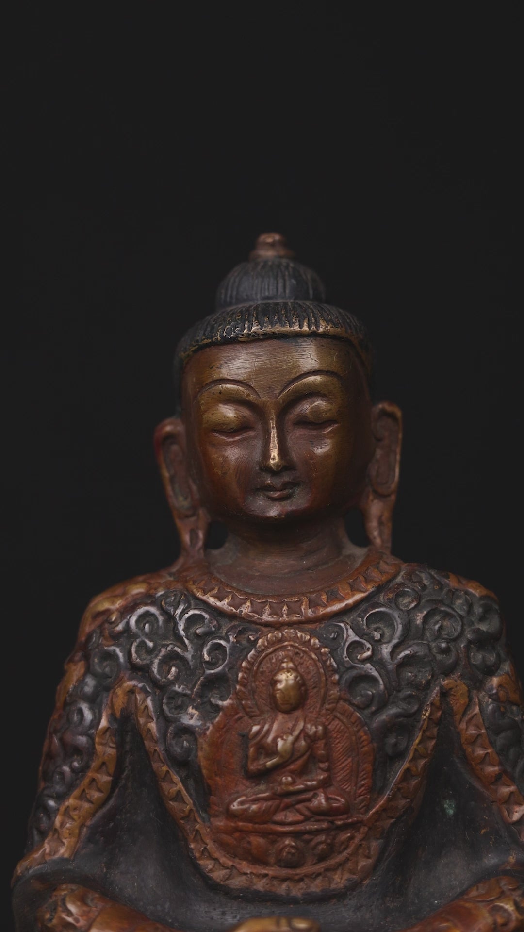 This Beautiful Antique, Vintage looks Handmade Hand Craved Tibetan Buddhism Lord Amitabha Buddha Copper Oxide Statue Figure made in Nepal.