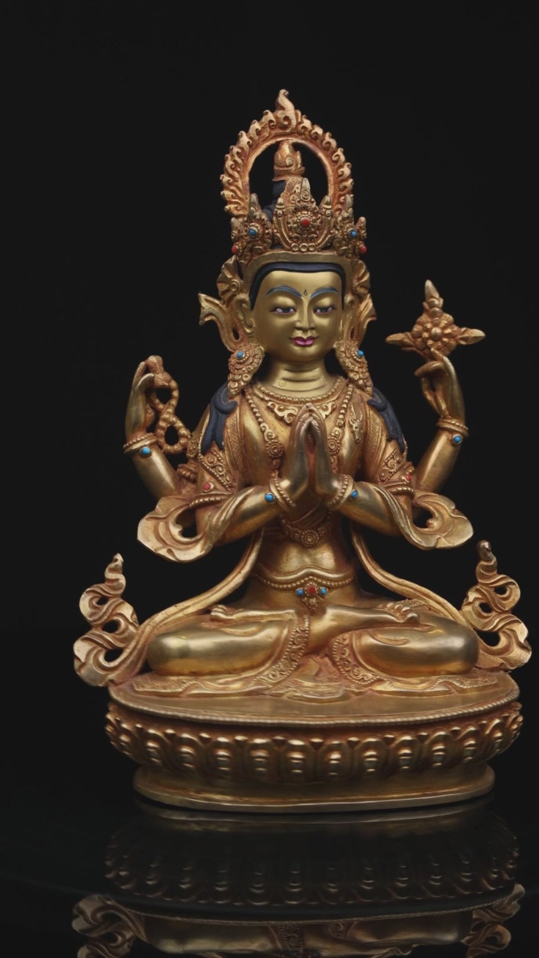This Beautiful Handmade Hand craved 24K Gold Face Hand Painting Tibetan Buddhism Lord Chenrezig Gold Plated Pure Copper Statue made by Artists of Nepal.