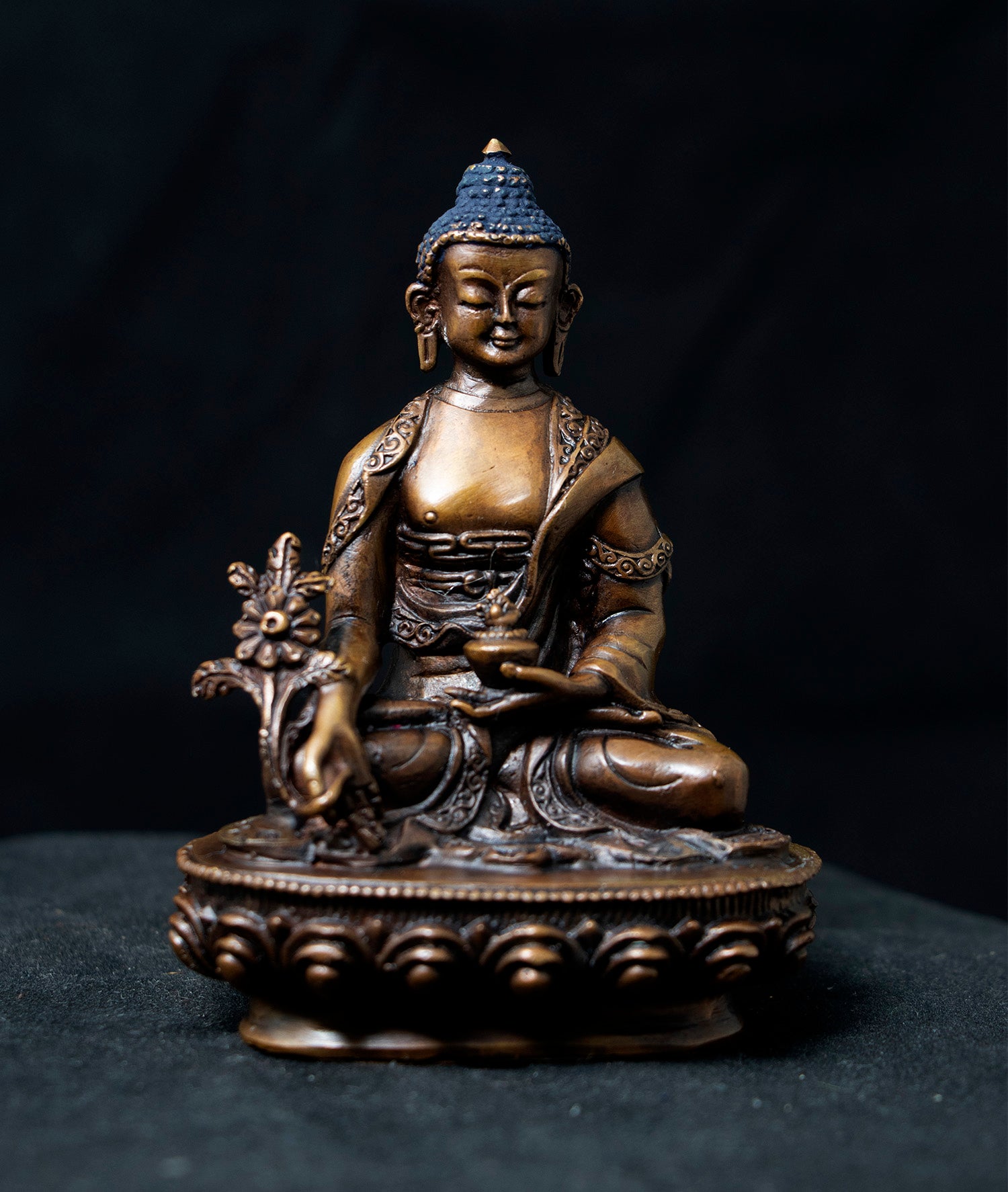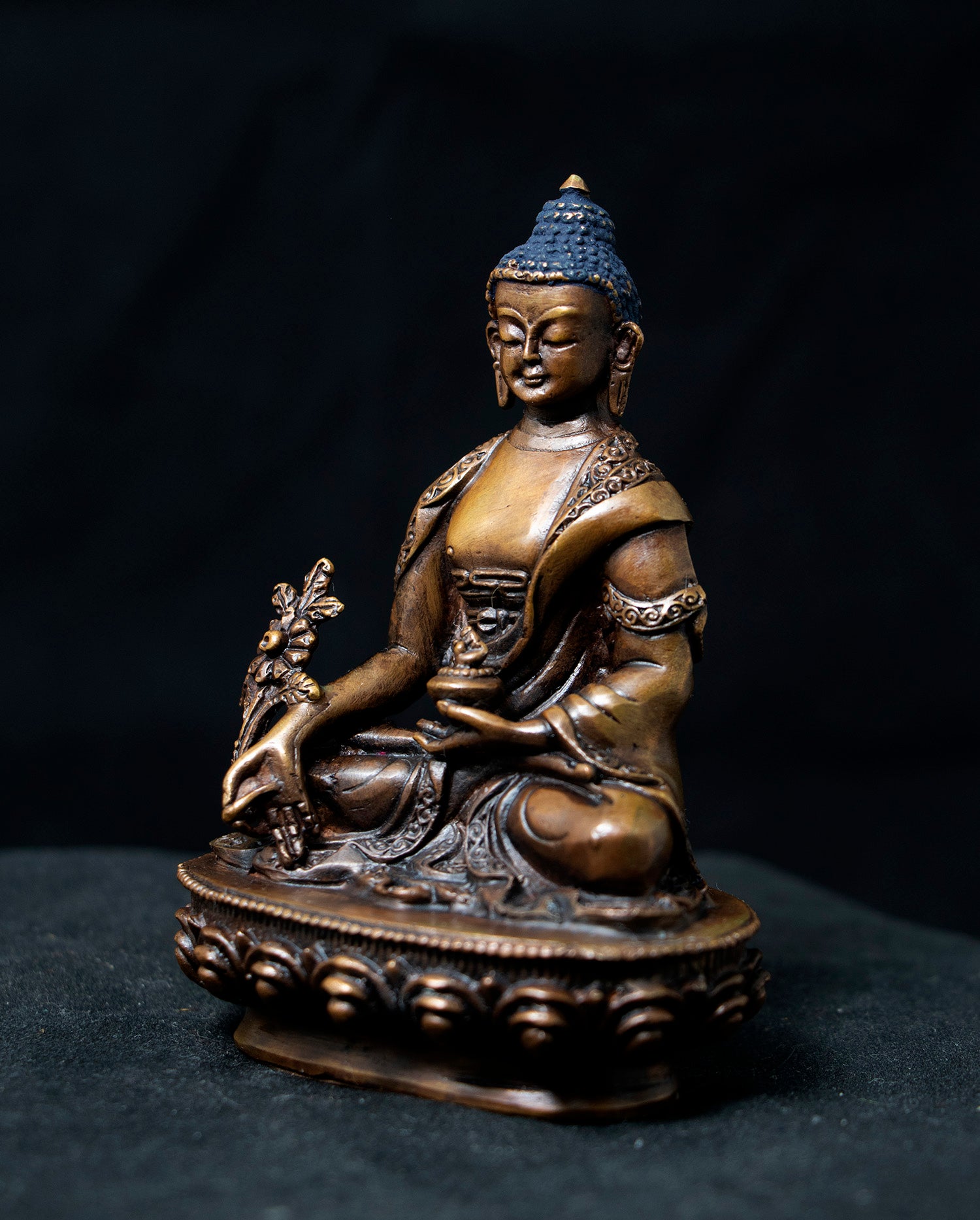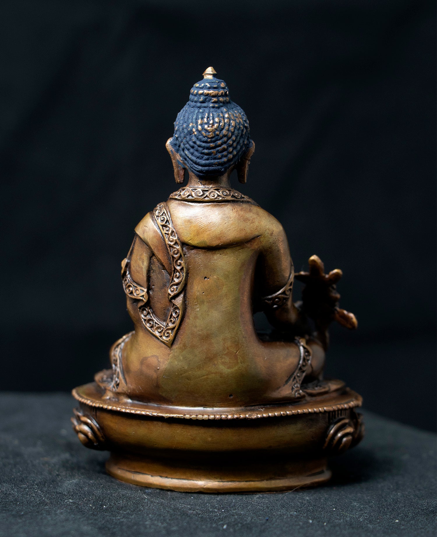 This Beautiful Handmade Hand Craved Tibetan Buddhism Lord Medicine Buddha Oxide Statue made by Artists of Nepal.