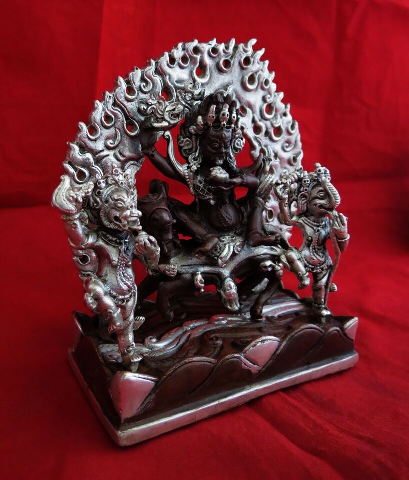 Tibetan Buddhism Lord Palden Lhamo (Glorious Goddess) Silver Oxide Copper Statue Figure Nepal