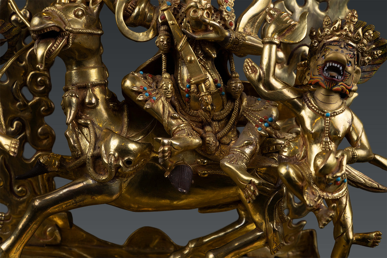 This Beautiful Handmade Hand craved Tibetan Buddhism Goddess Palden Lhamo or Shri Devi in sanskrit Pure Copper Statue made by Artists of Nepal.