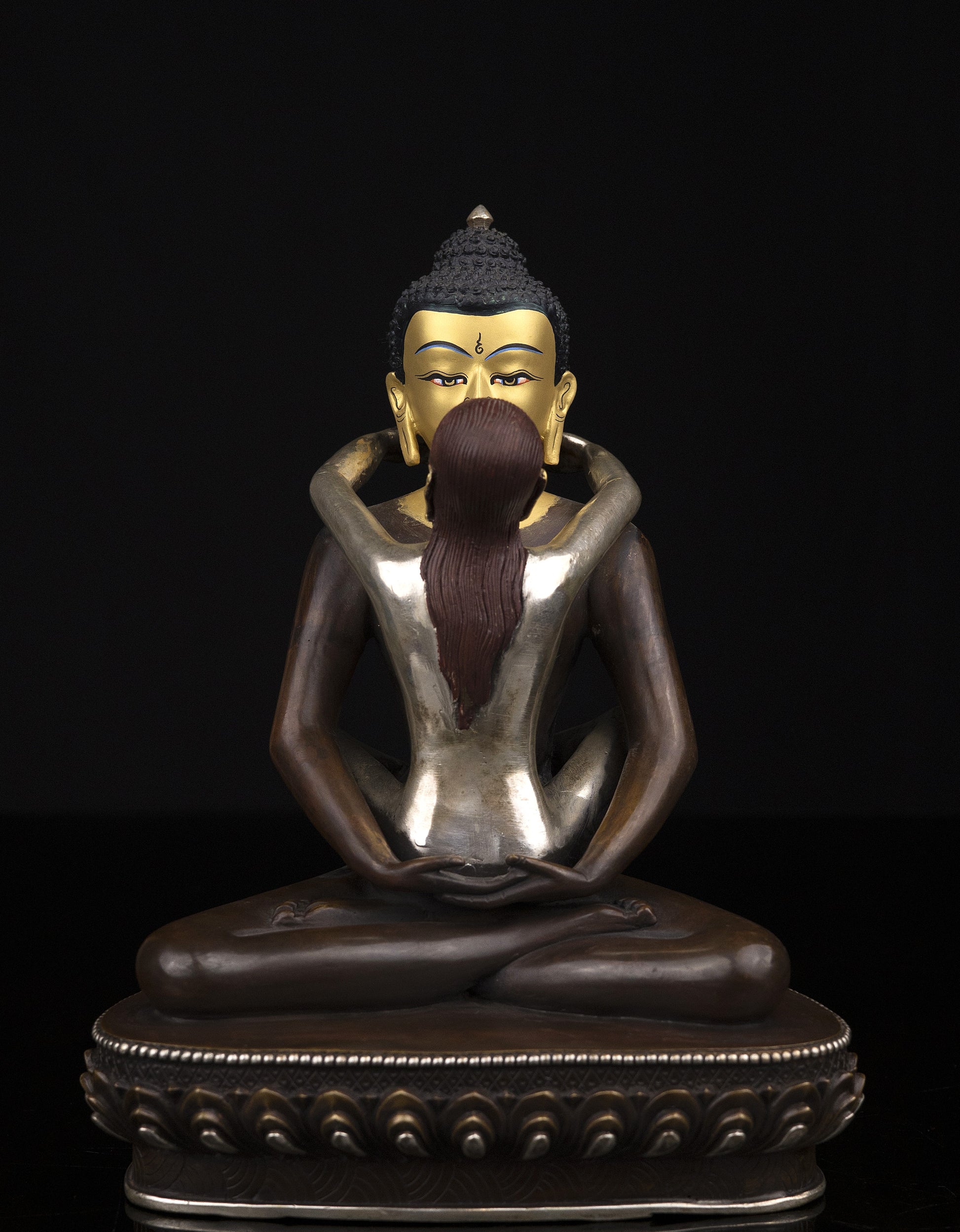 Tibetan Buddhism Gold Face Hand Painting Lord Samanta Bhadra Buddha Shakti Oxide Copper Statue Sculpture Figure Nepal free