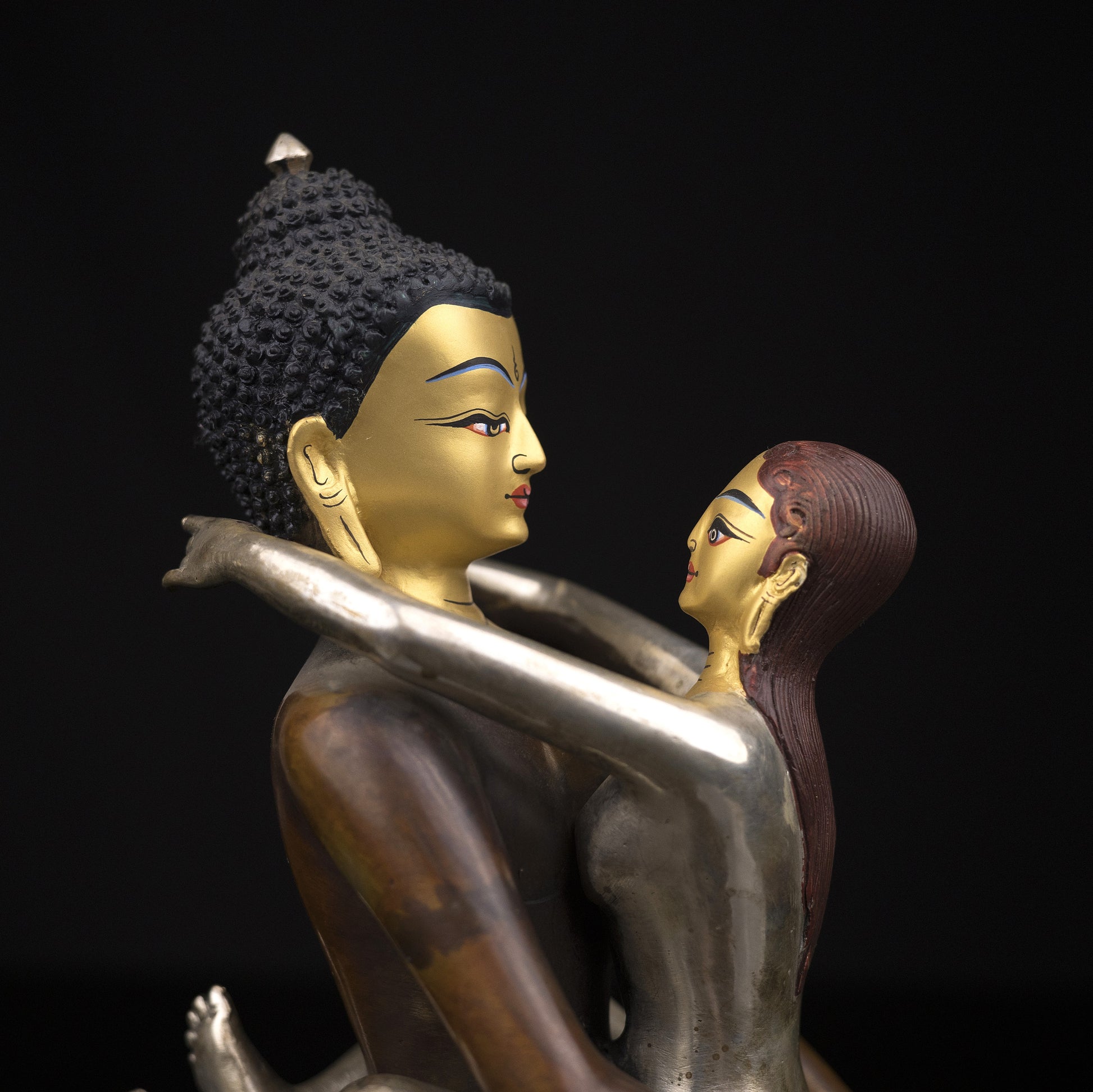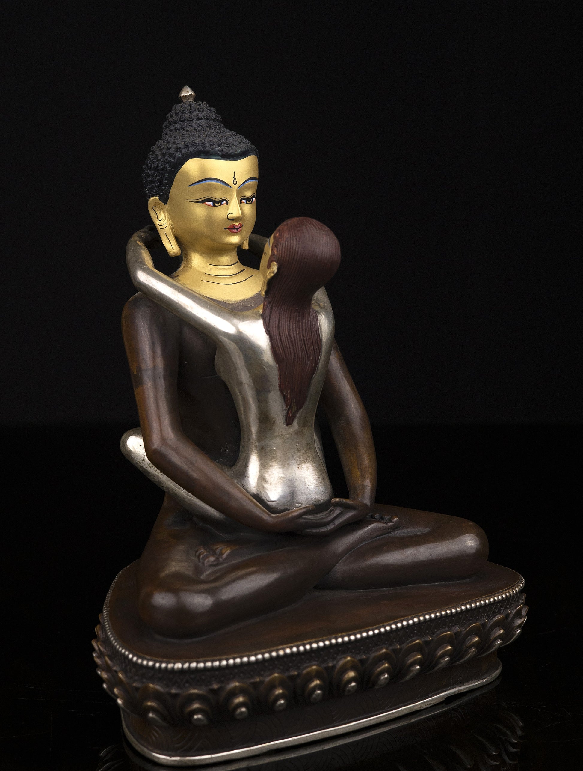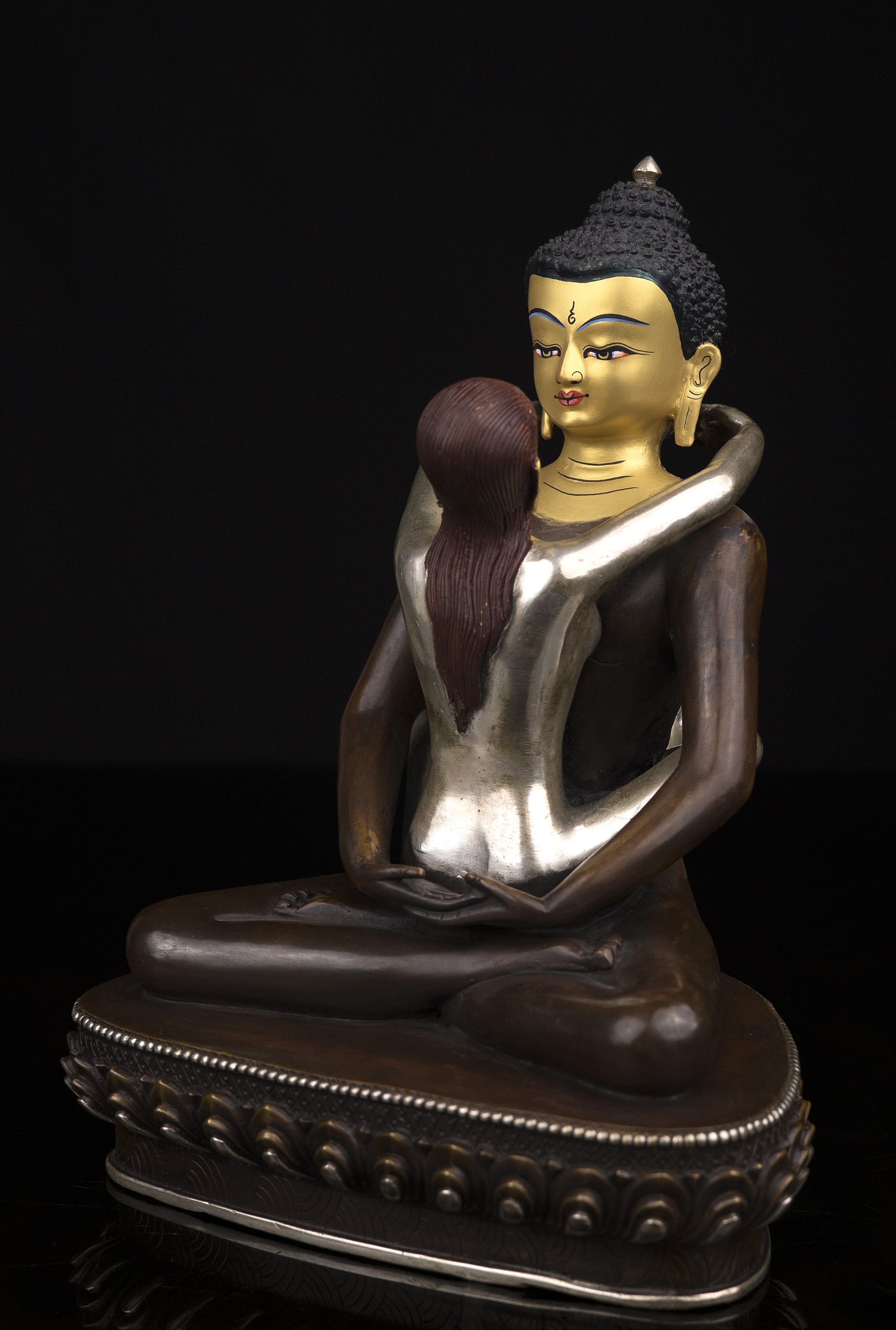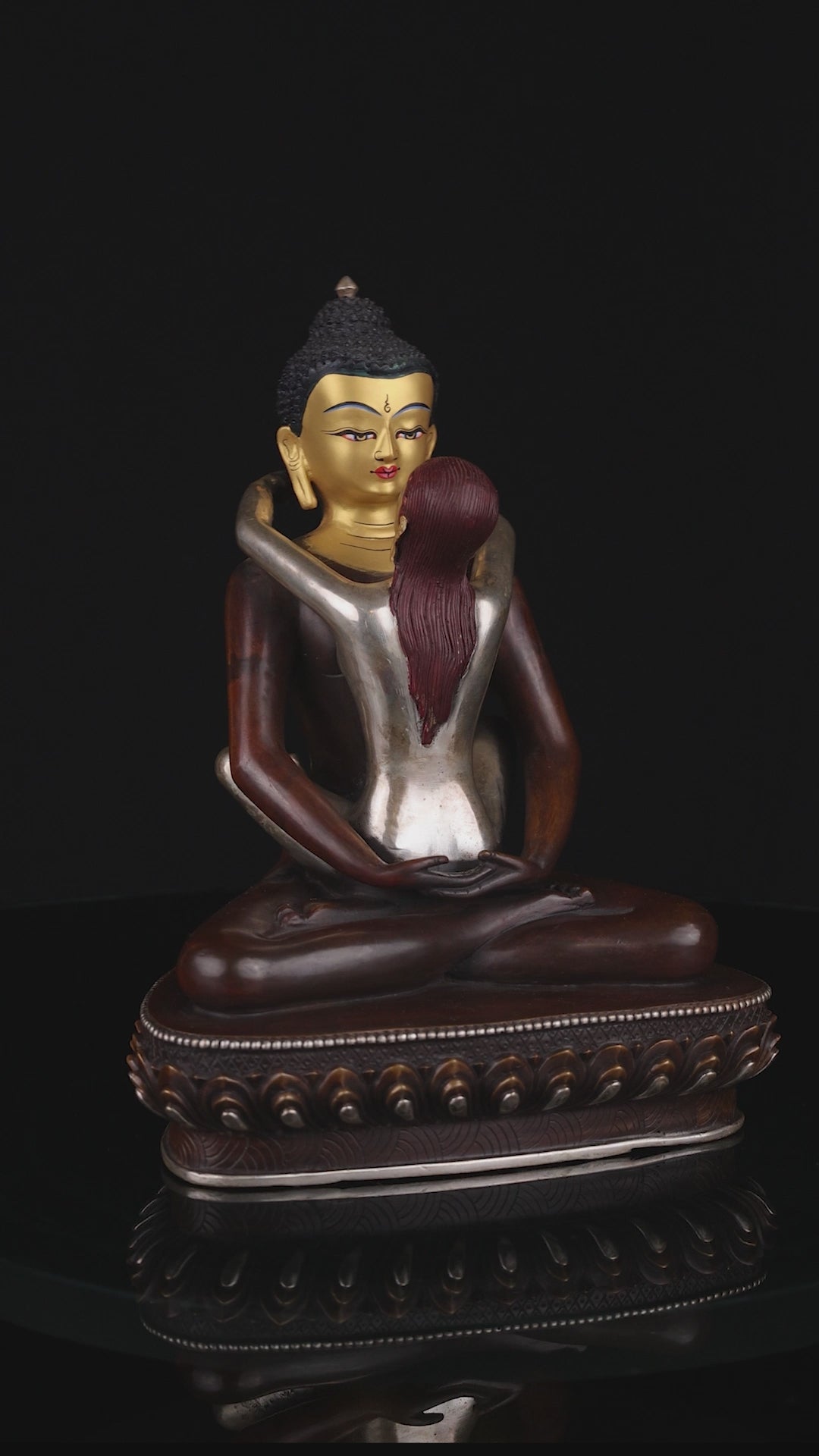 This Beautiful Handmade Hand craved Buddhism Lord Samanta Bhadra Buddha Shakti Pure Copper Oxide Statue made by Artists of Nepal.